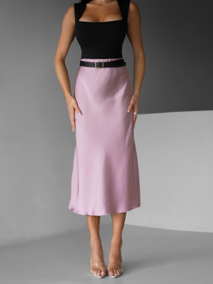 Starorůžová saténová midi sukně LEONTIJ