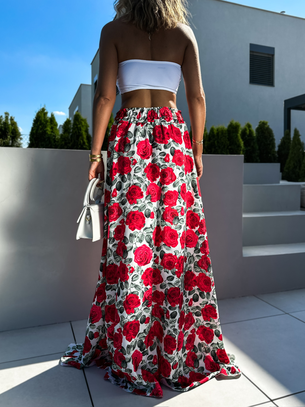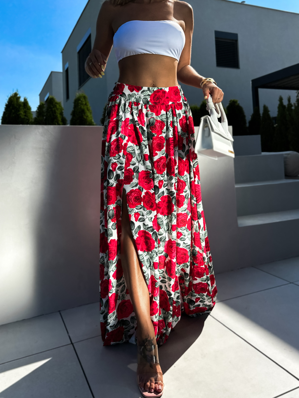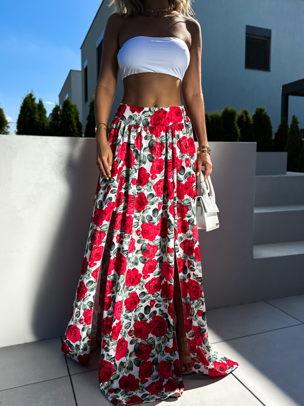 Bílá dlouhá květovaná sukně CORRADO s rozparkem