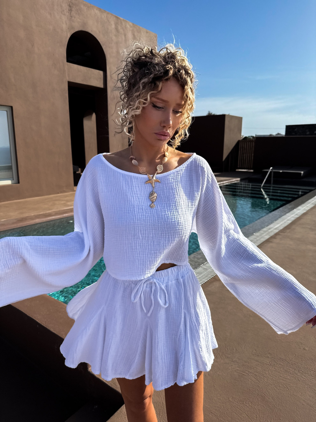 Bílá krátká mušelínová sukně LARLEY s kraťásky