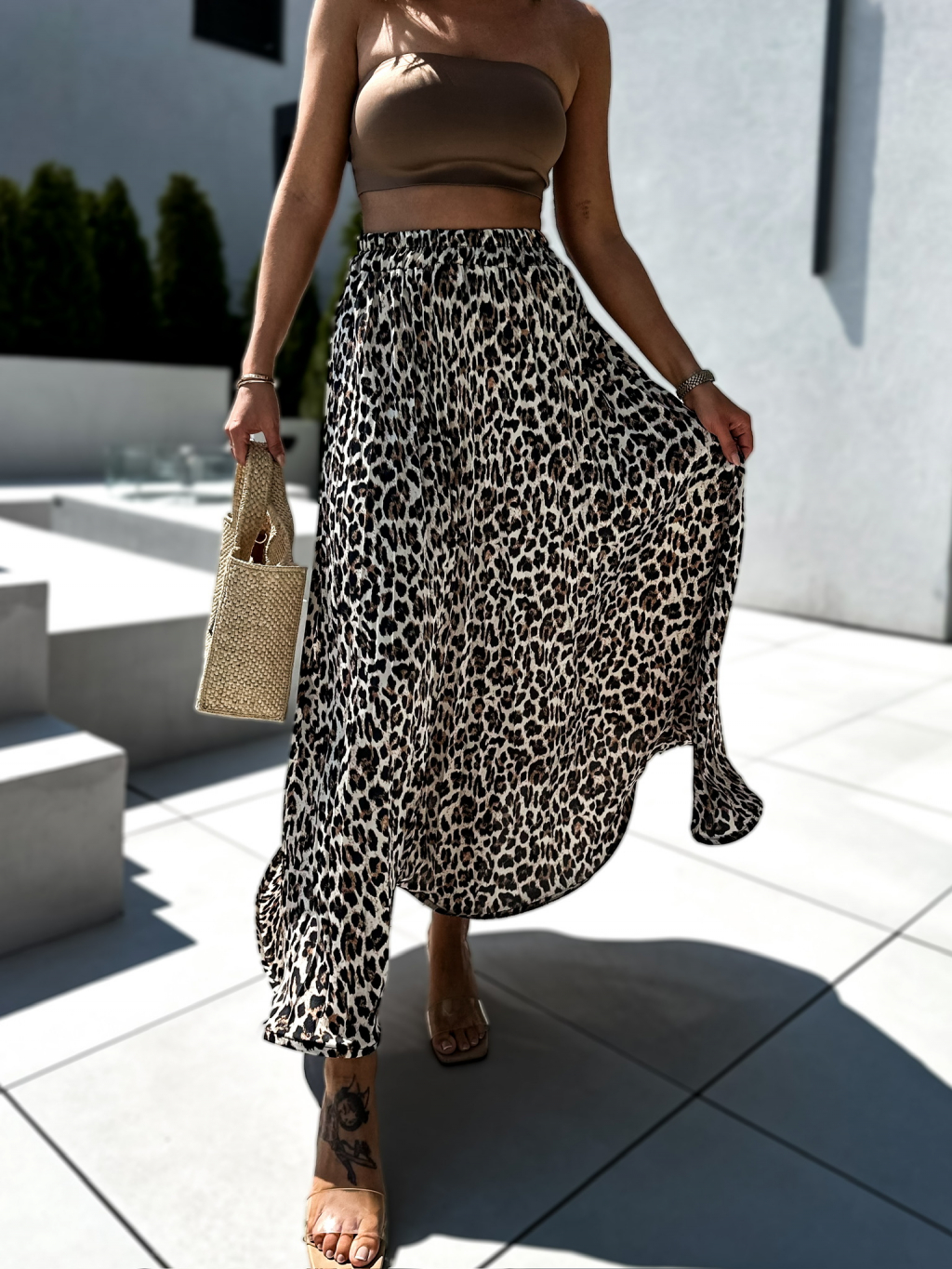 Leopardí saténová dlouhá sukně MERGEN