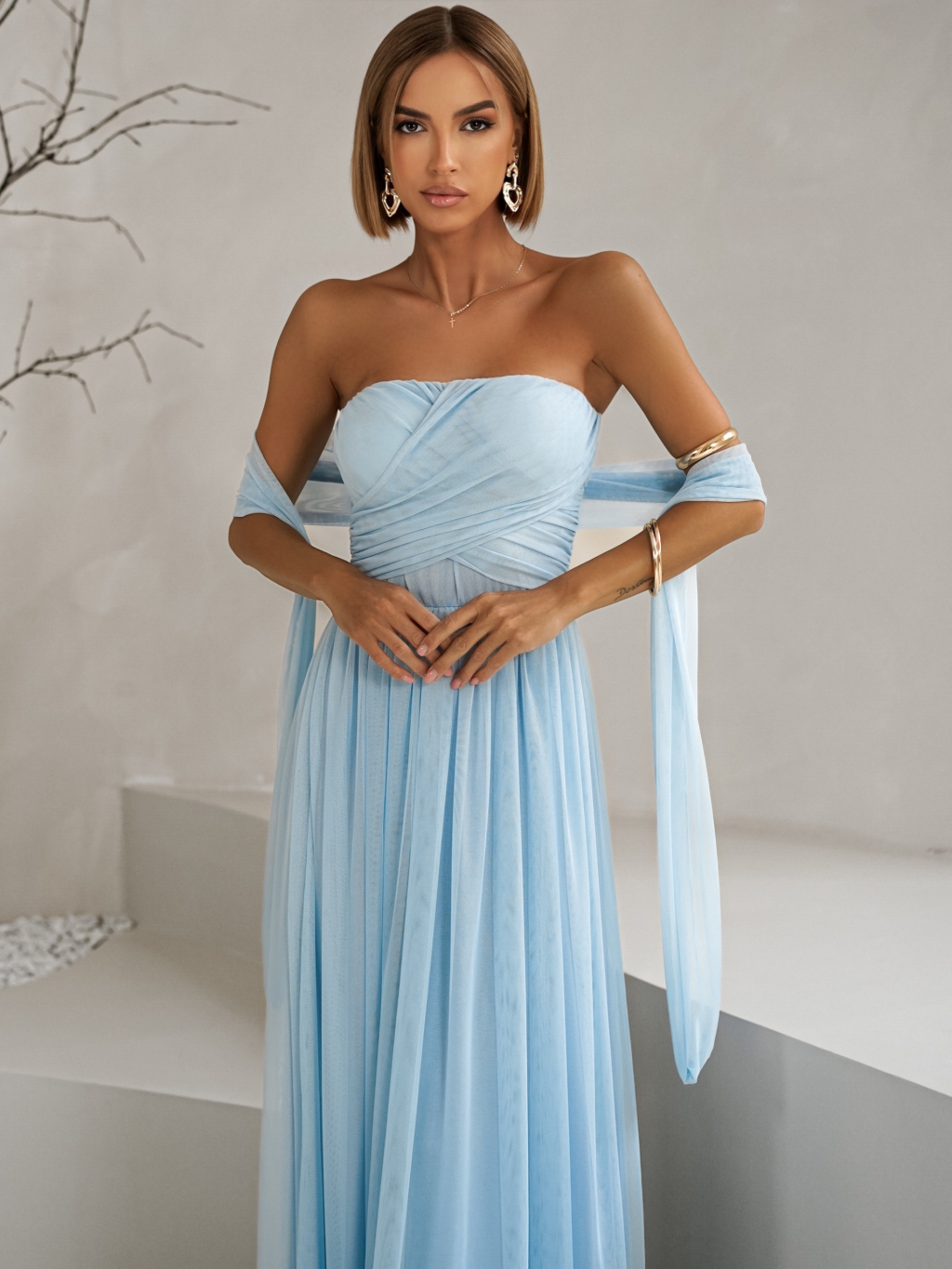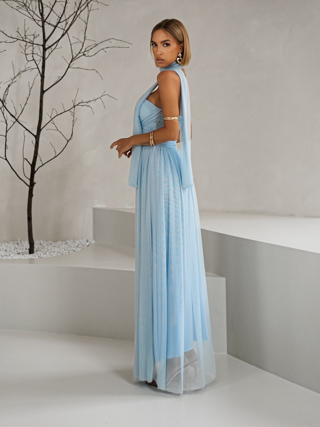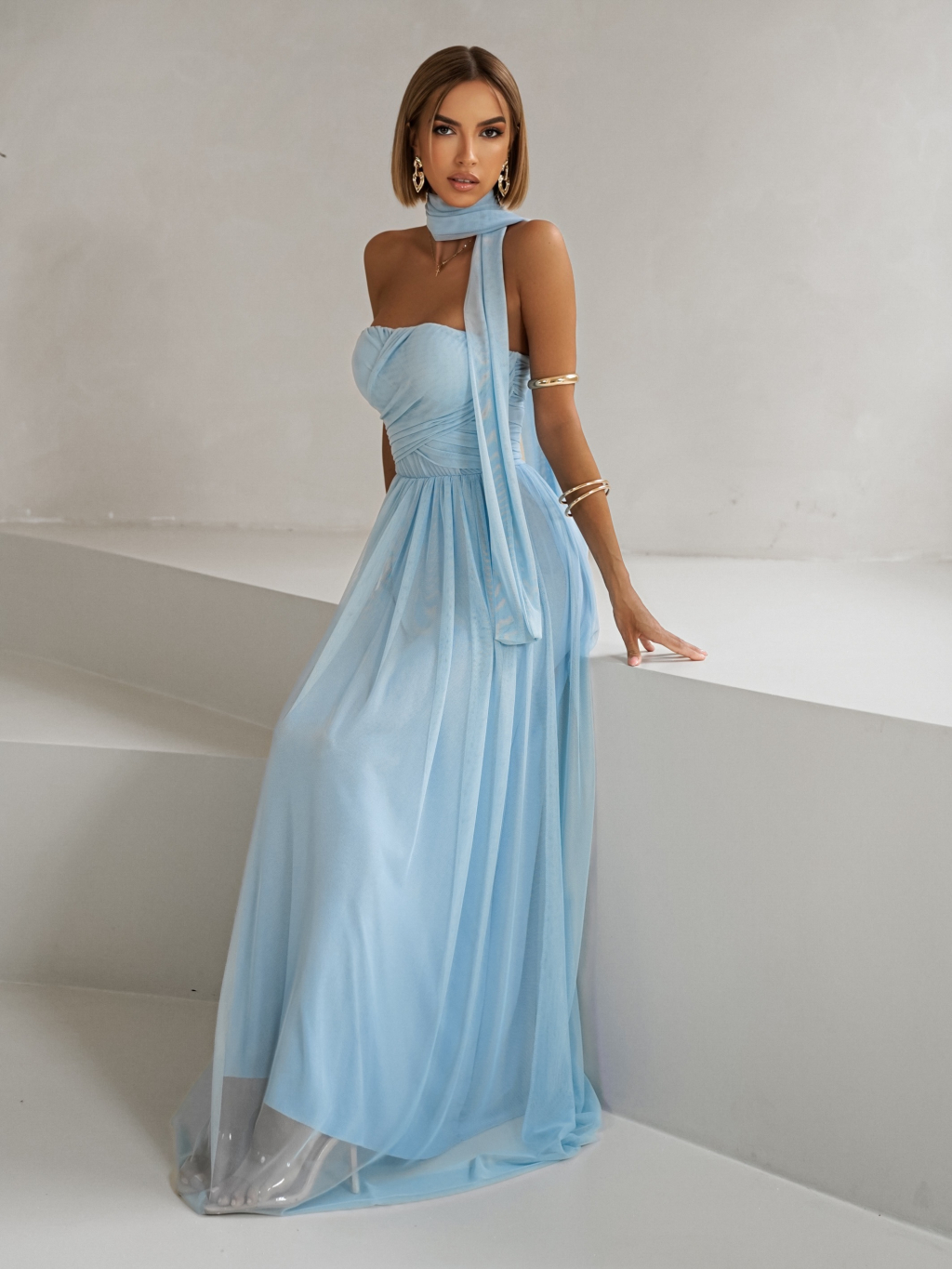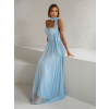 Světle modré tylové dlouhé šaty BOLEMIR s vlečkou