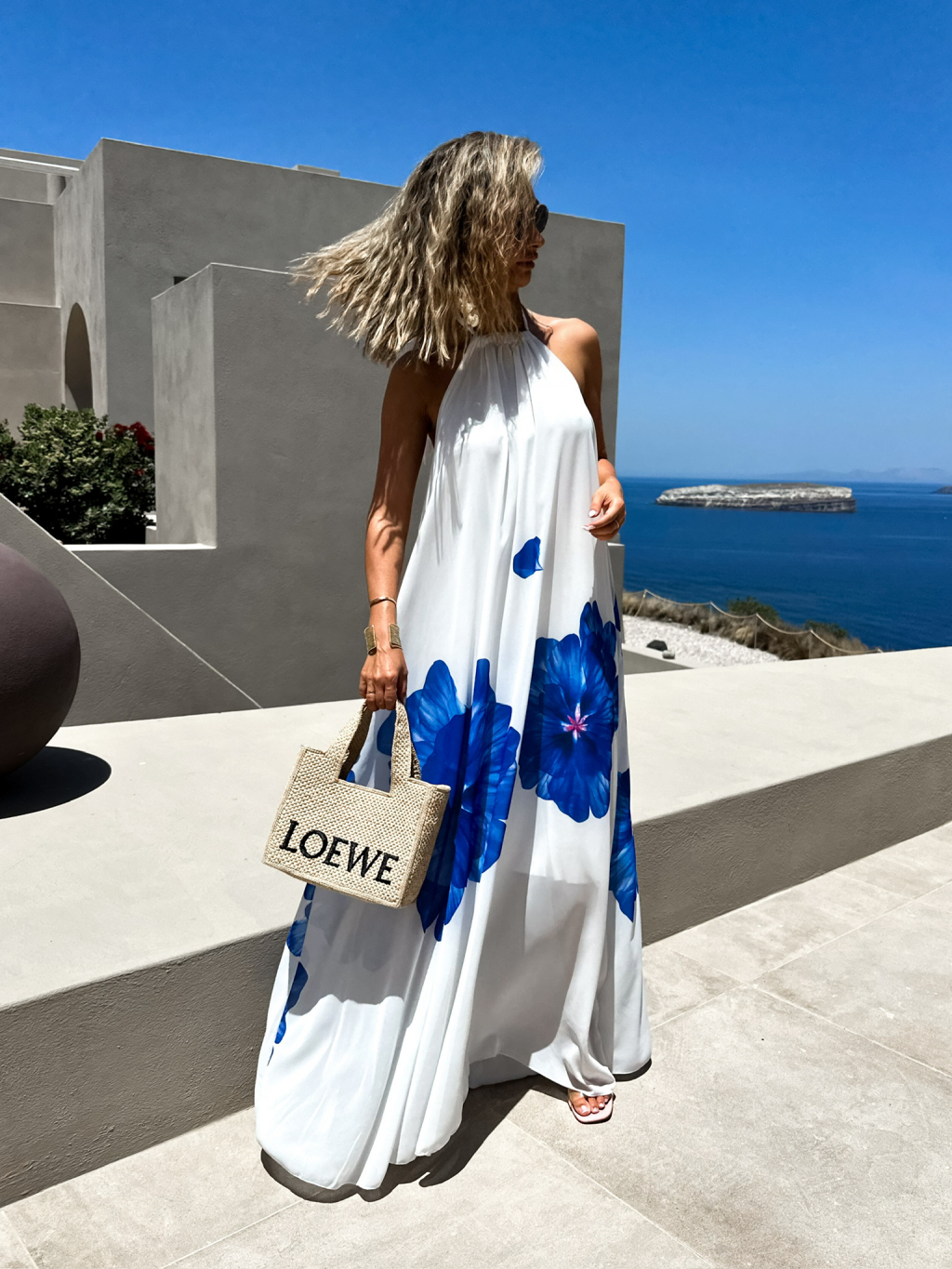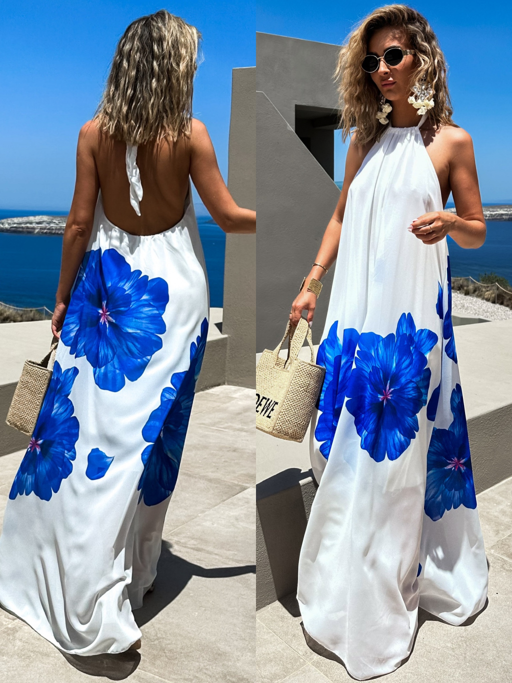 Bílomodré volné maxi dlouhé šaty GORAZ