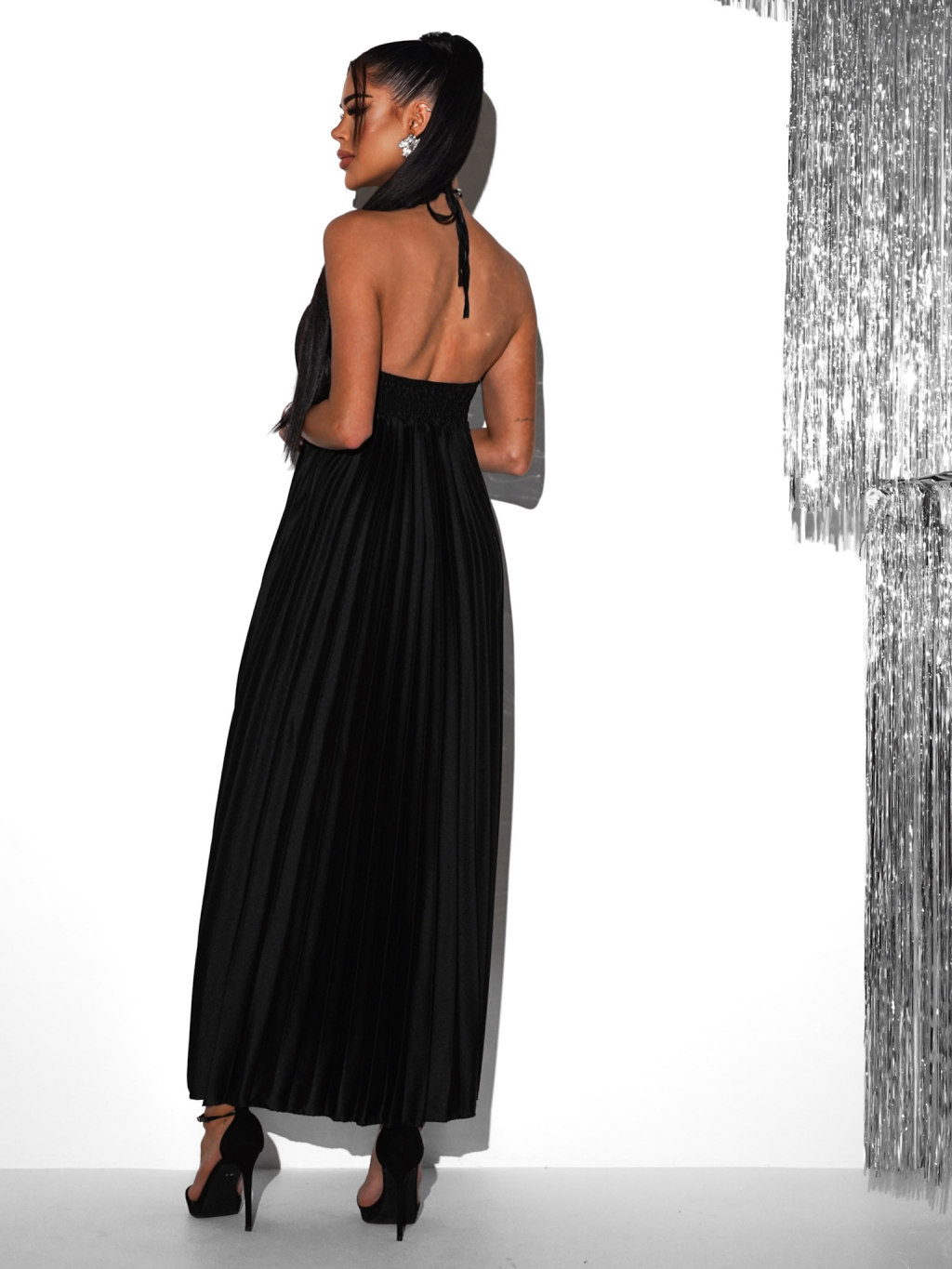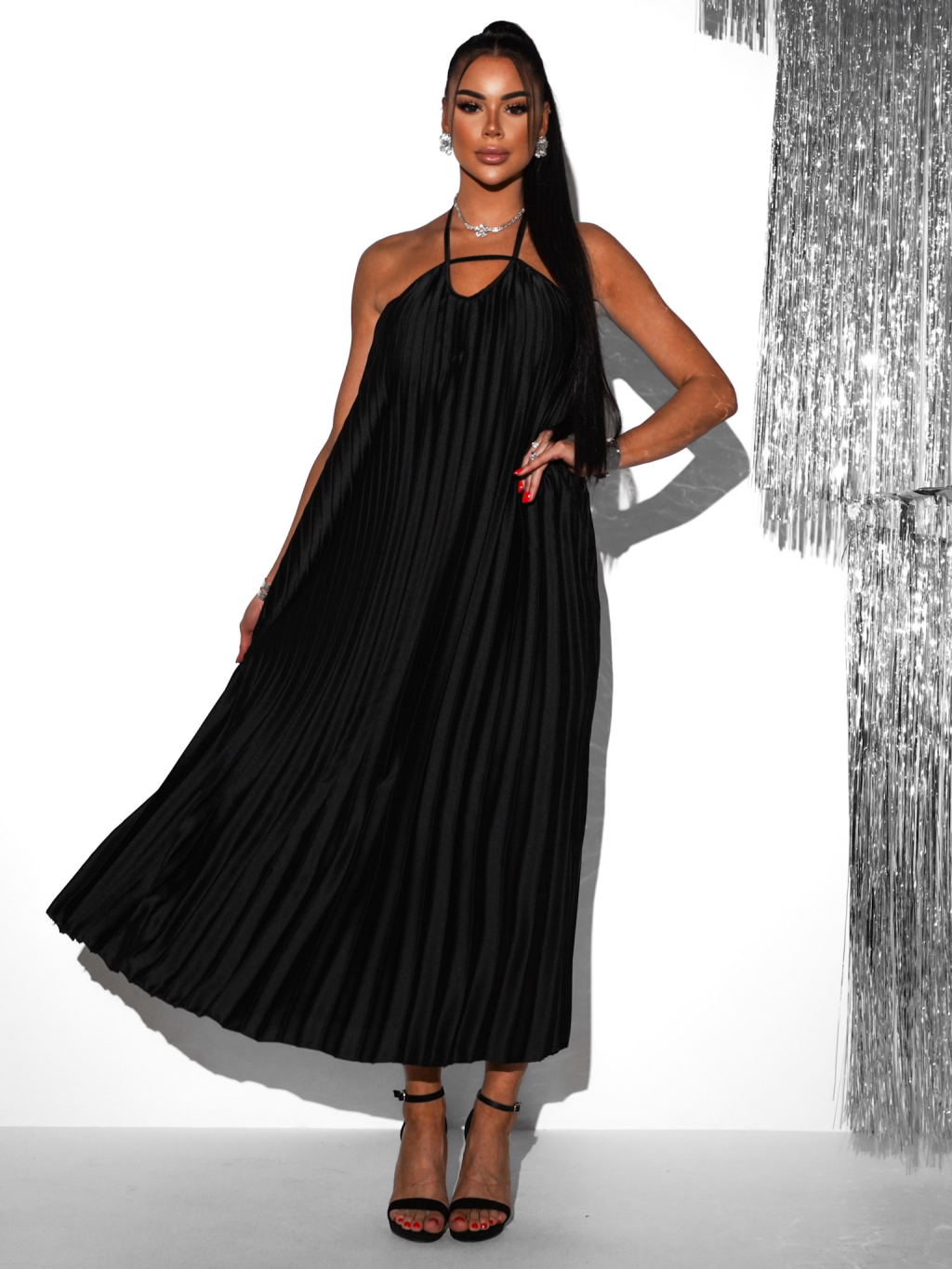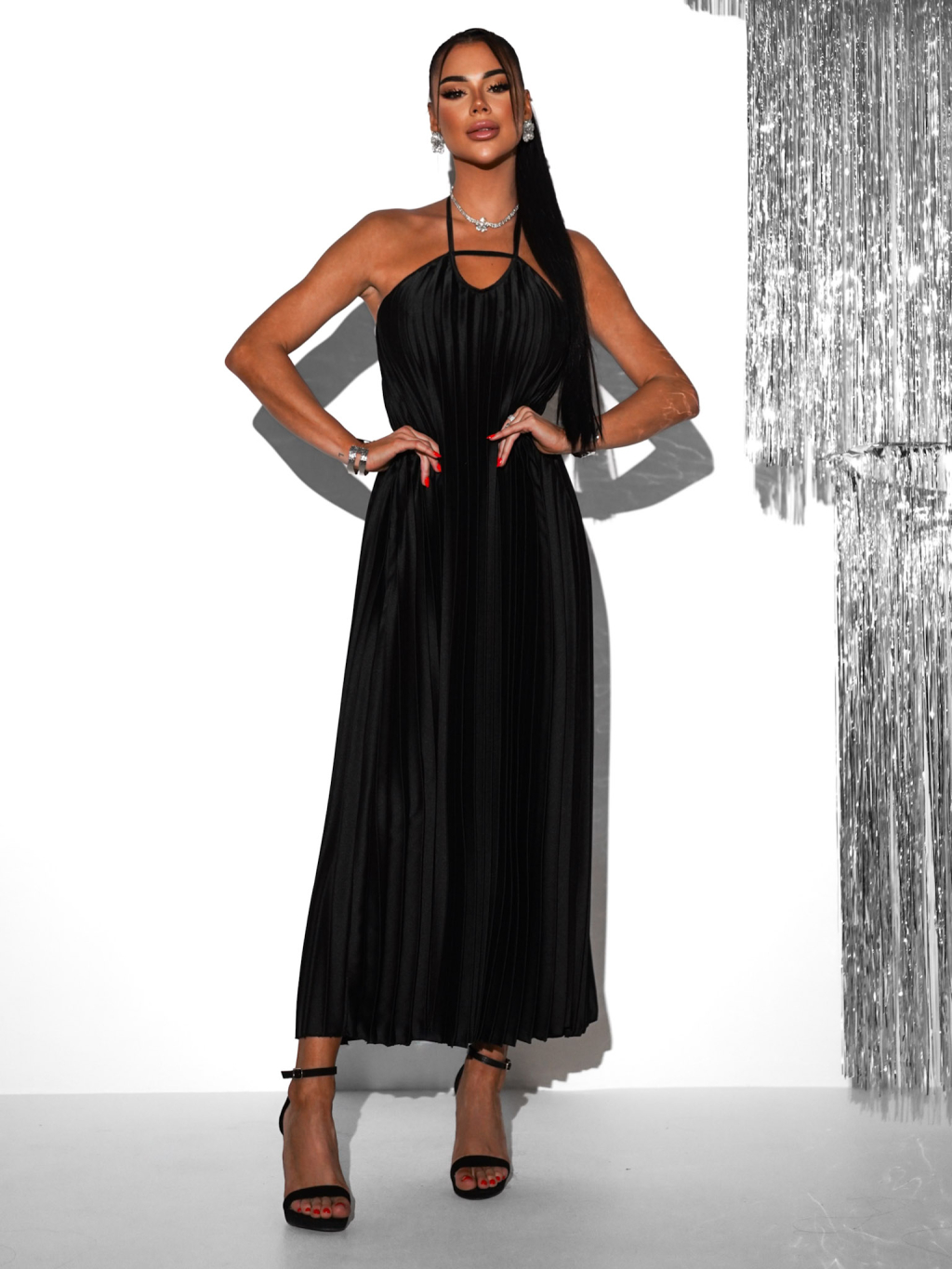 Černé plisované dlouhé elegantní šaty AUSTERE