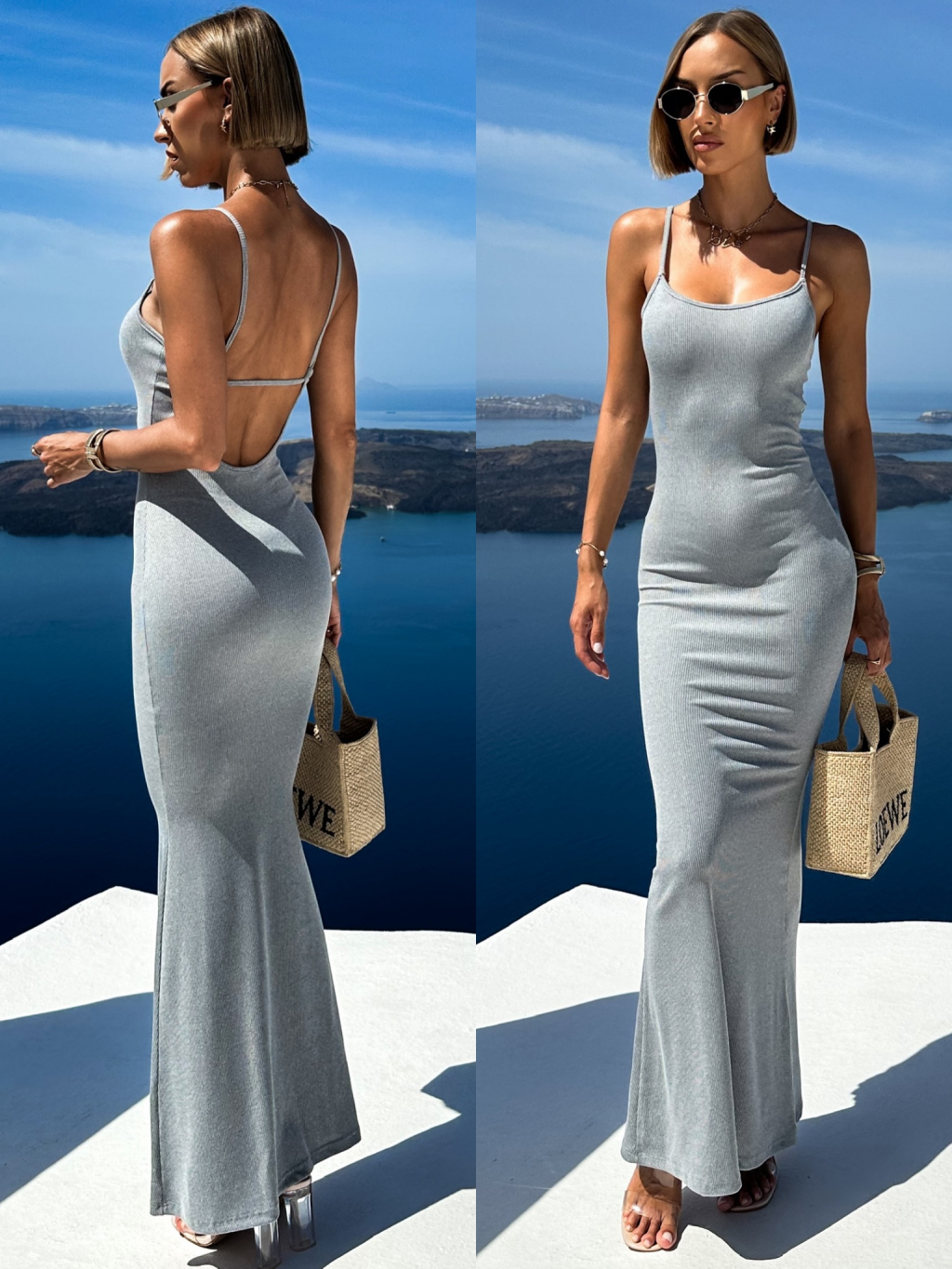 Šedé dlouhé basic šaty ERDASET na ramínka
