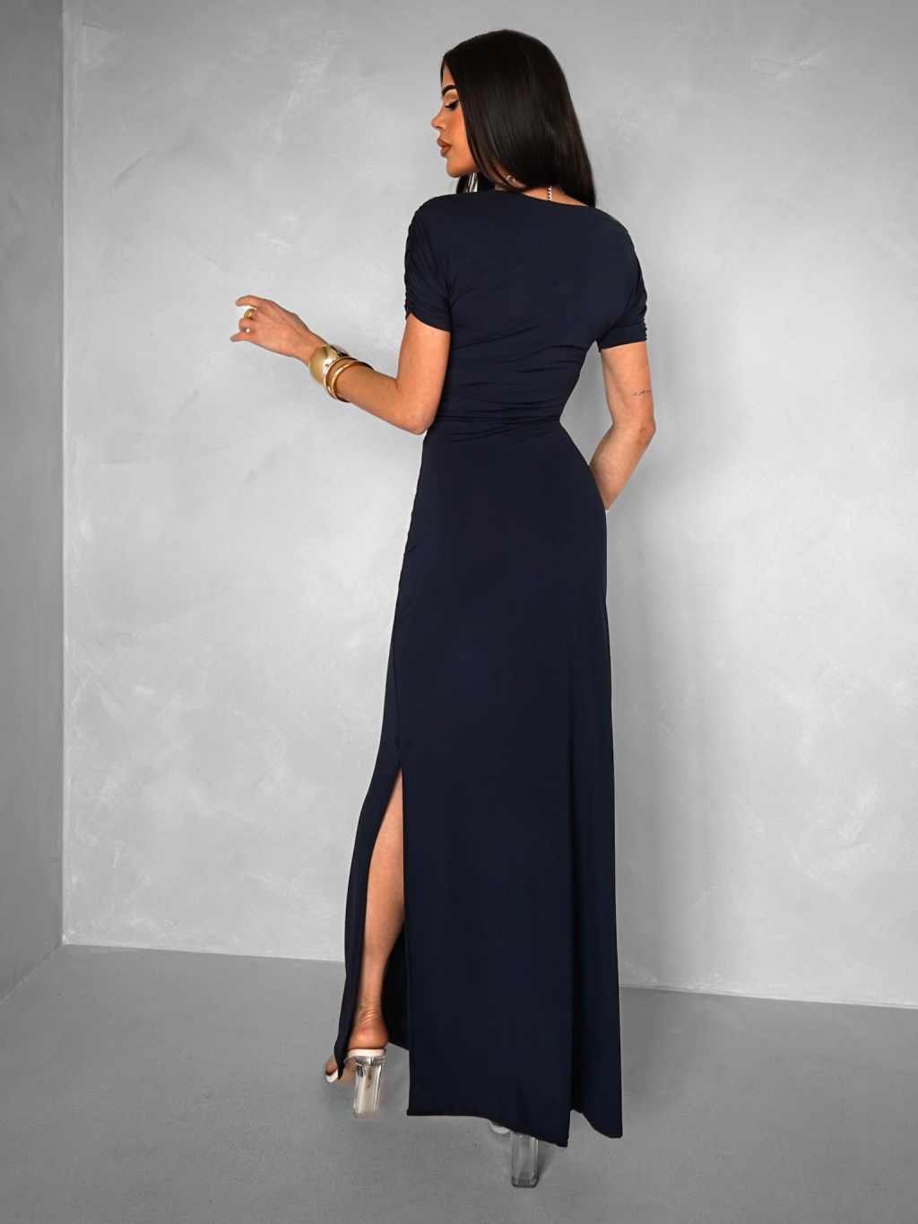 Tmavě modré dlouhé šaty TIELAS s řasením