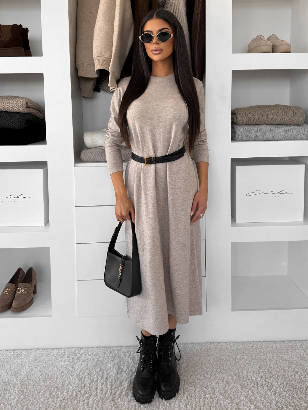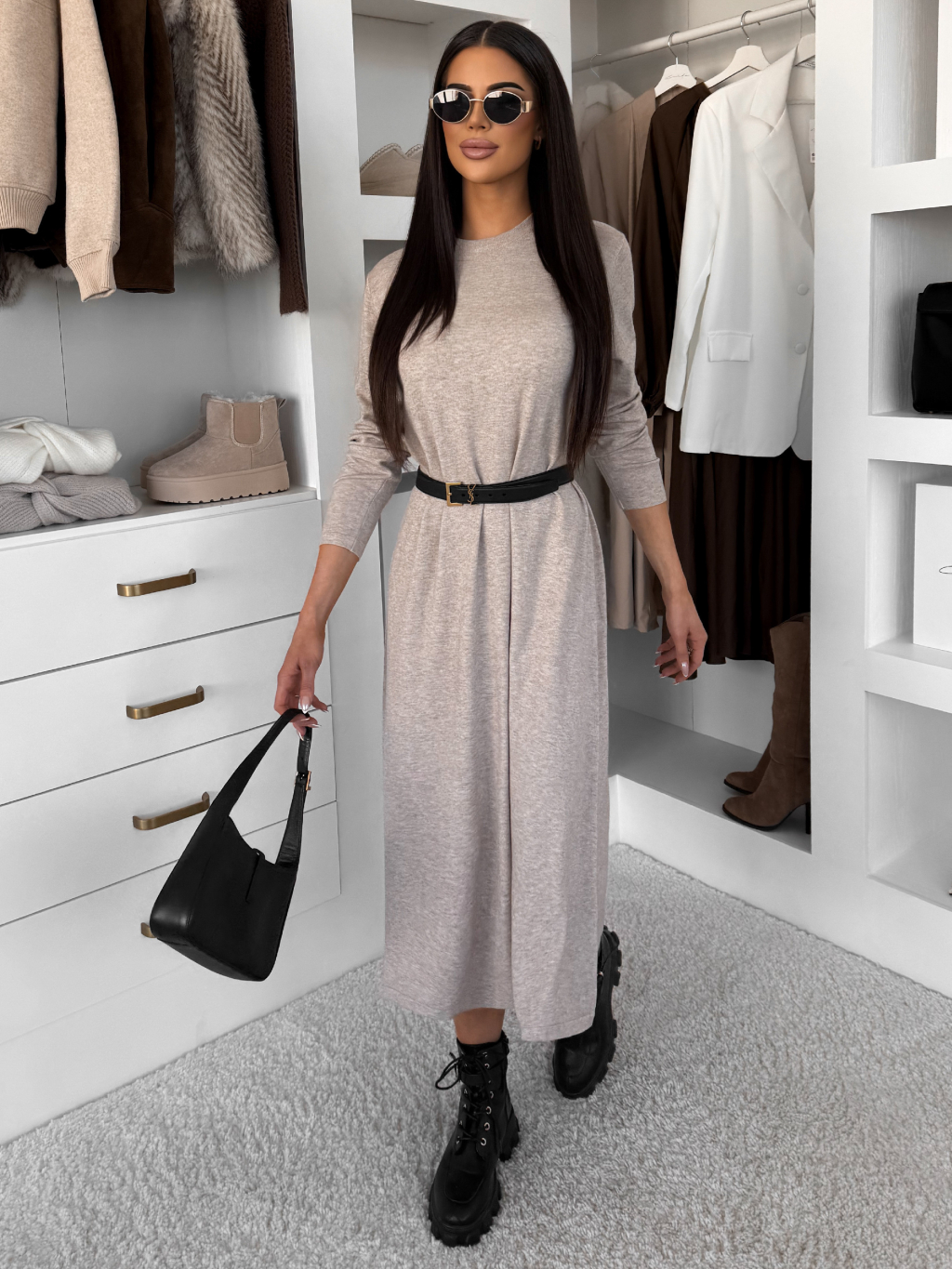 Béžové stylové maxi dlouhé mikinové šaty RAVONI