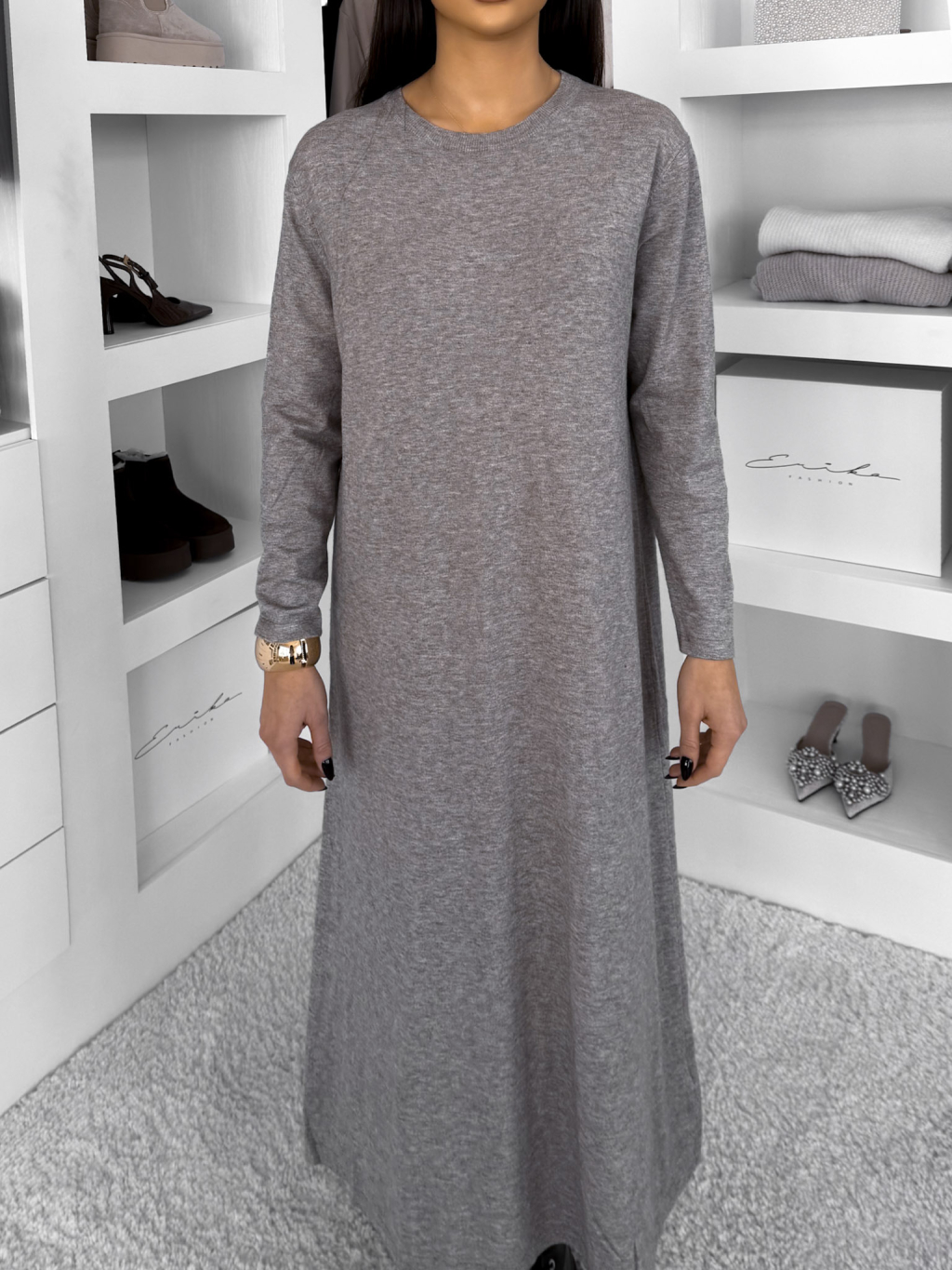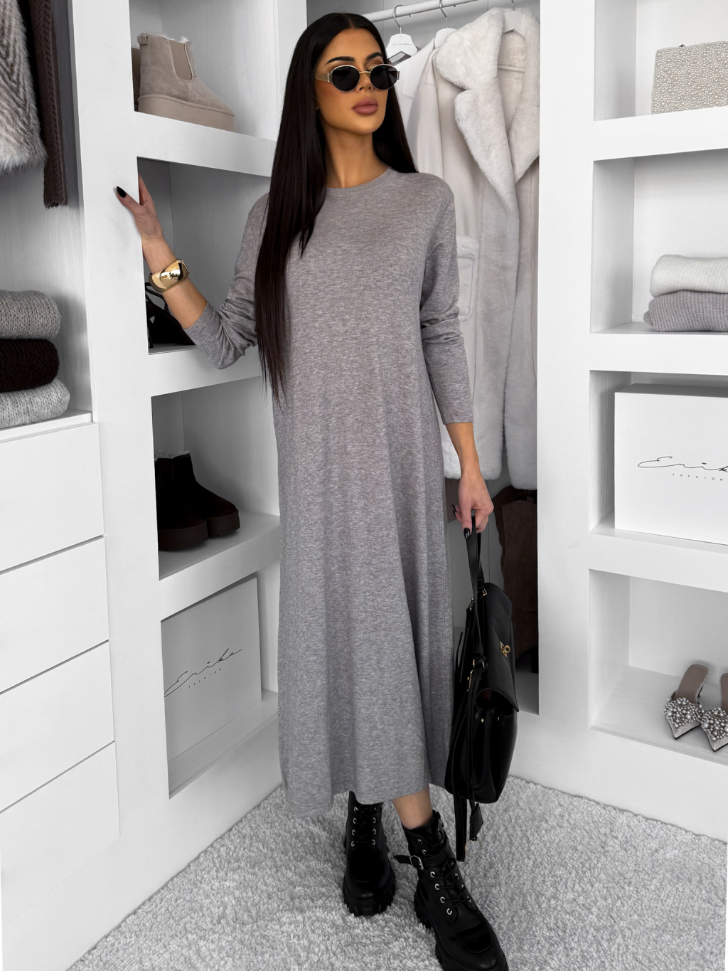 Šedé maxi dlouhé šaty RAVONI