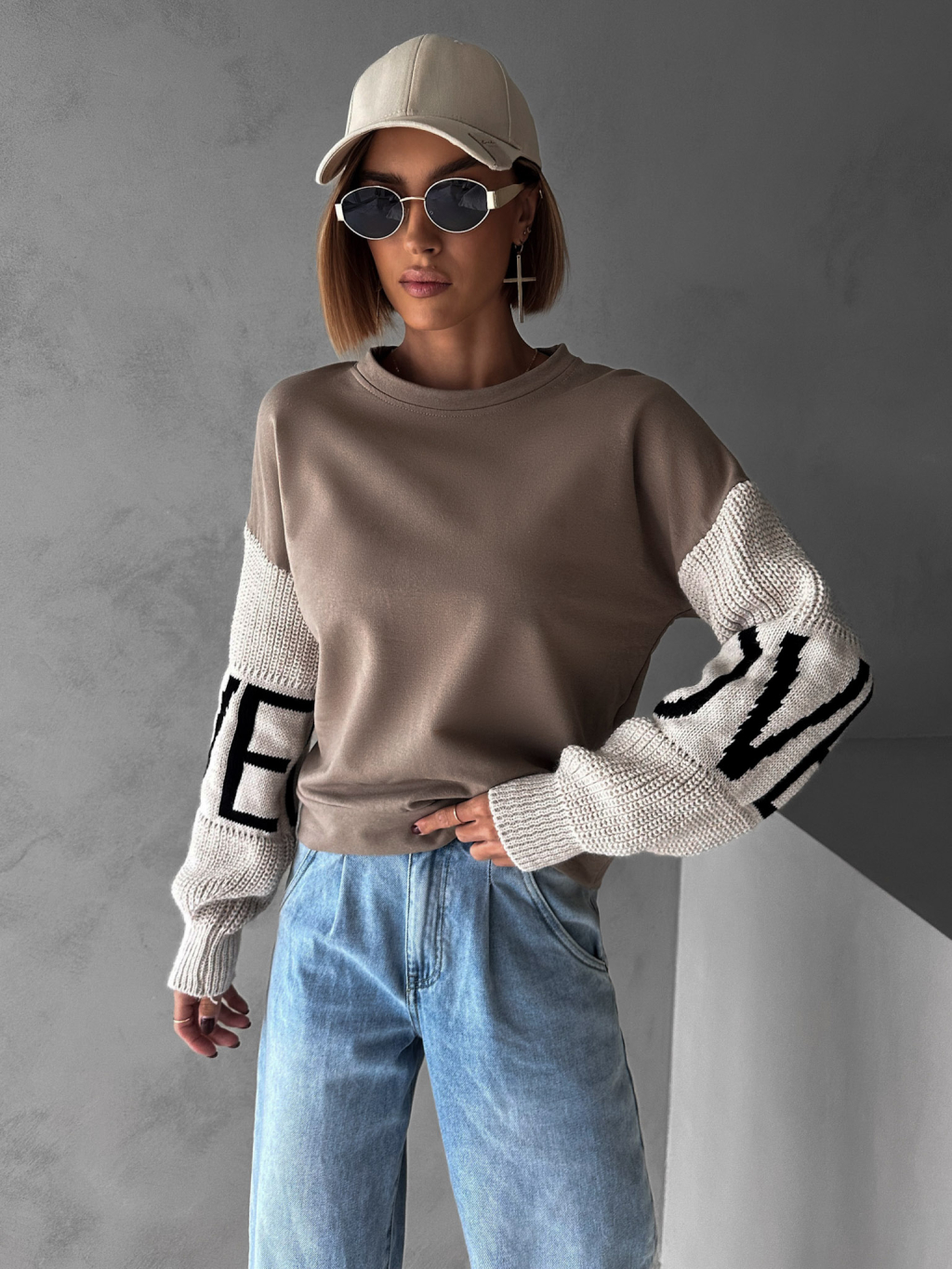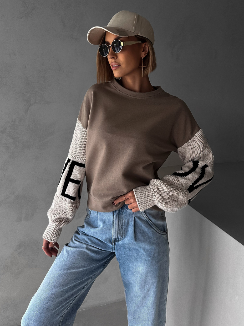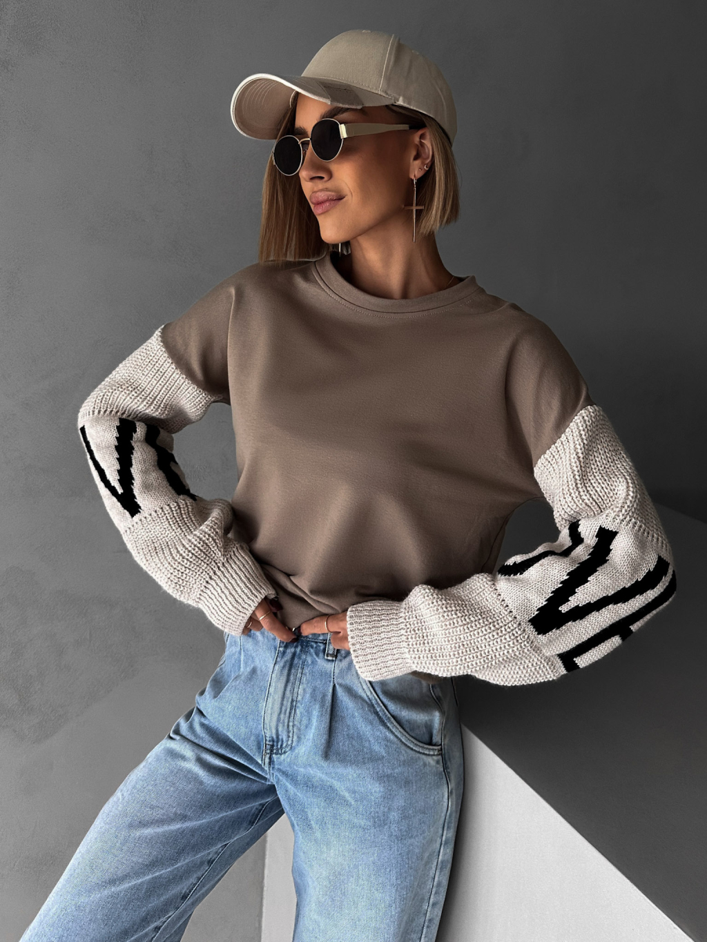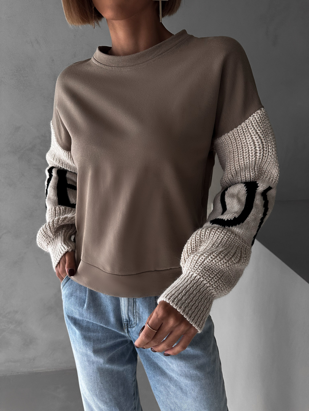 Hnědá mikina NIKLAUS se svetrovými rukávy