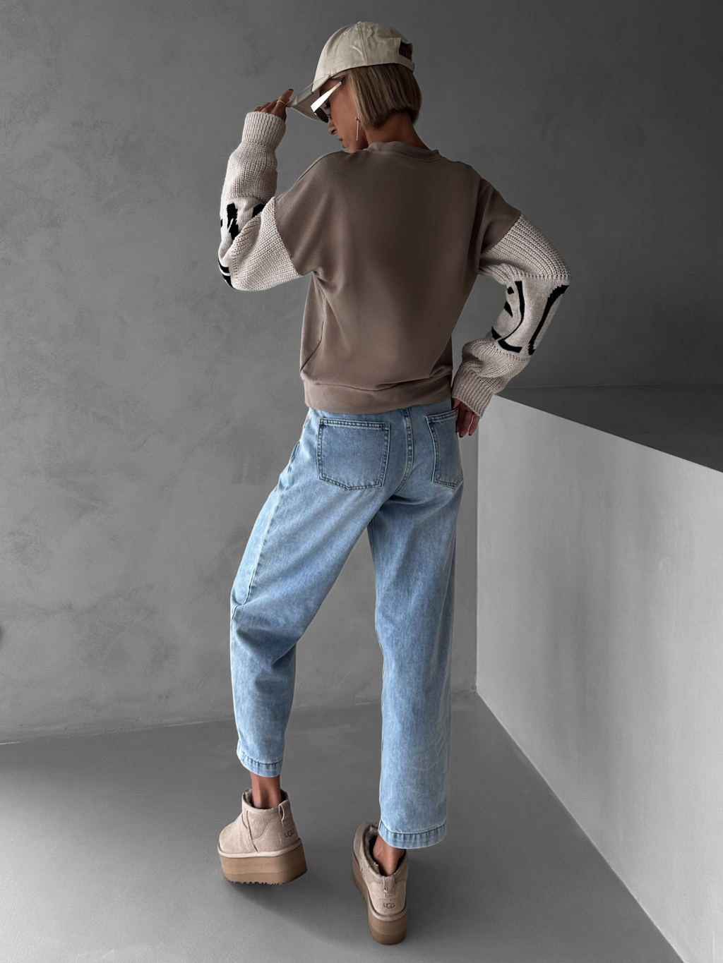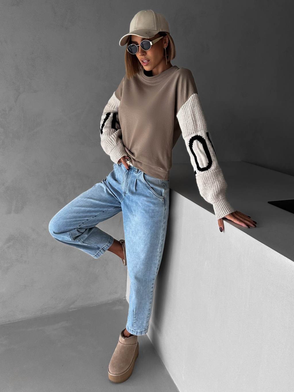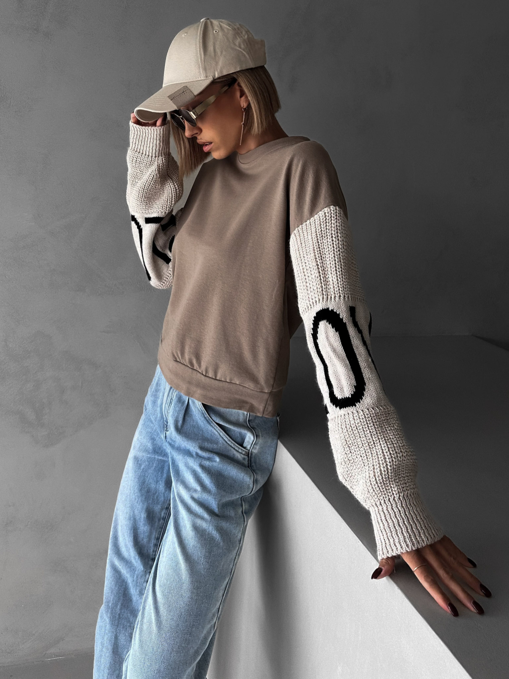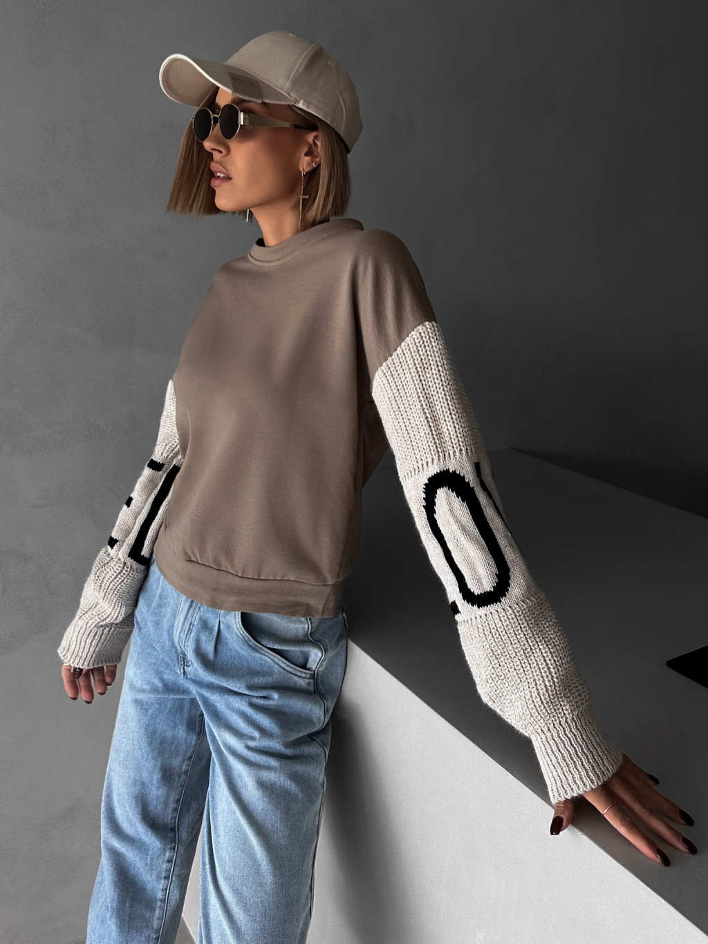 Hnědá mikina NIKLAUS se svetrovými rukávy