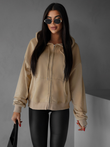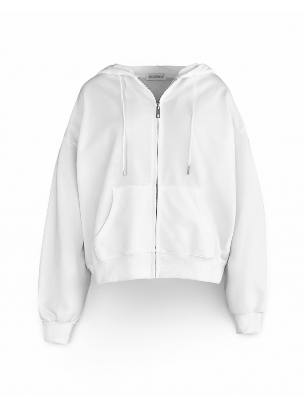 Bílá basic bavlněná mikina s kapucí OUTUBRO na zip