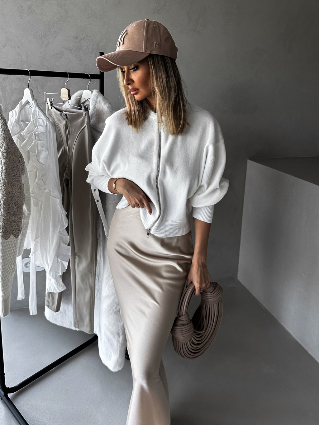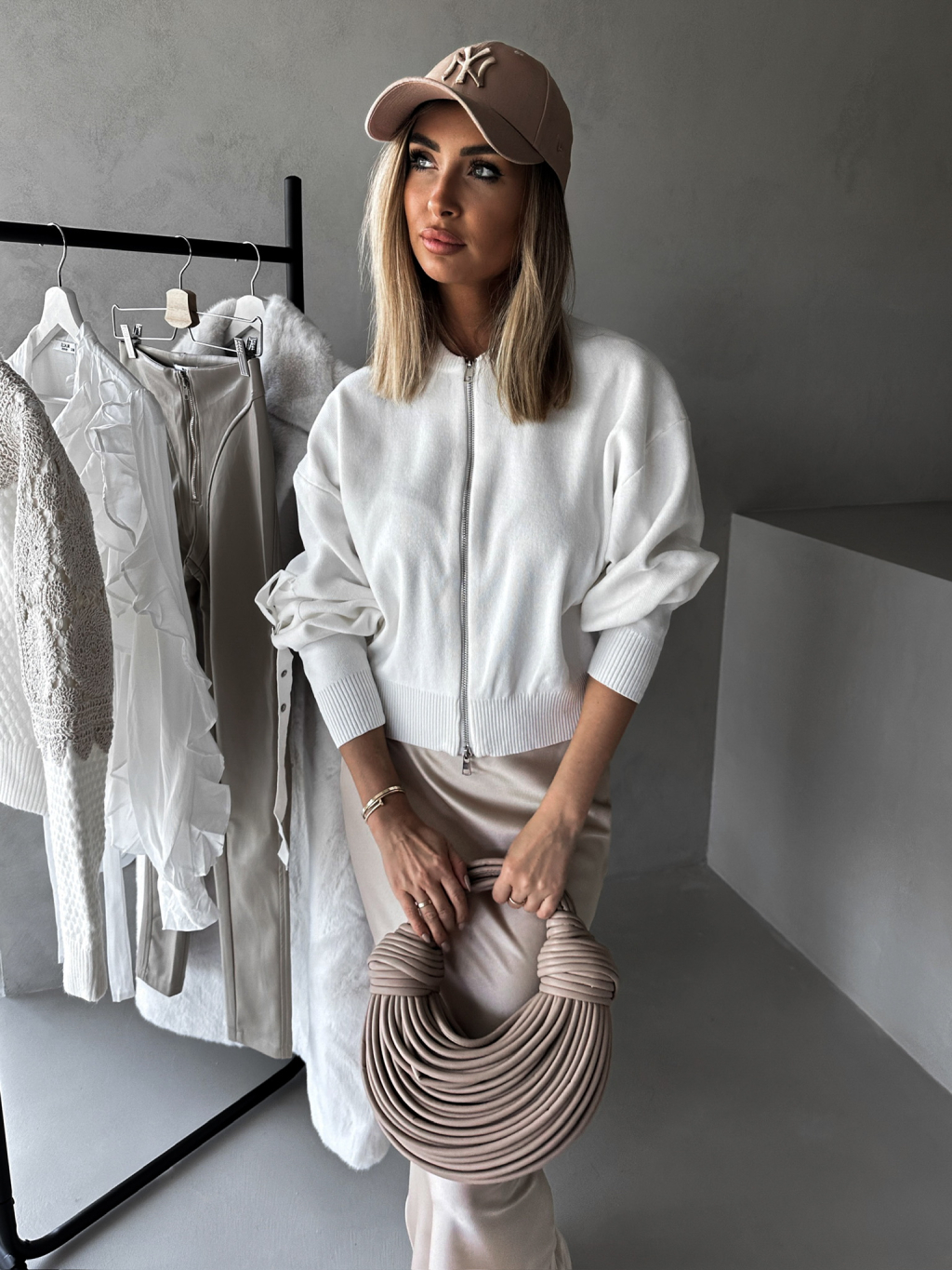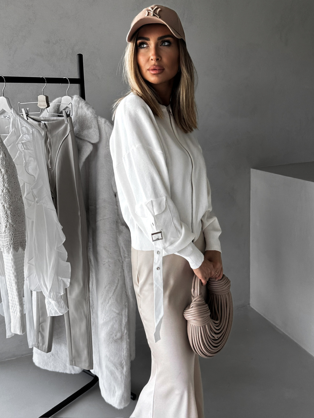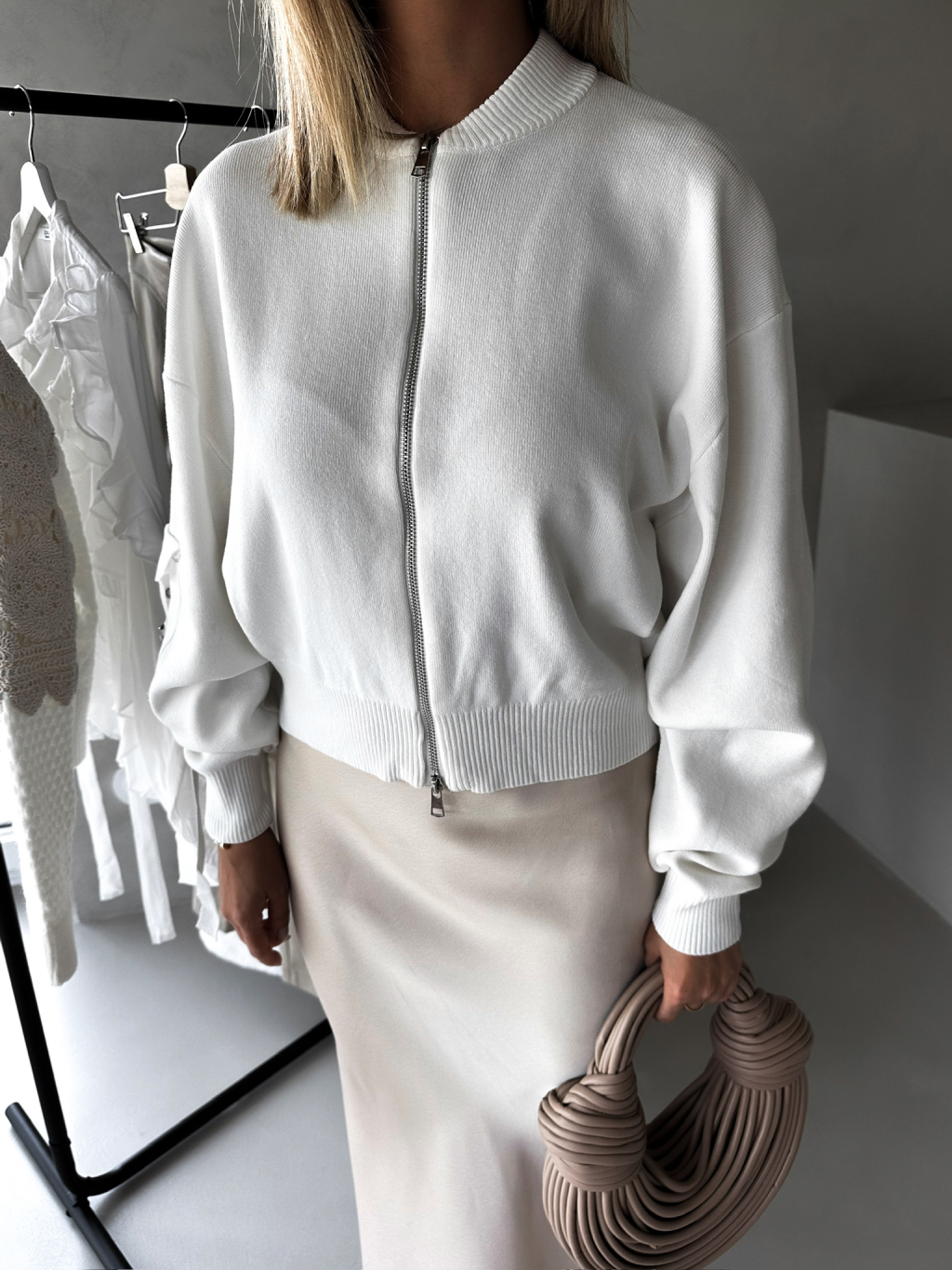 Bílý svetřík ELLEMAE na zip