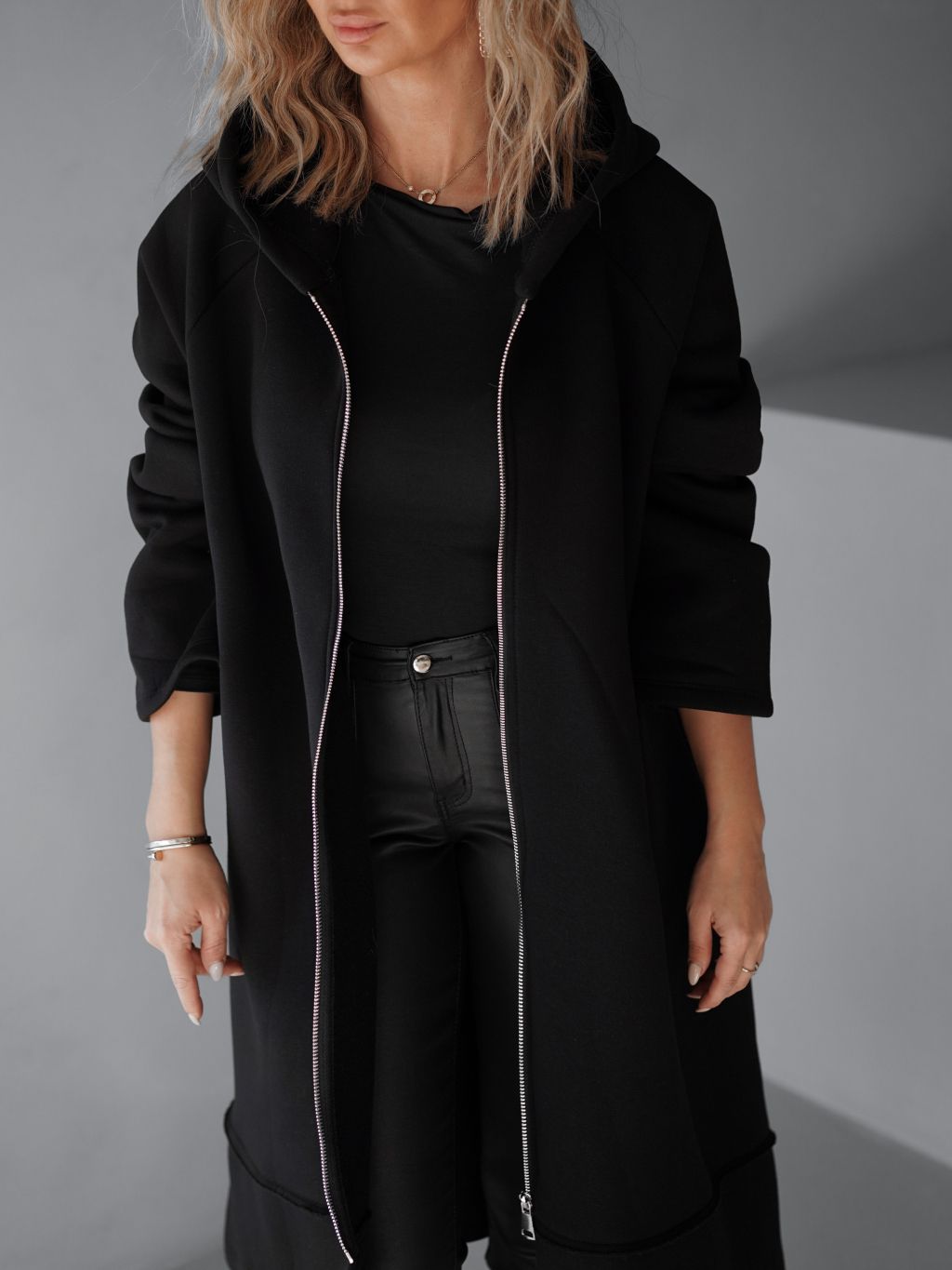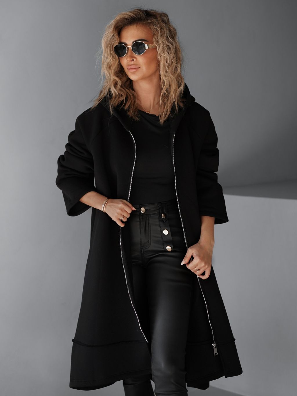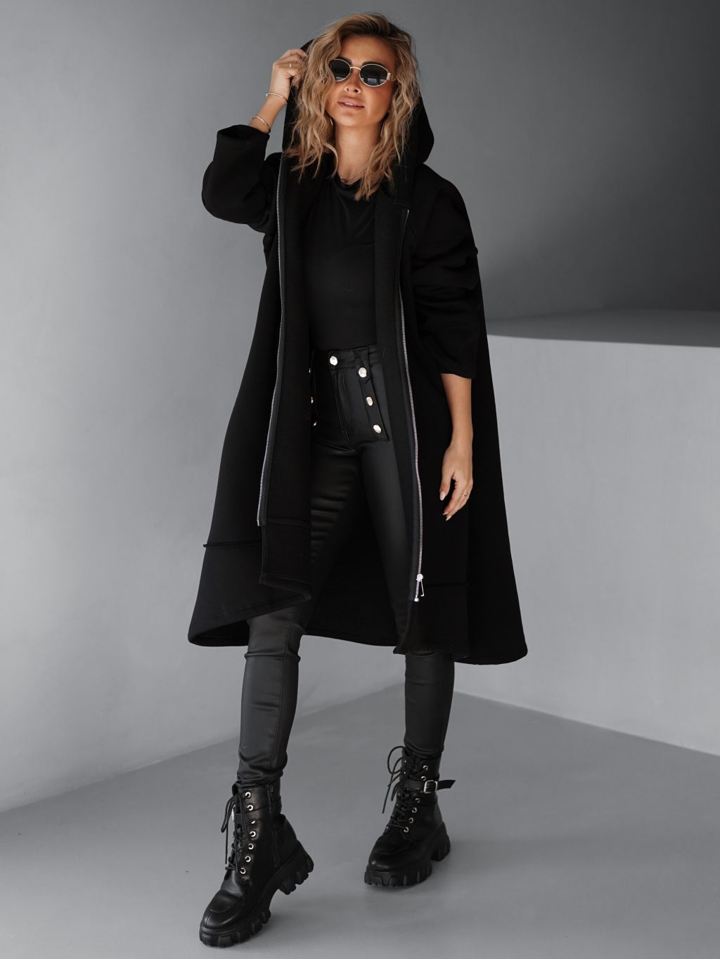 Černá maxi oversize mikina PLUSYT na zip