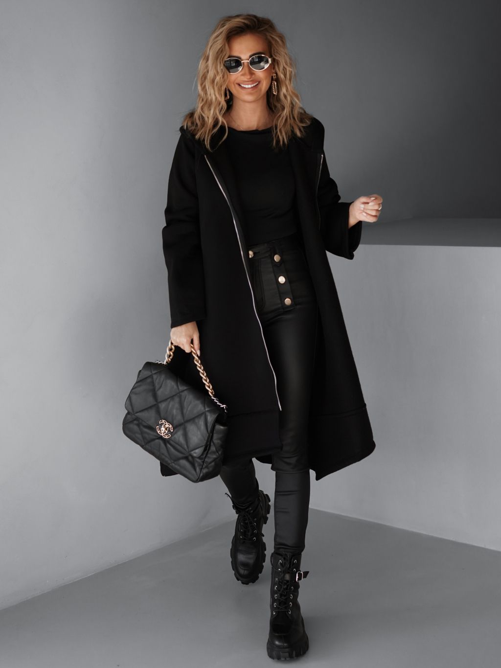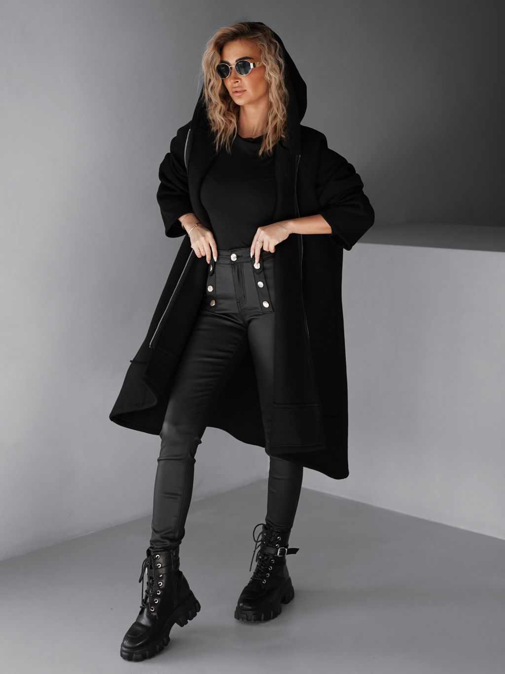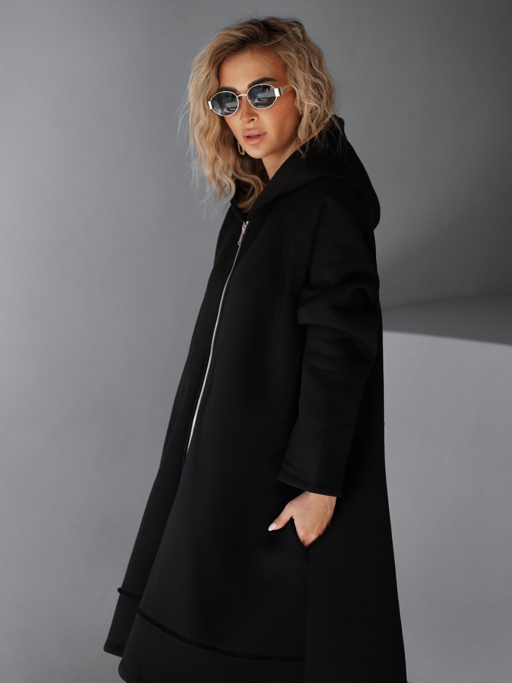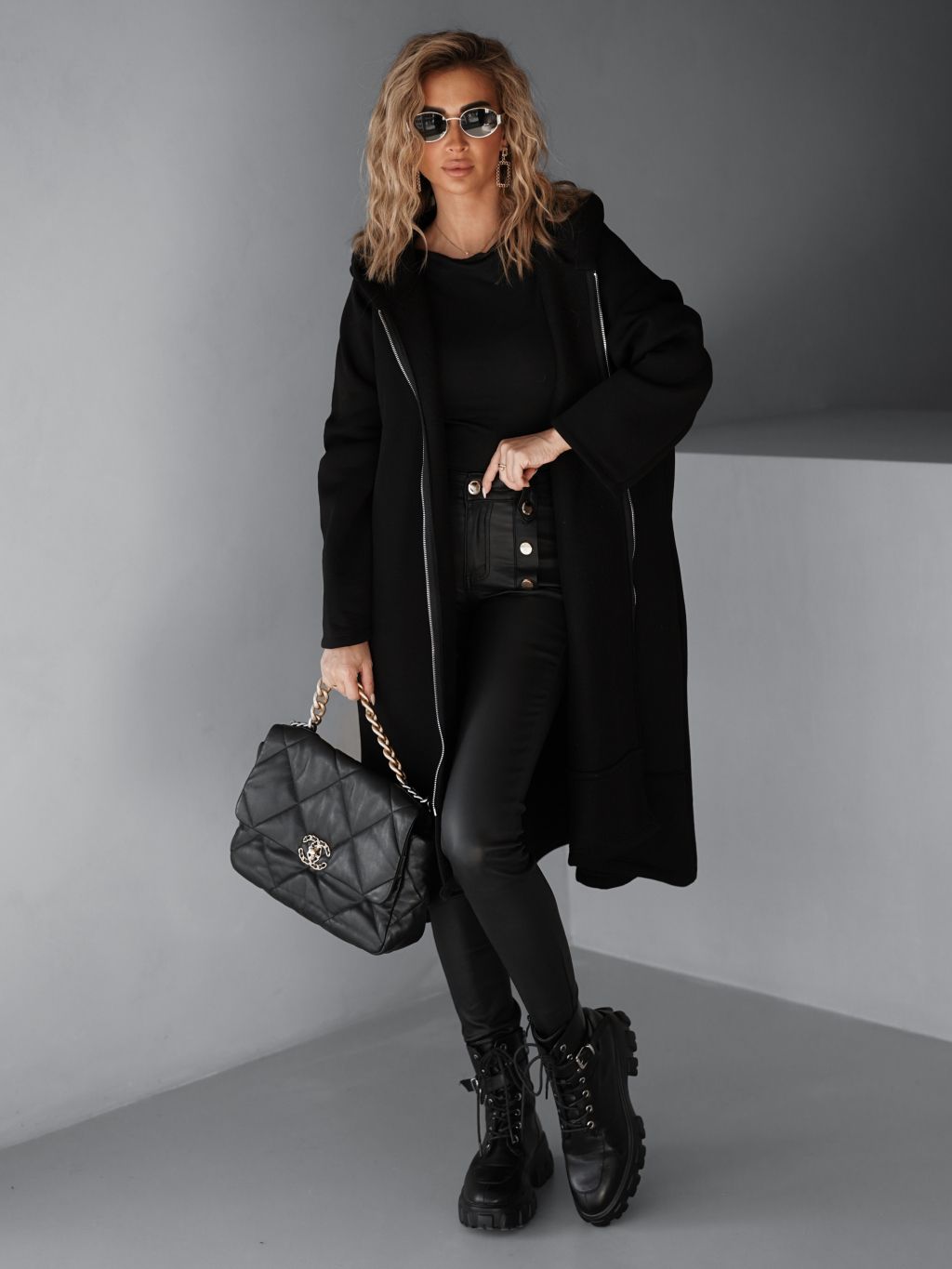 Černá maxi oversize mikina PLUSYT na zip