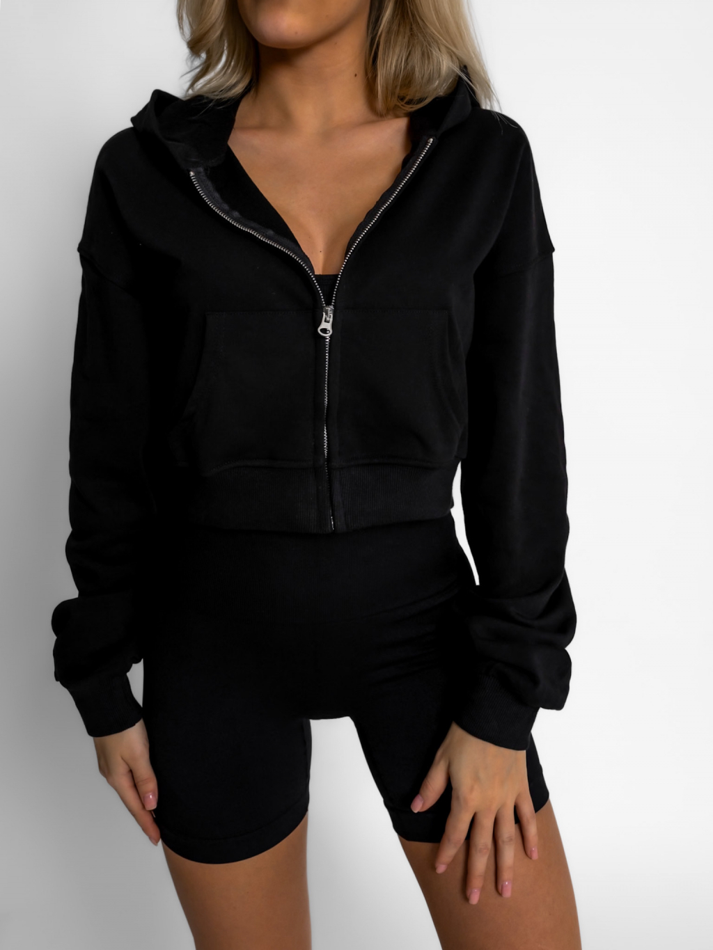 Černá bavlněná basic krátká mikina JANEIRO na zip
