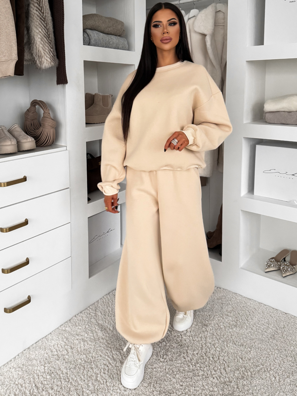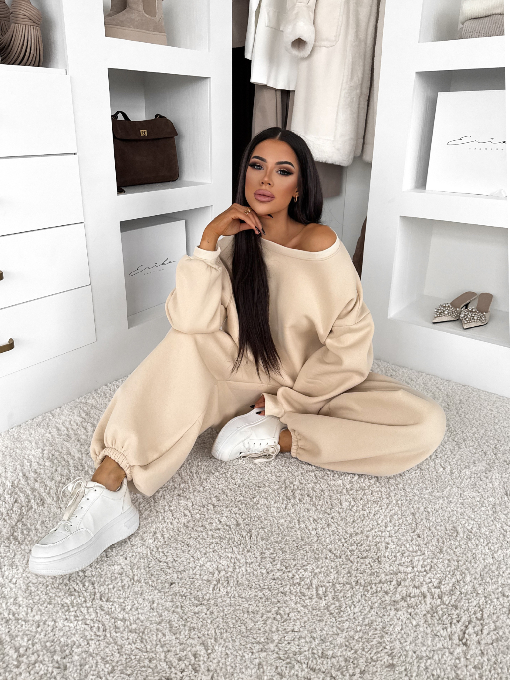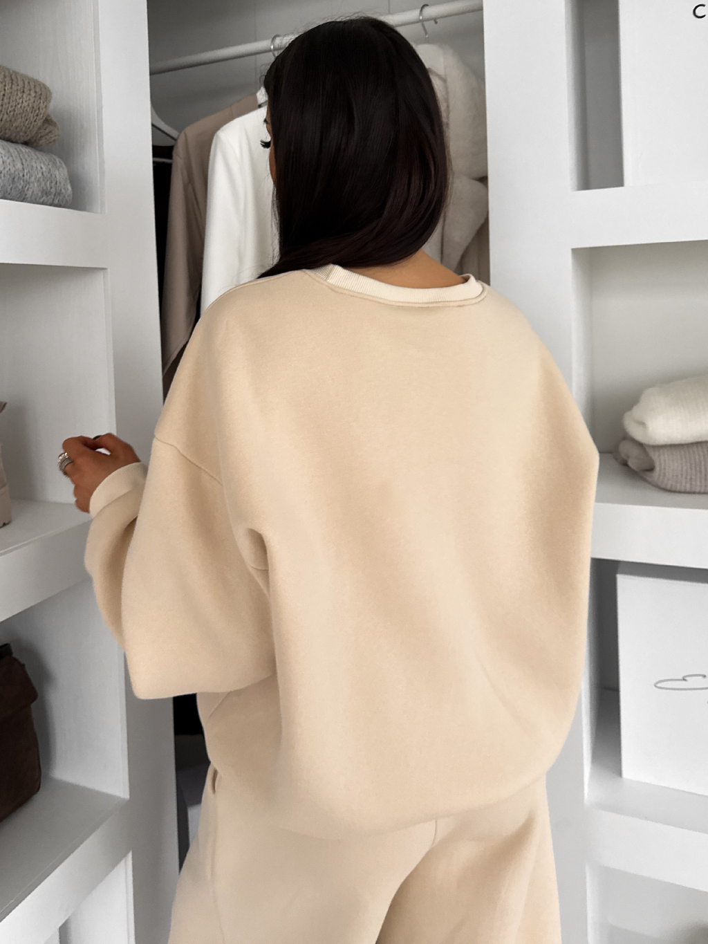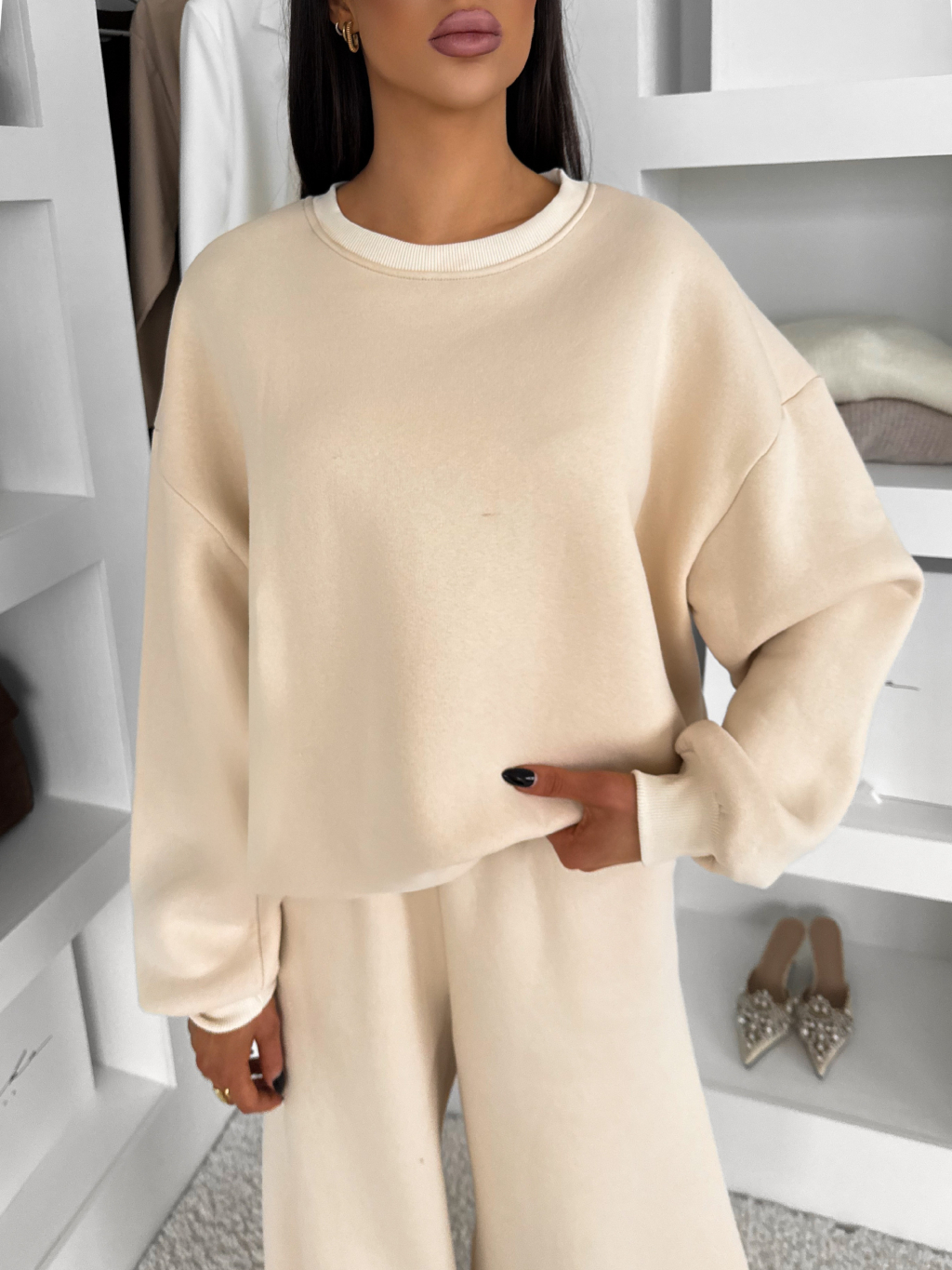 Krémová bavlněná zateplená oversize mikina LOFARI