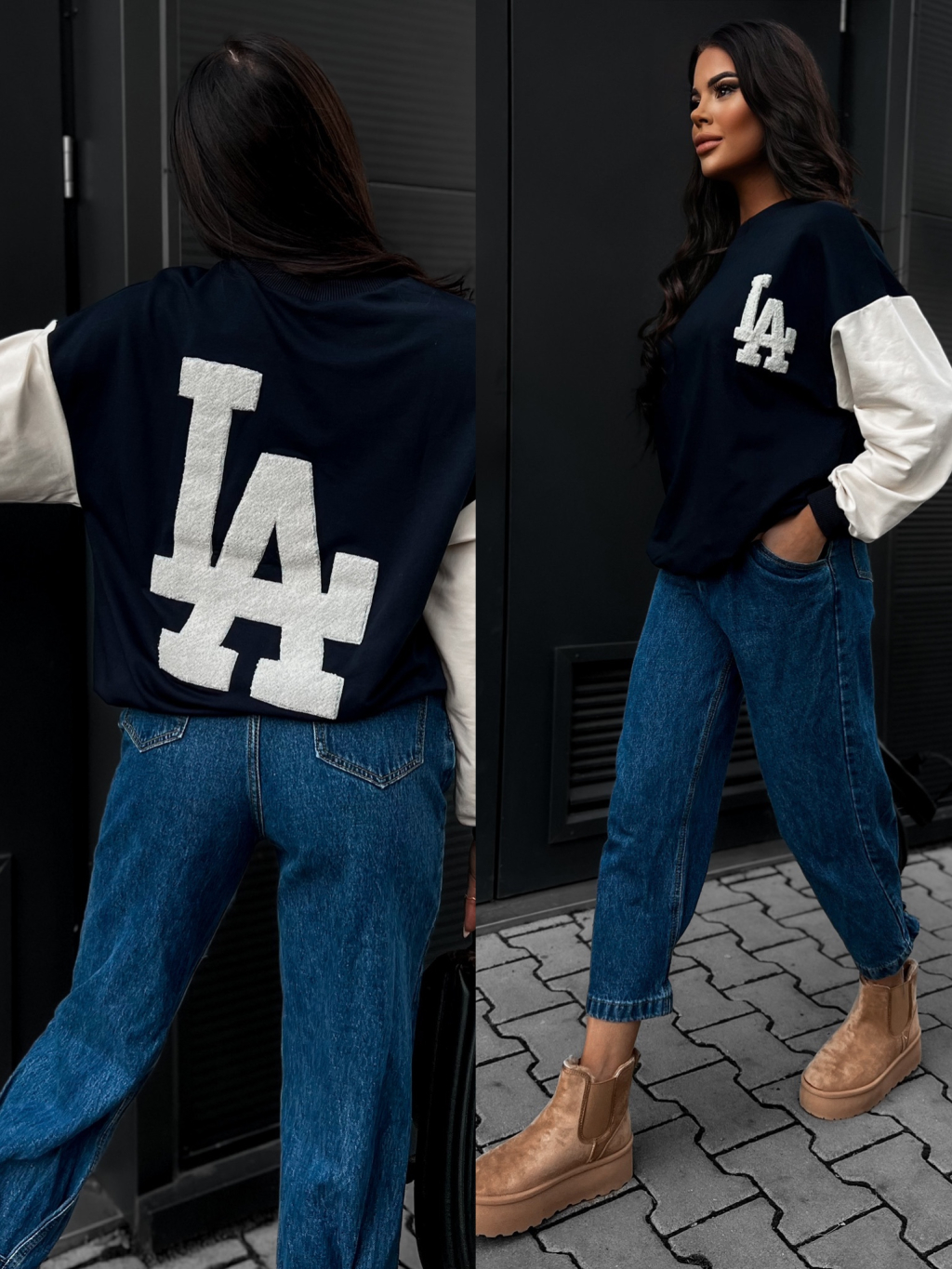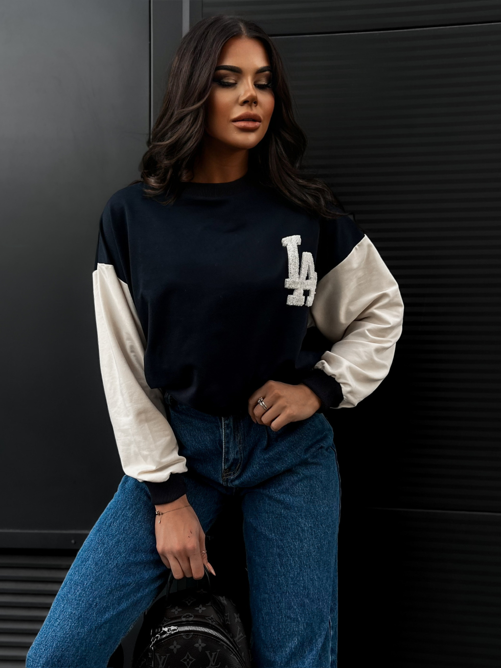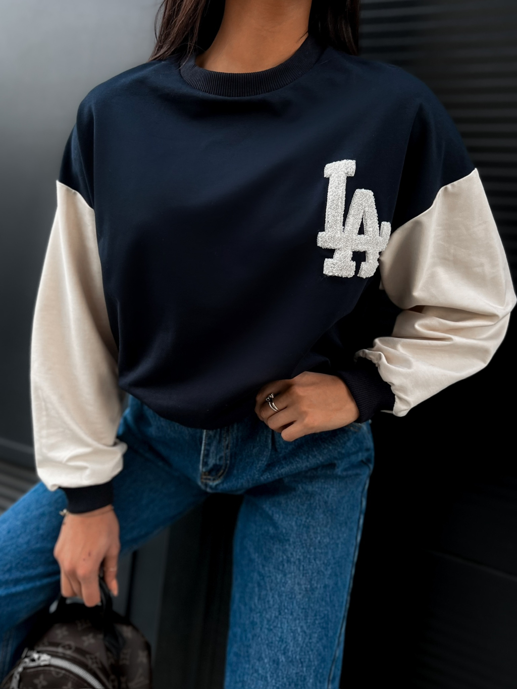 Tmavě modrá mikina TAFSAN s krémovými rukávy