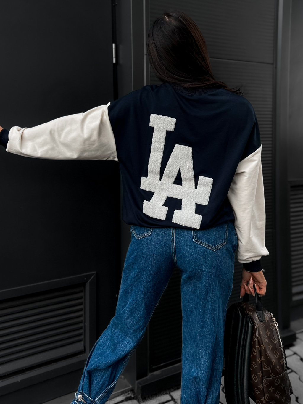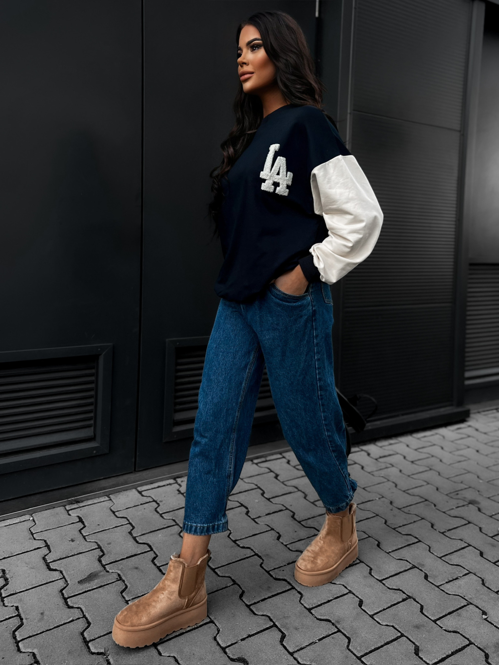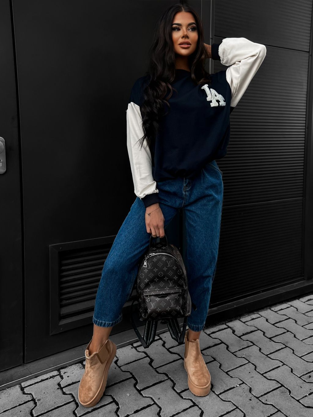 Tmavě modrá mikina TAFSAN s krémovými rukávy