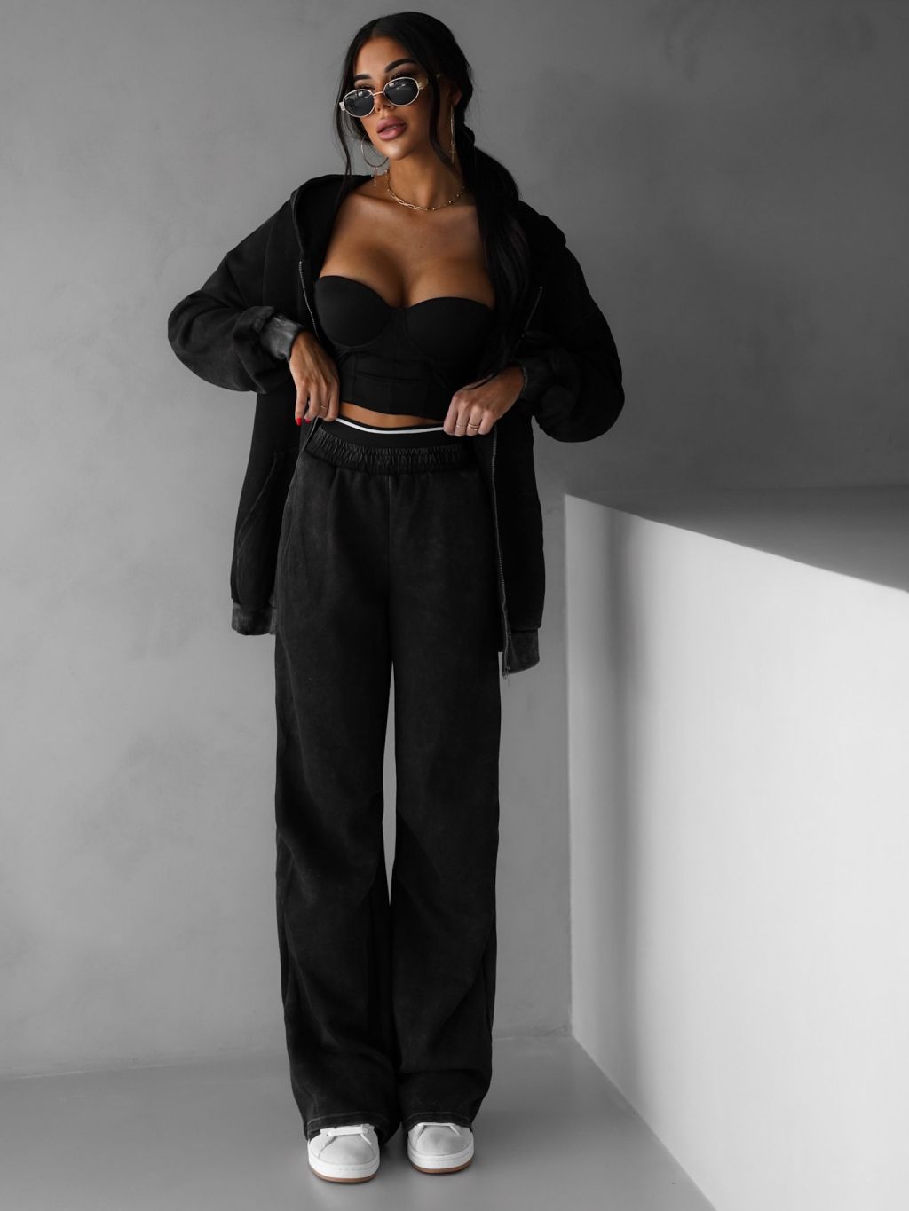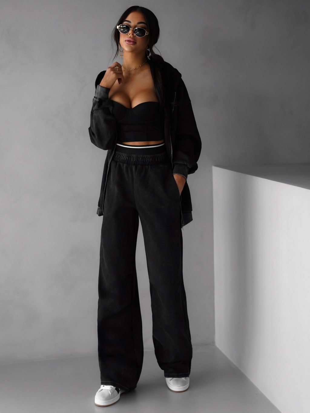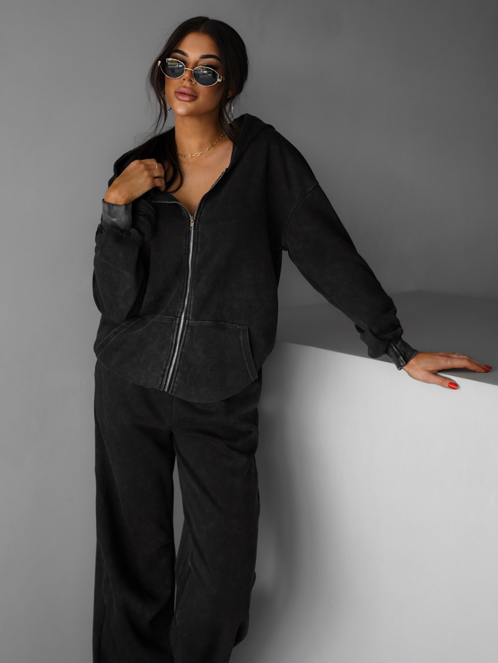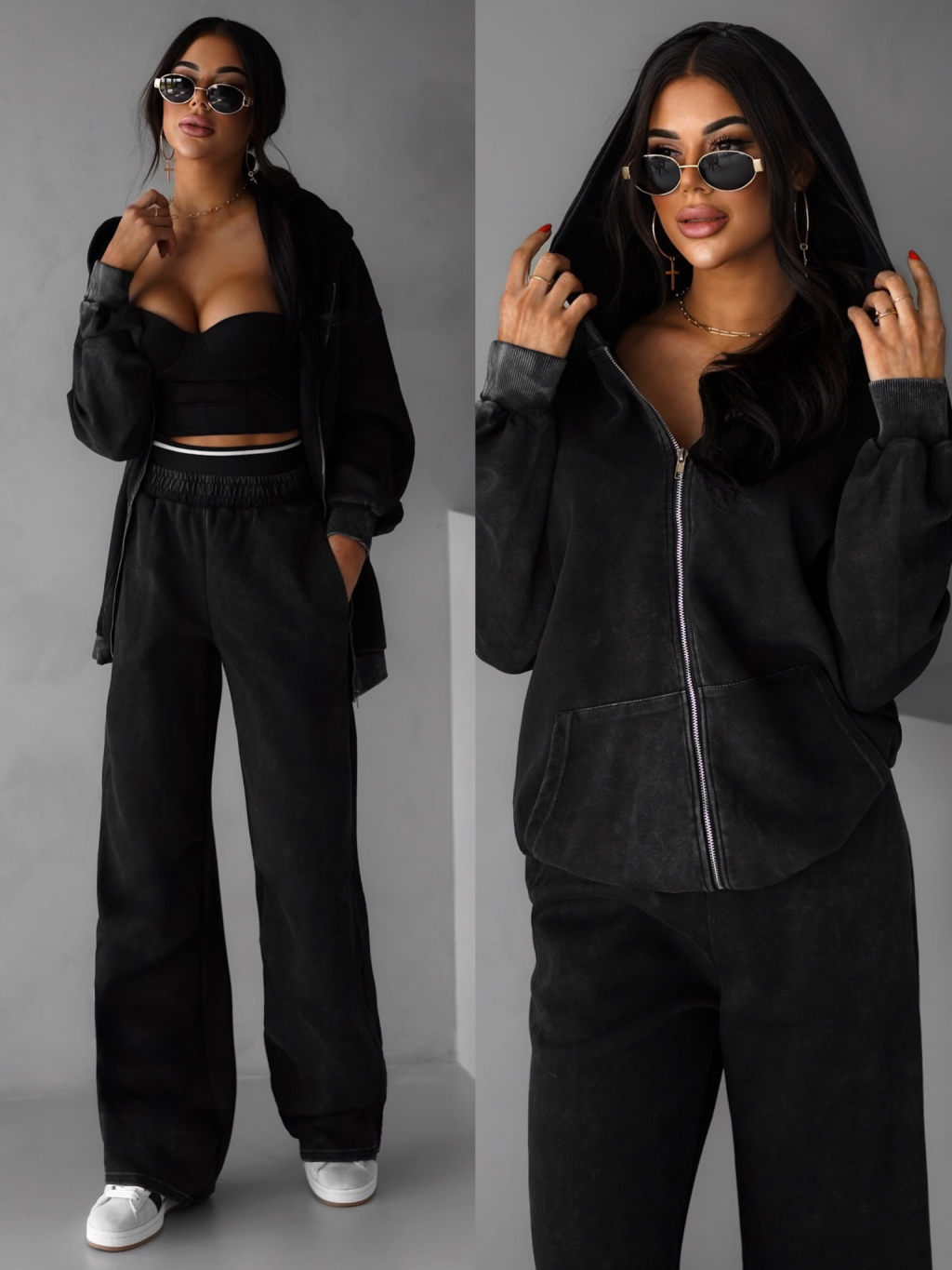Černá bavlněná stylová washed teplákovka GUDRUN