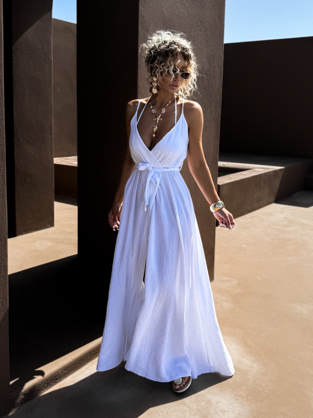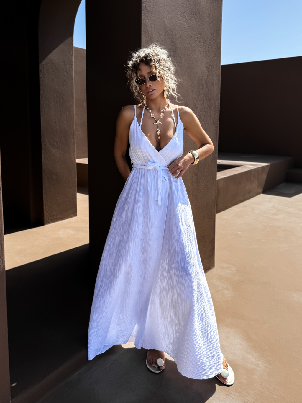 Bílé dlouhé mušelínové letní šaty SILVERA