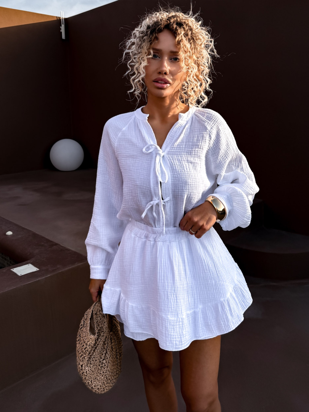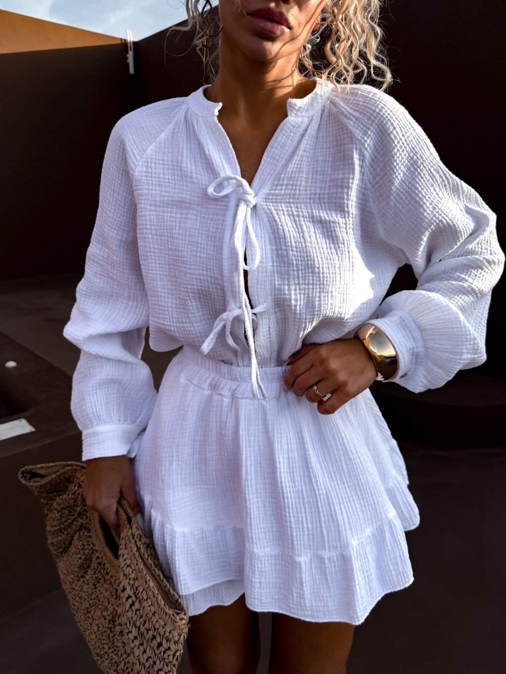 Bílý mušelínový komplet košile se sukní BLISS