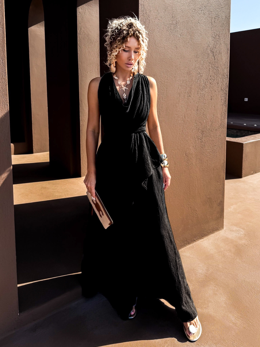 Černý mušelínový variabilní přehoz šaty top DASHER