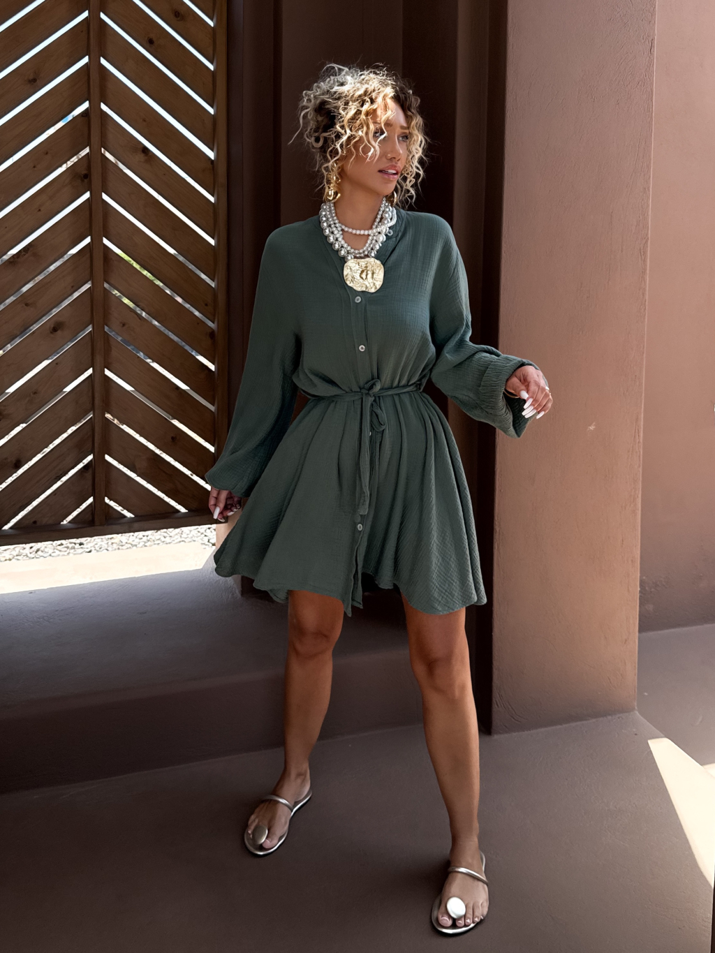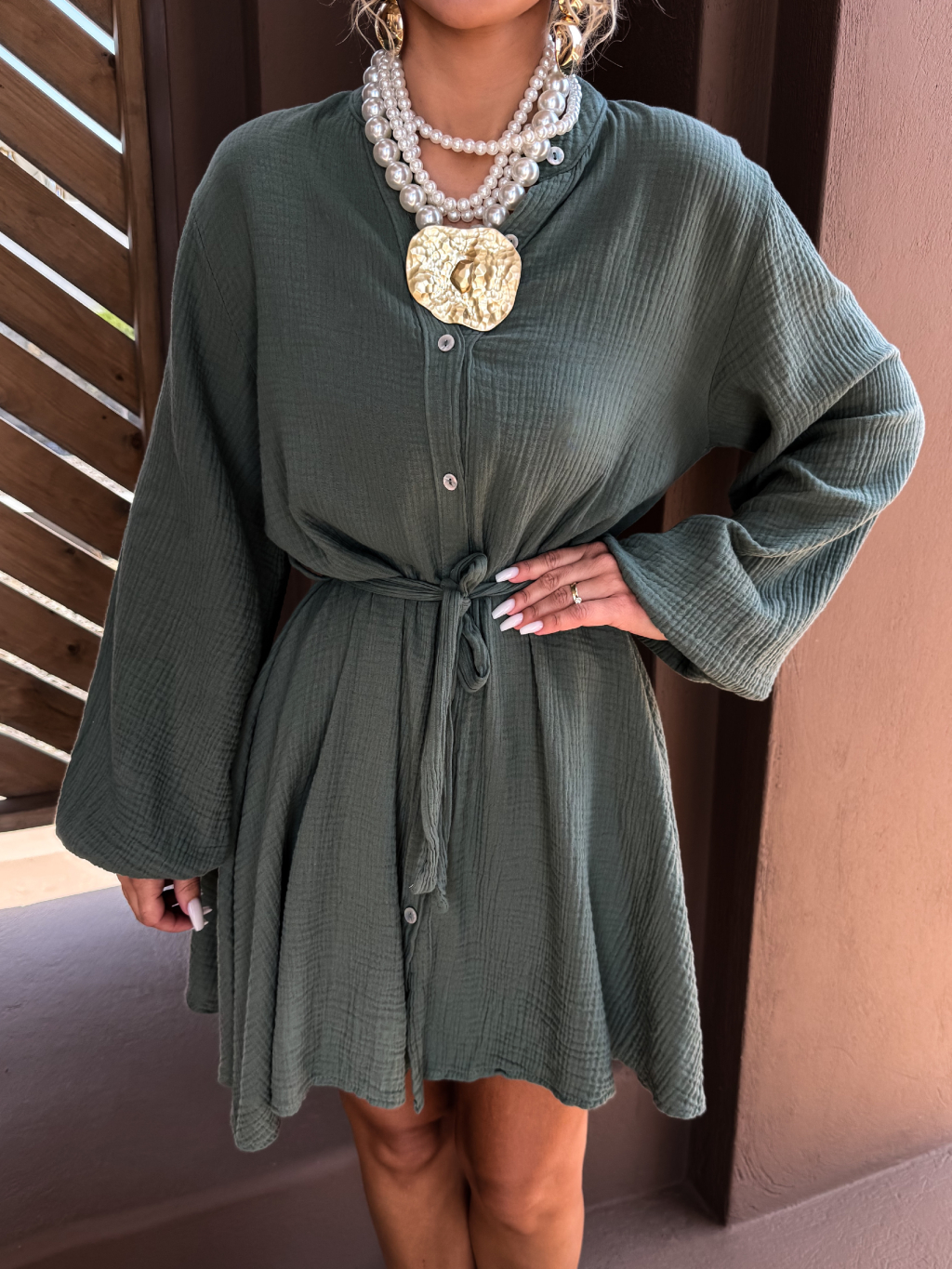 Khaki krátké košilové mušelínové šaty STEFANIE