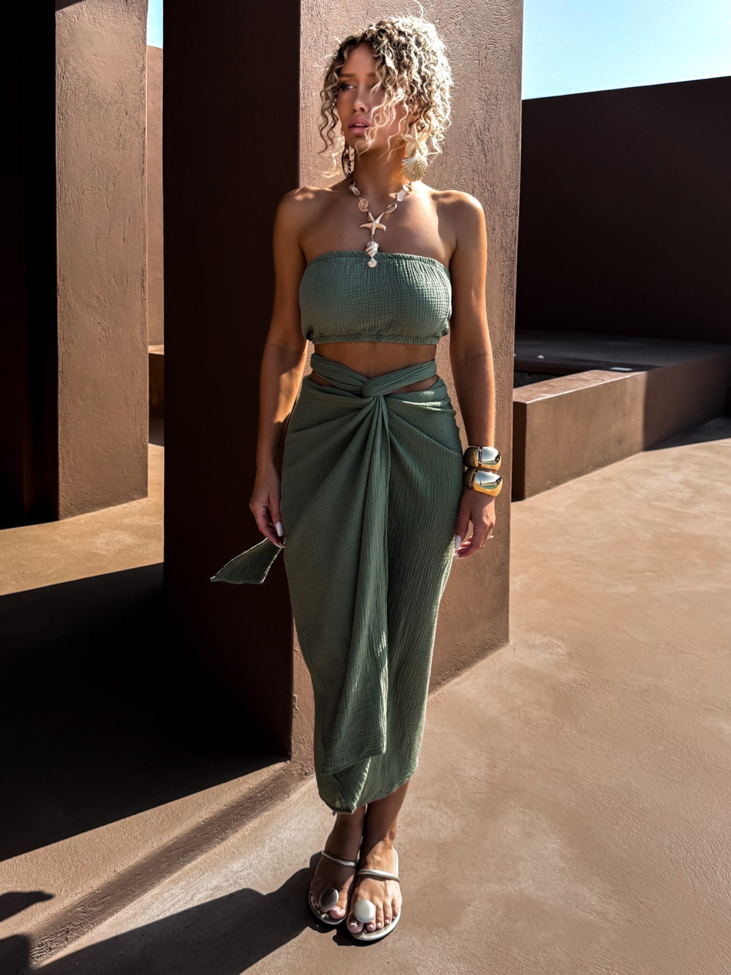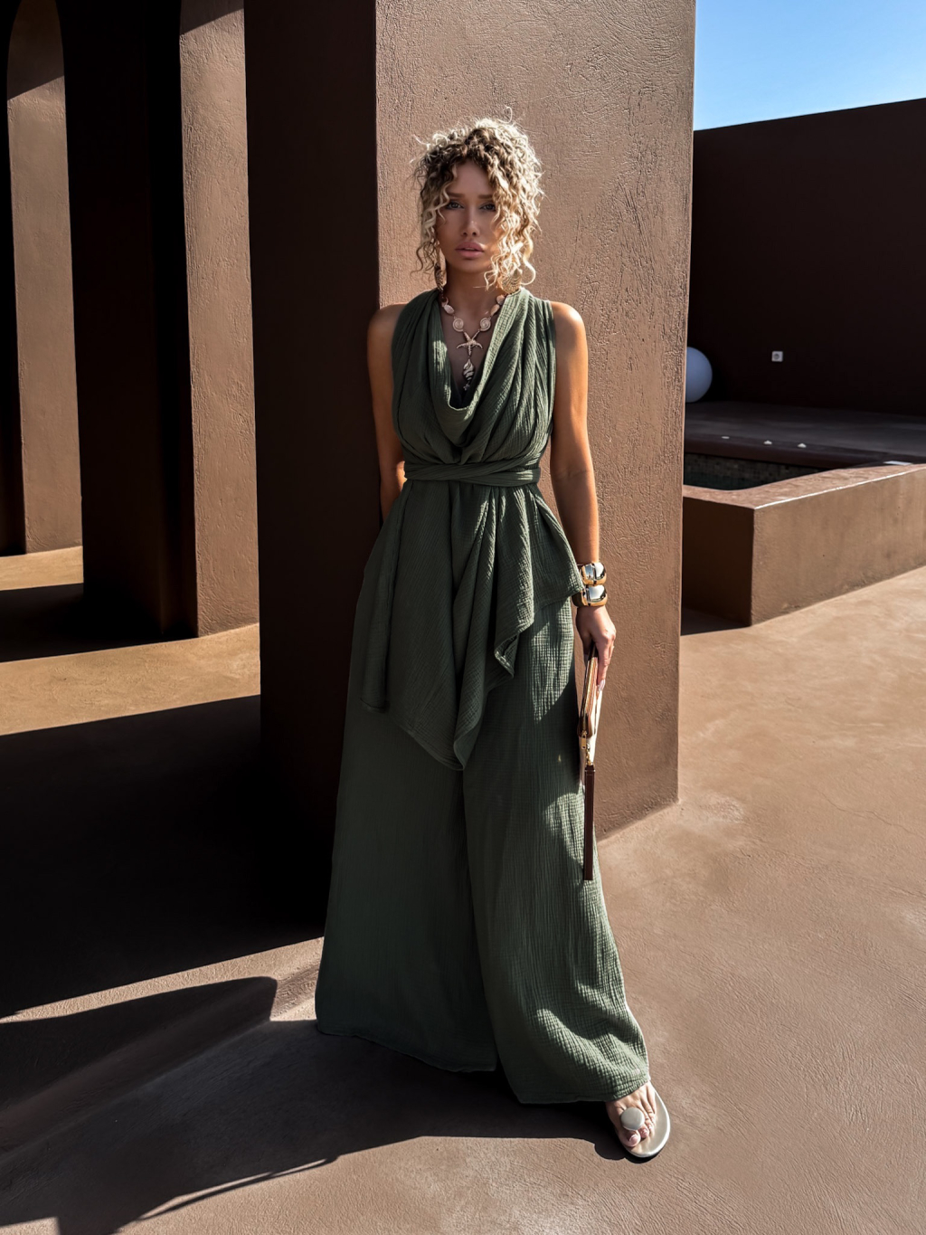 Khaki mušelínový variabilní přehoz šaty top DASHER