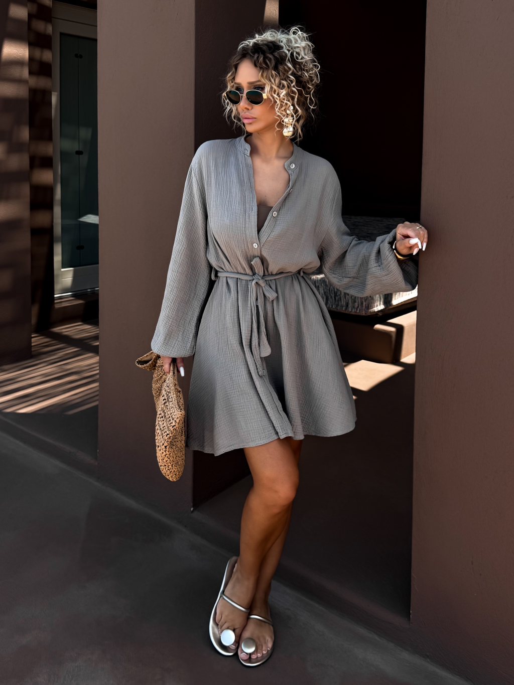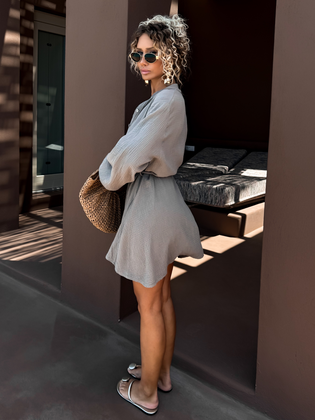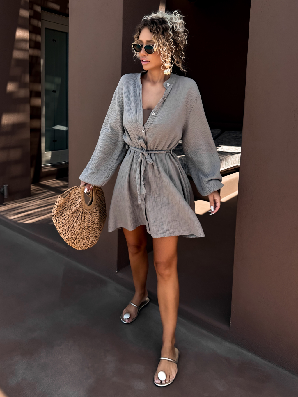 Šedohnědé krátké mušelínové šaty STEFANIE