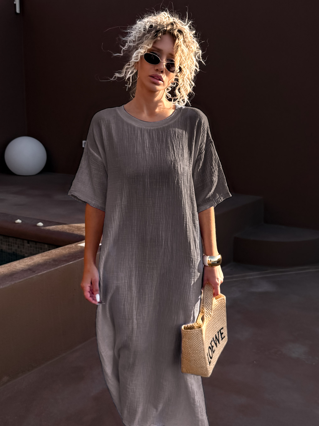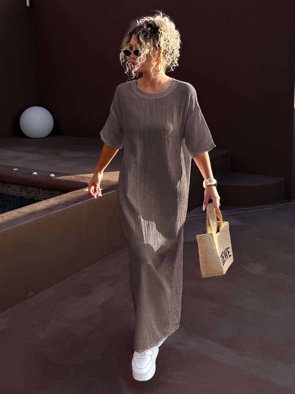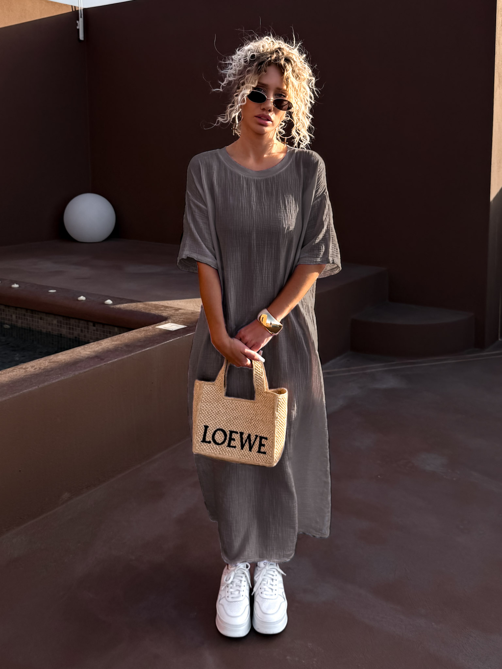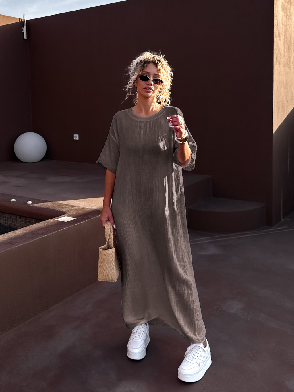 Šedohnědé mušelínové dlouhé maxi šaty SPEEDY