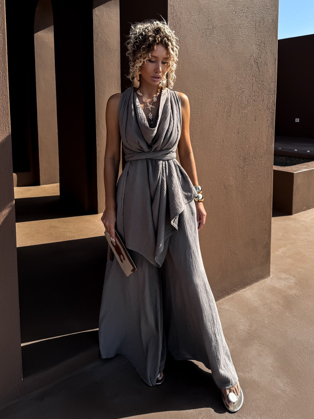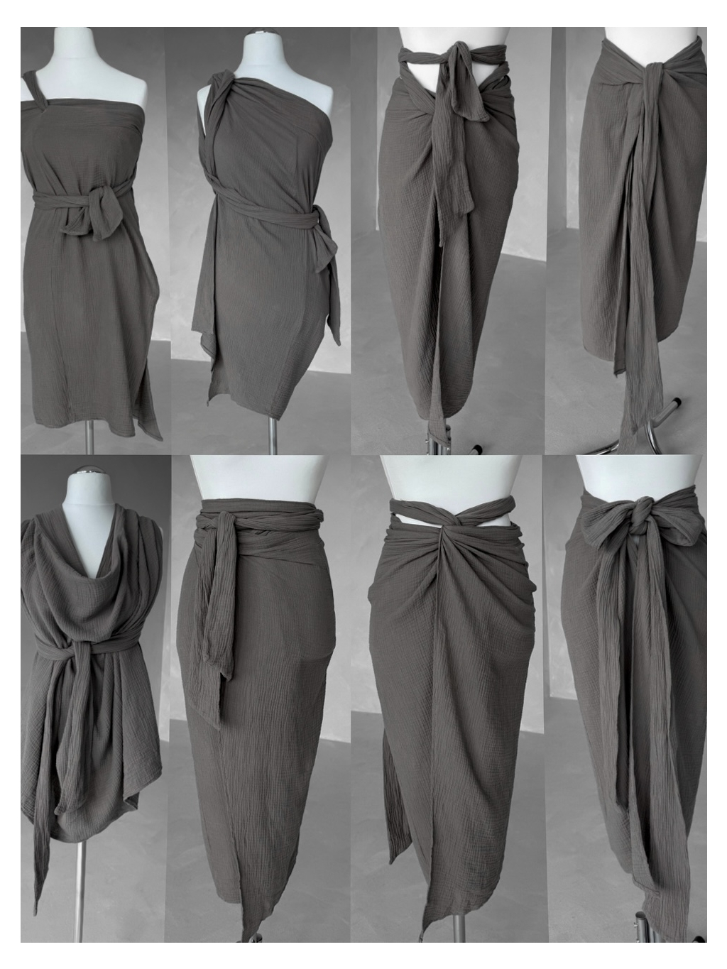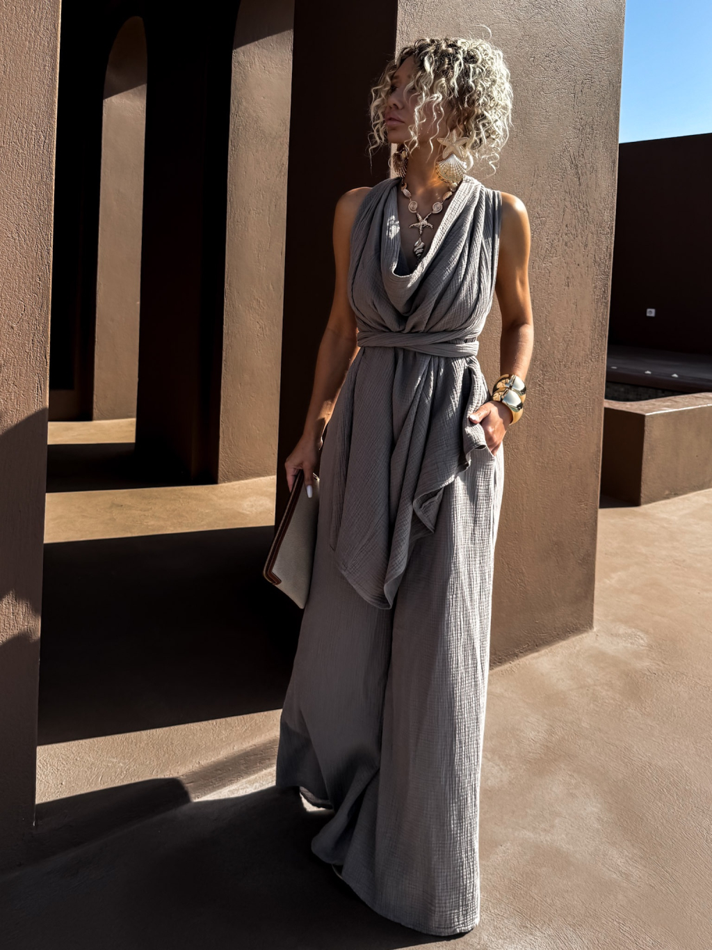 Šedohnědý mušelínový variabilní přehoz top šaty DASHER