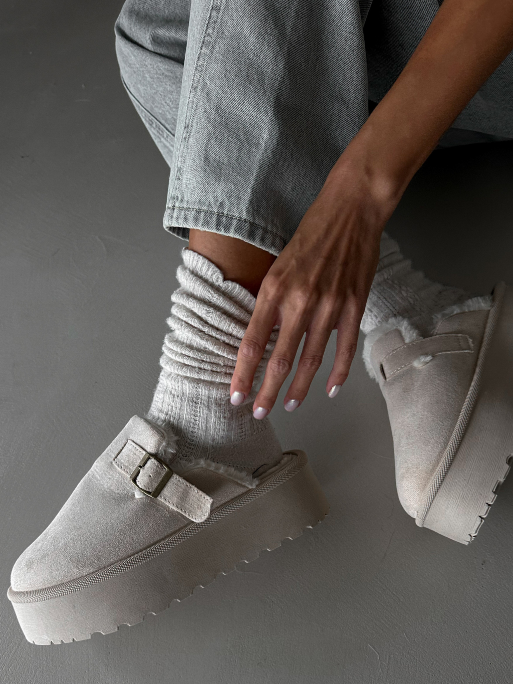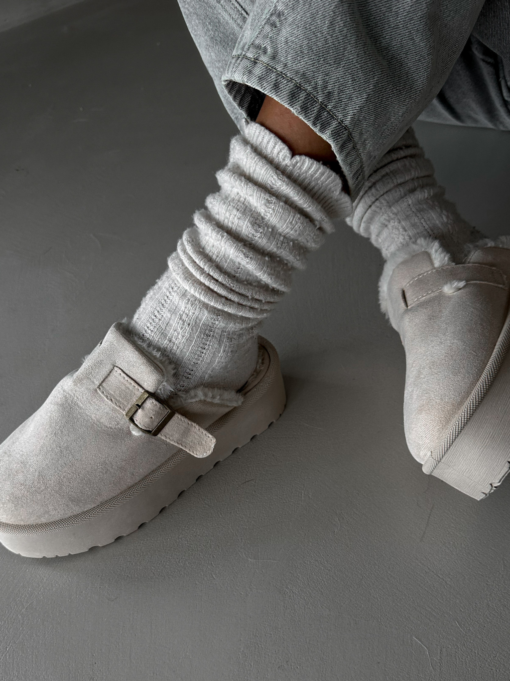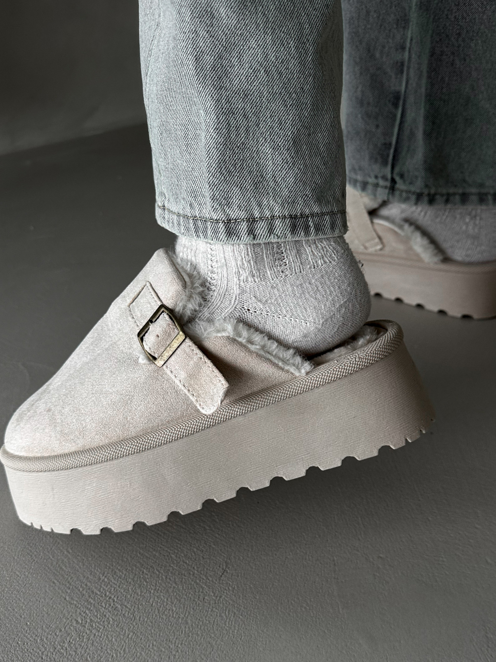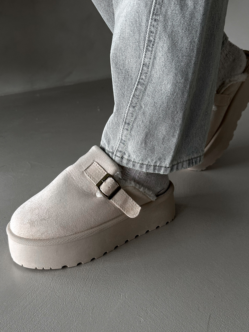 Krémové boty BUCKLE s vysokou podrážkou