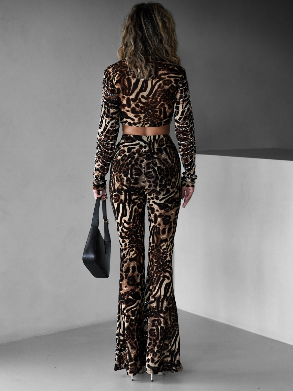 Leopardí třpytivý kalhotový komplet KENOTON