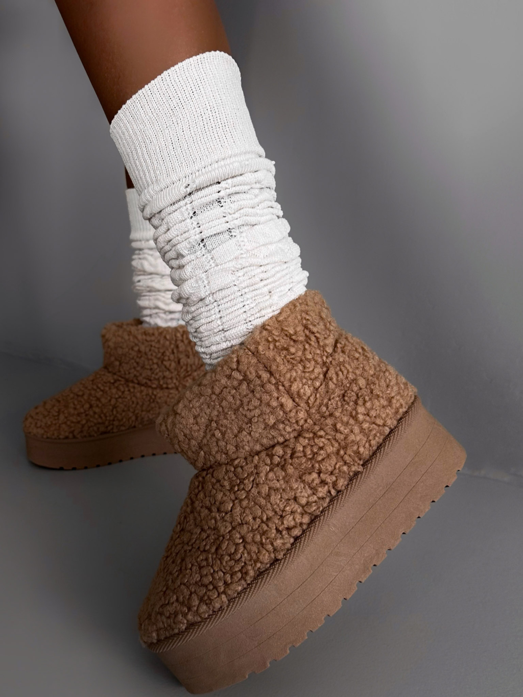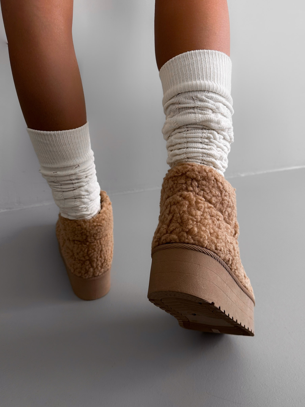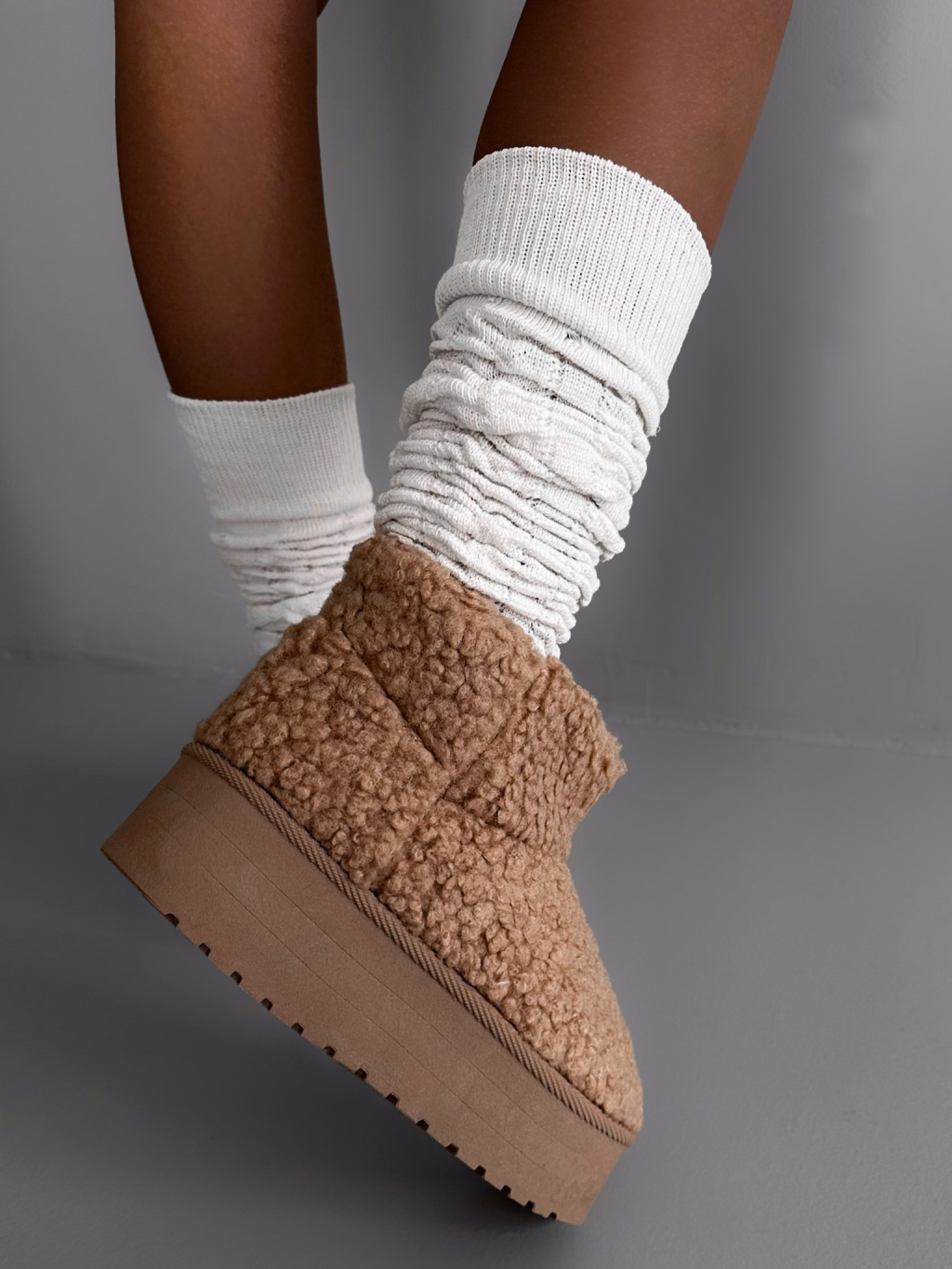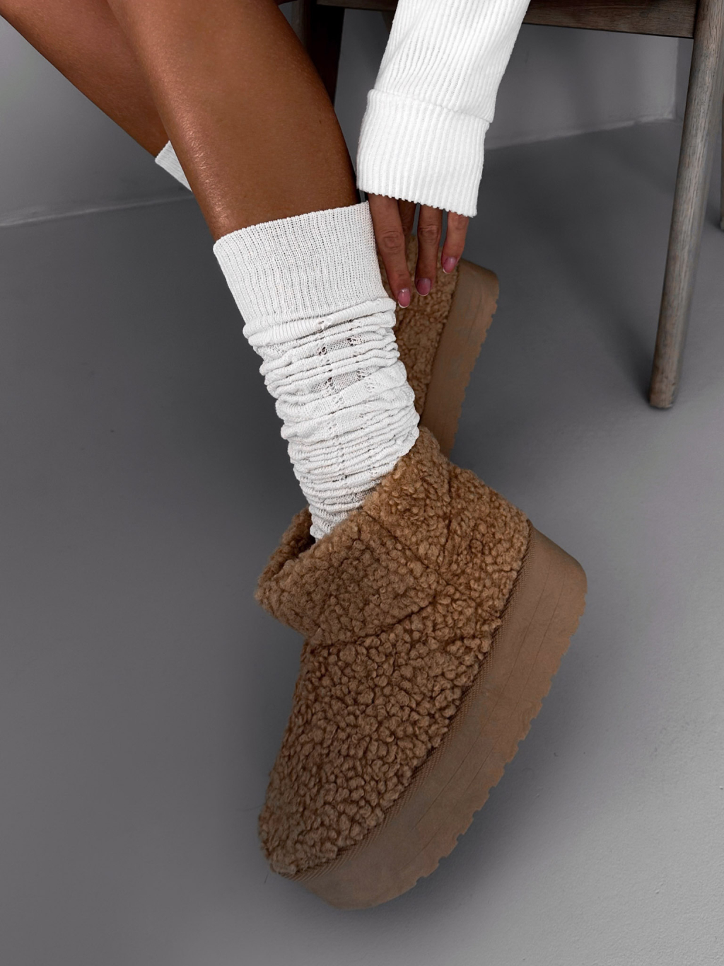Světlohnědé válenky DUARTE s vysokou podrážkou