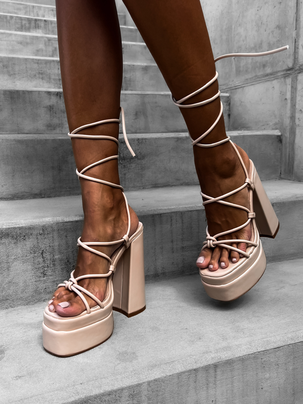 Béžové boty na podpatku AMARYLLI s vysokou podrážkou