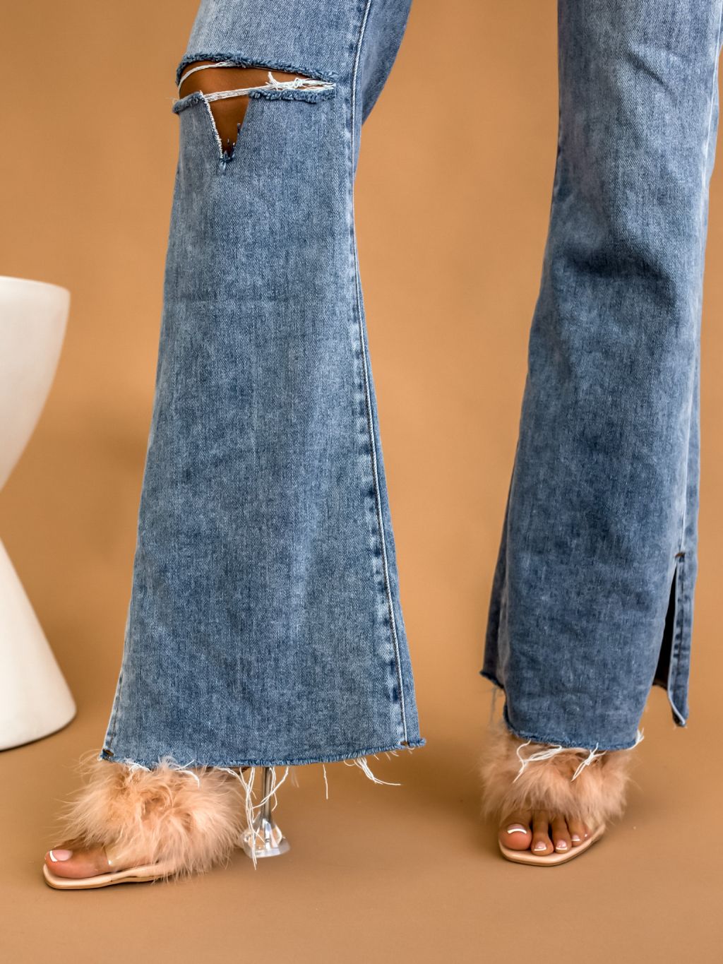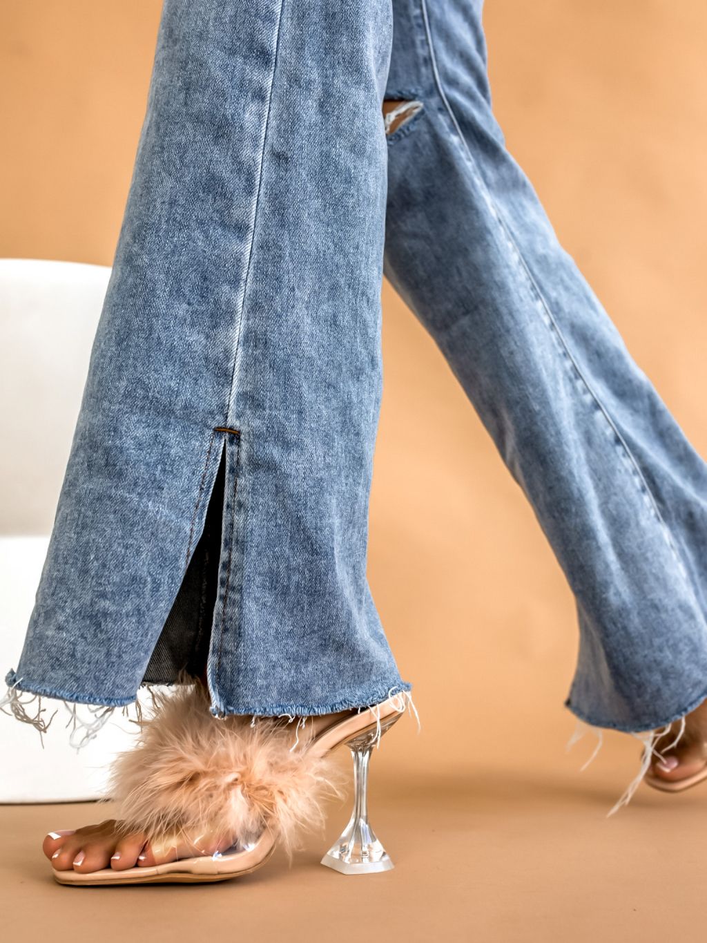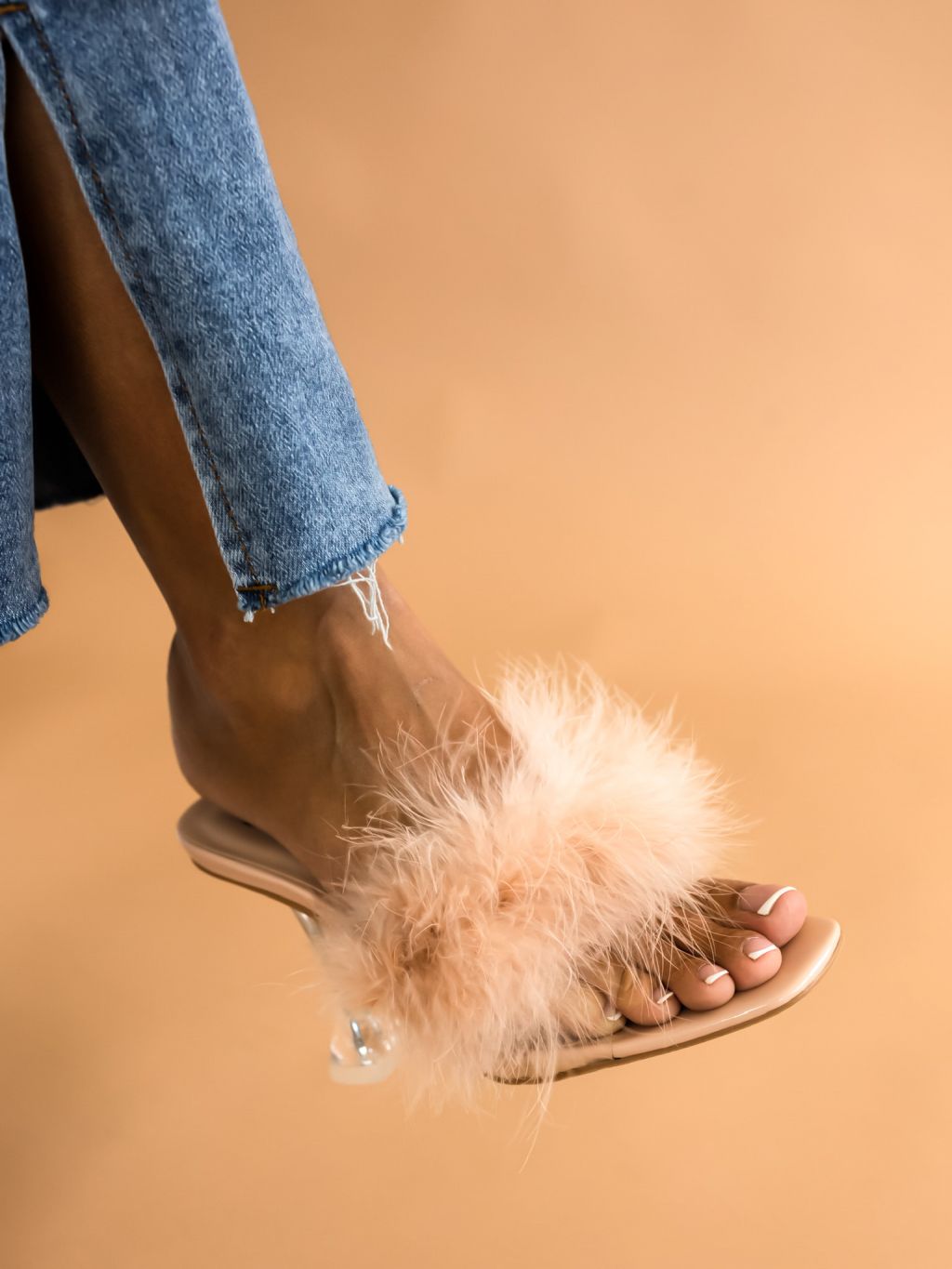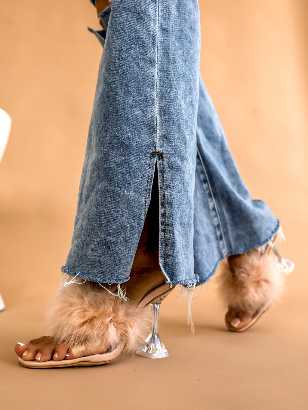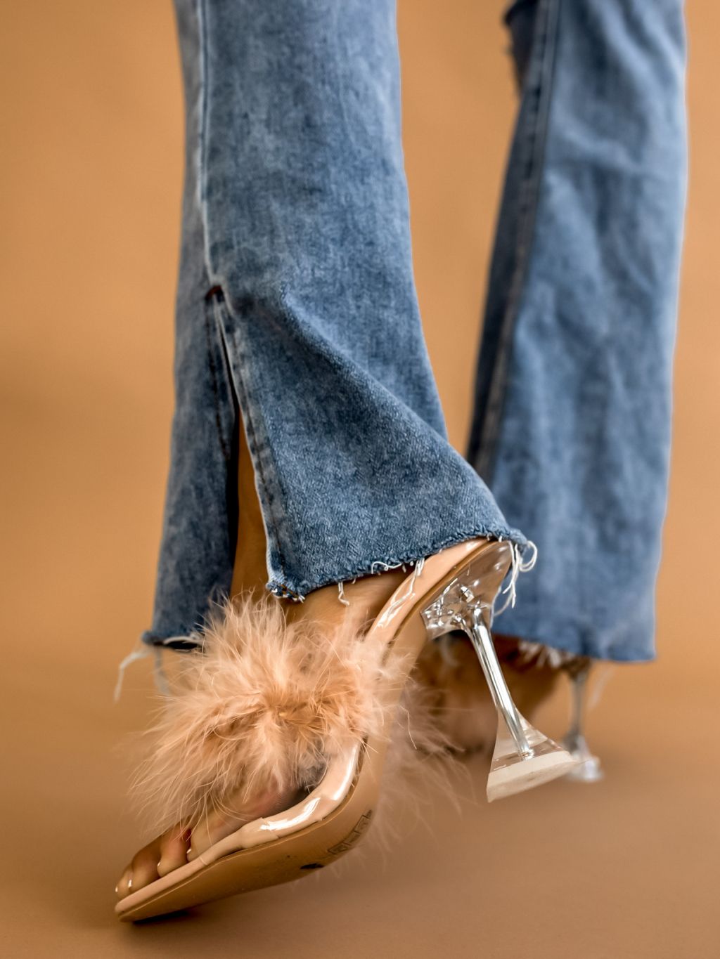 Béžové boty na podpatku THROW zdobené peřím