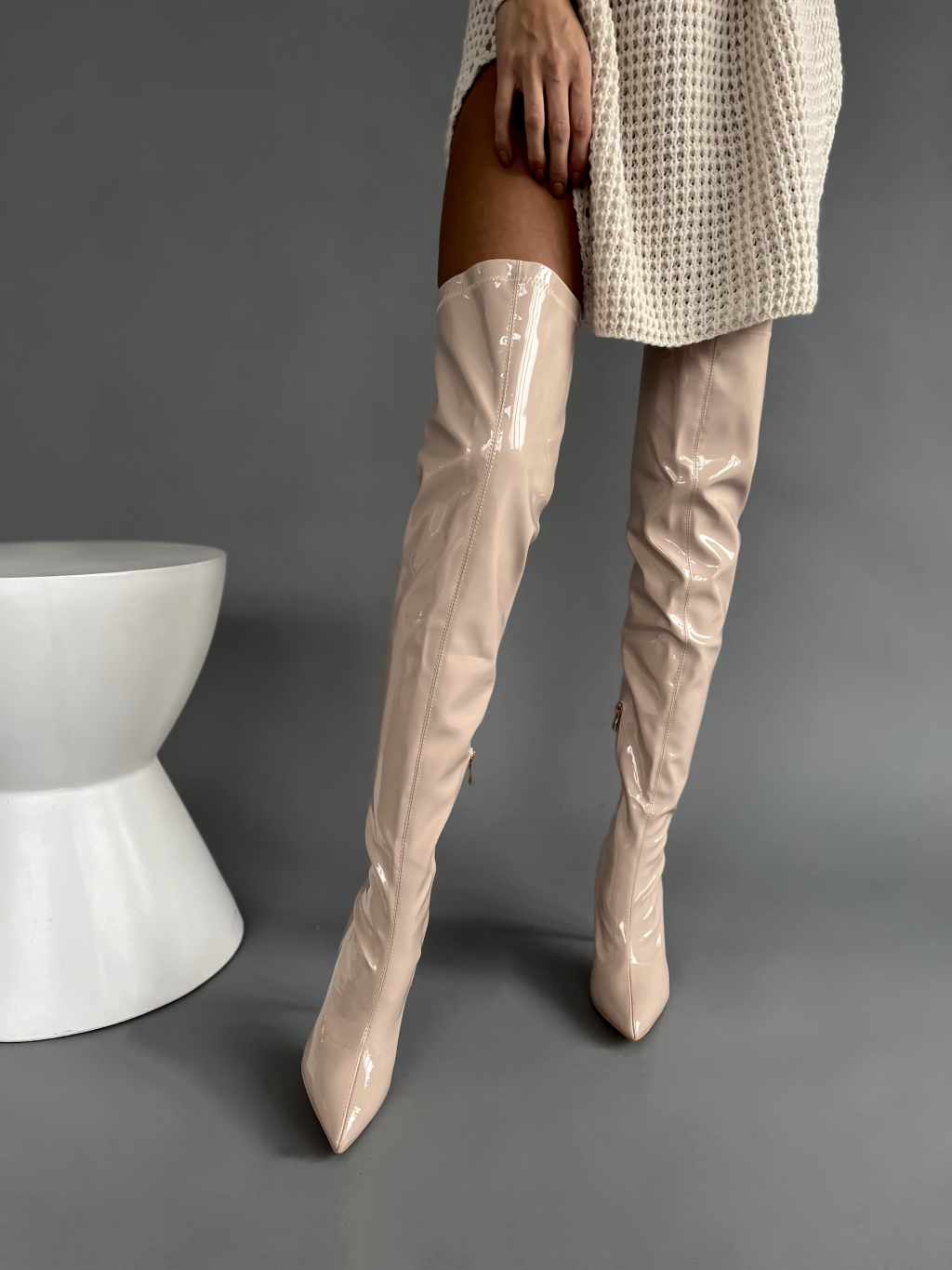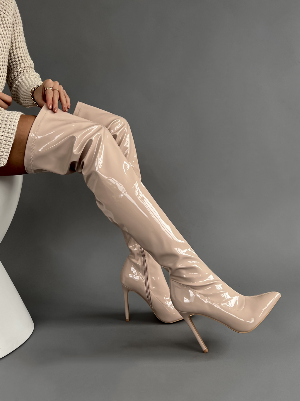 Béžové vysoké lesklé kozačky DOLLYN na podpatku