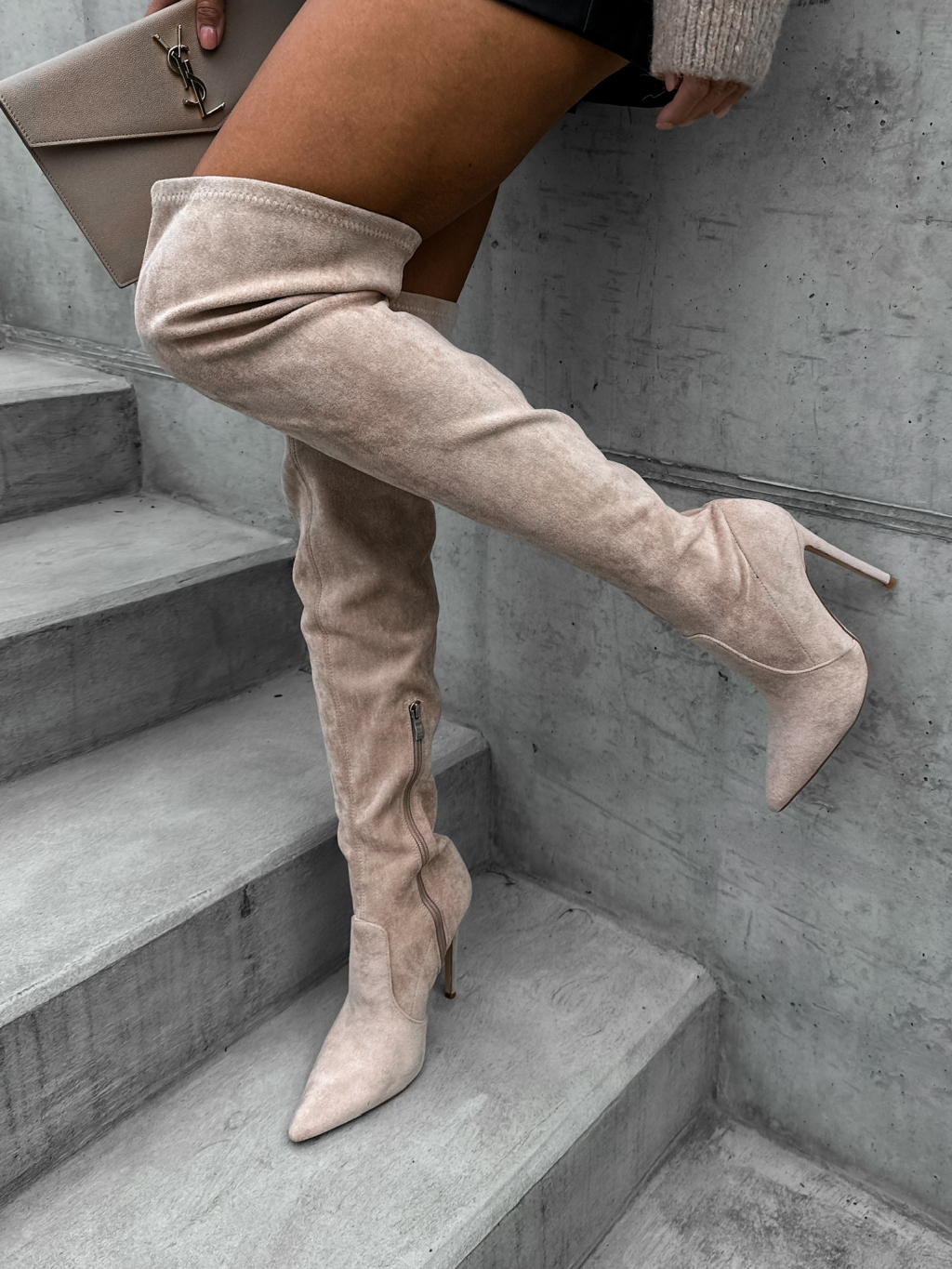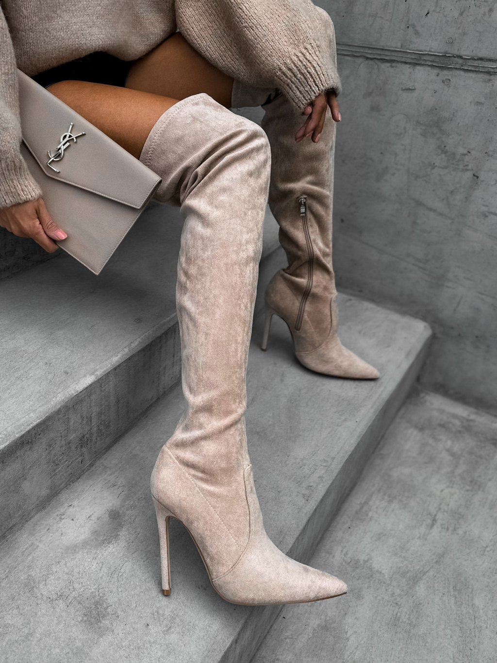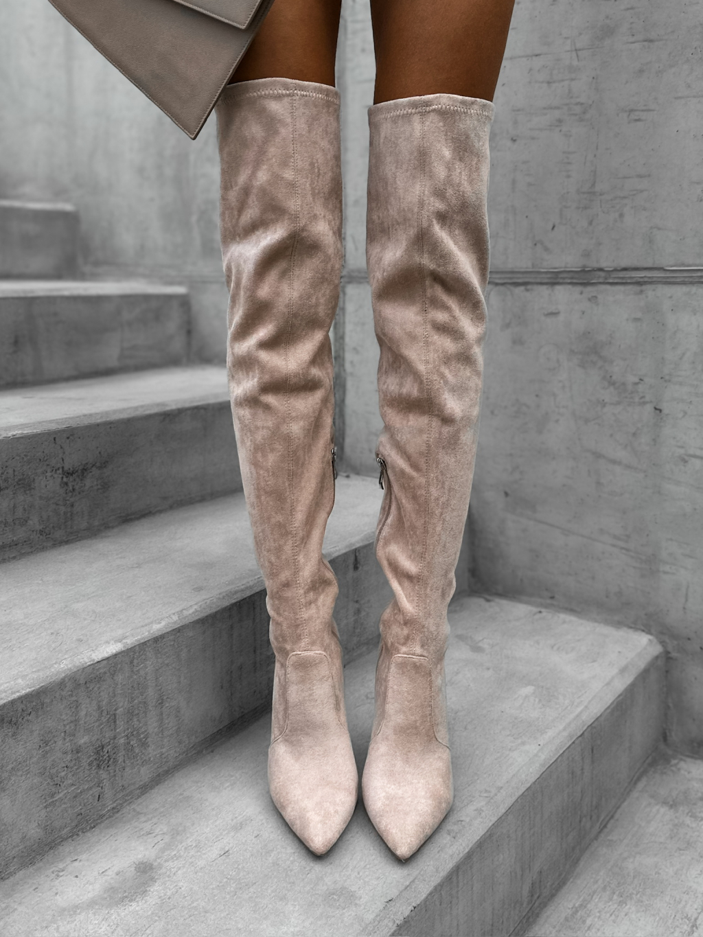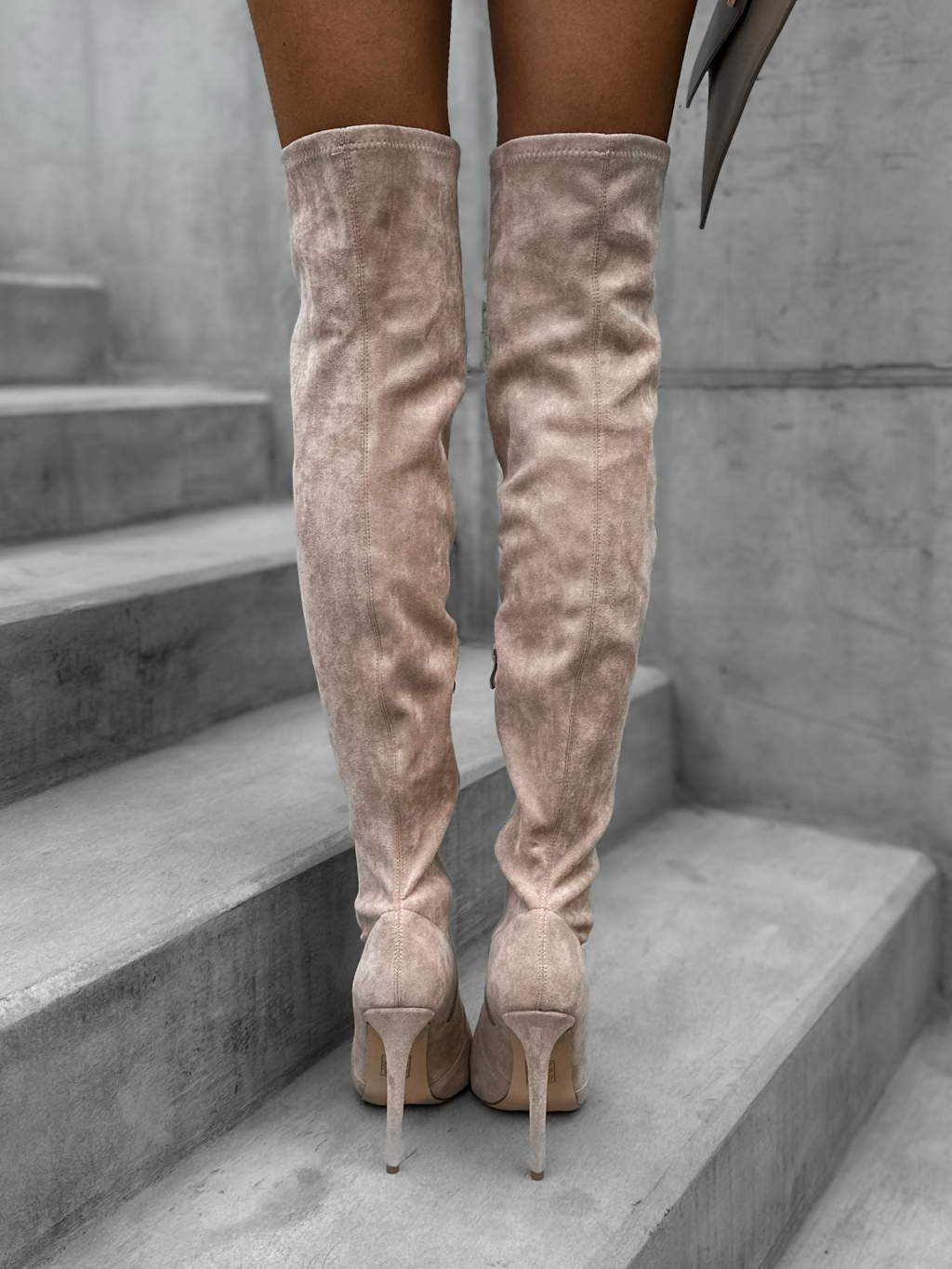 Béžové vysoké semišové kozačky PAMELYS na podpatku