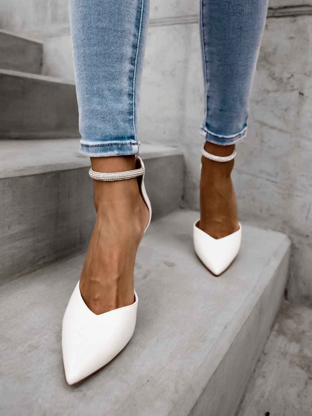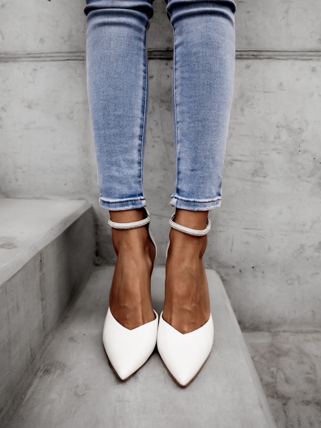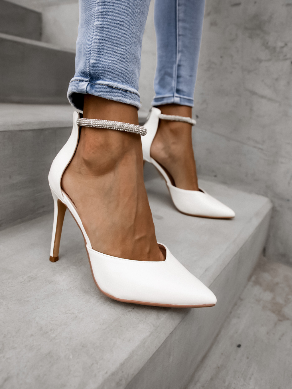Bílé boty na podpatku KELIE se třpytivým zavazováním