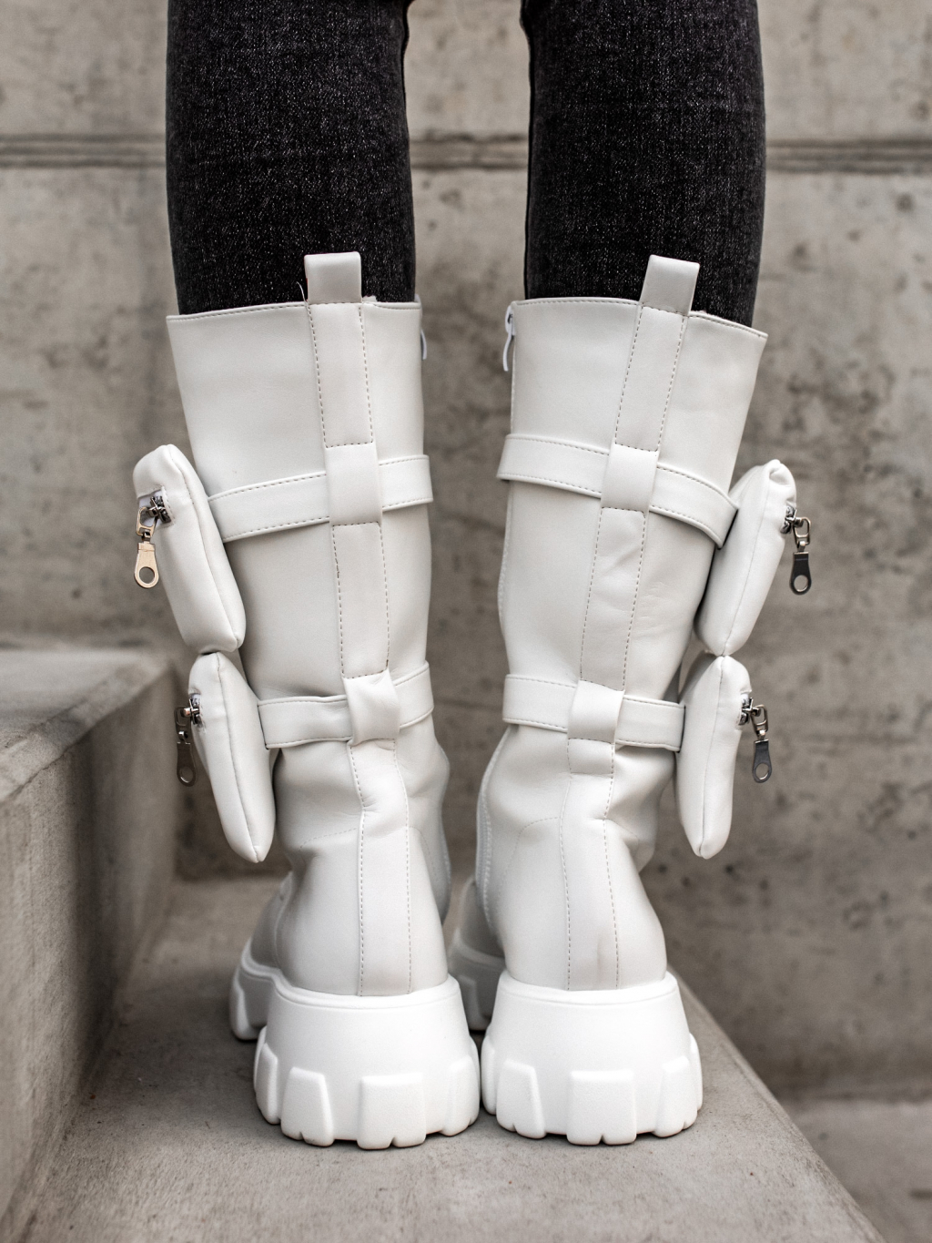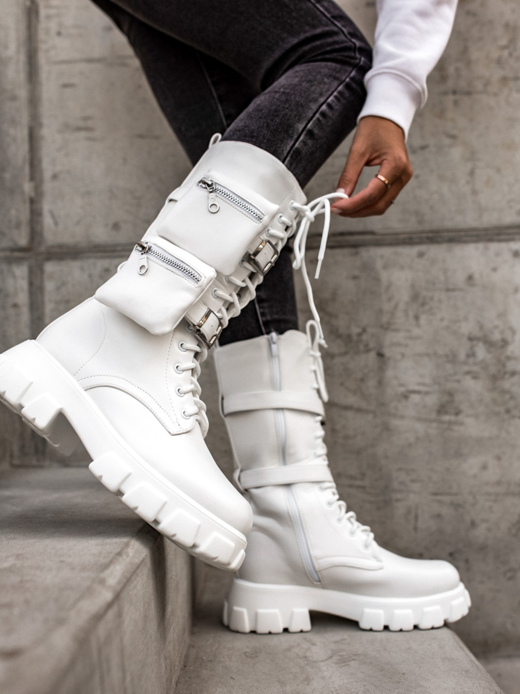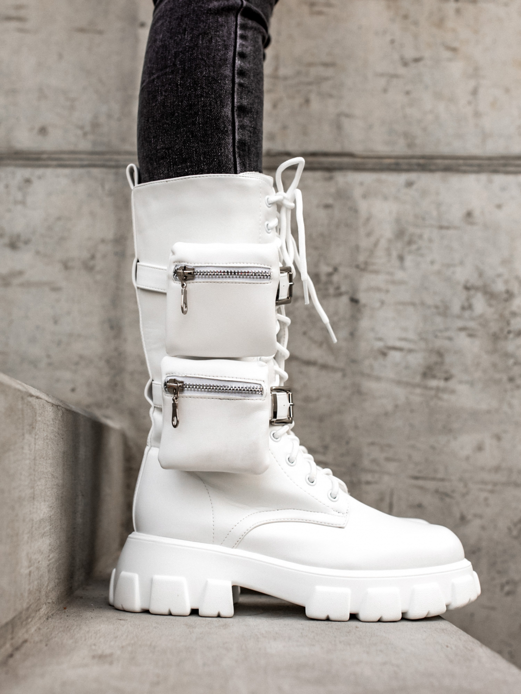 Bílé vysoké boty LIBRAS s kapsičkou