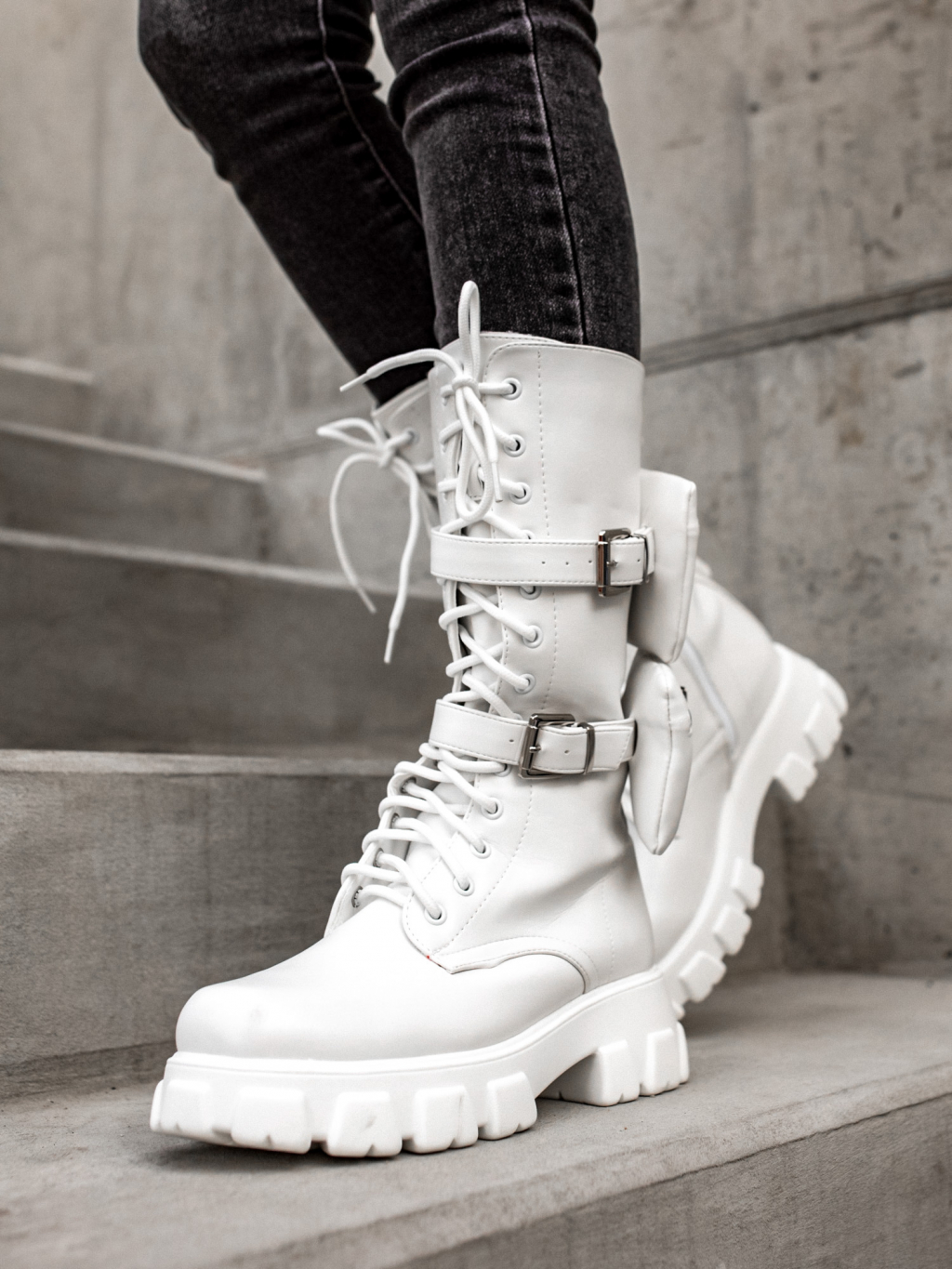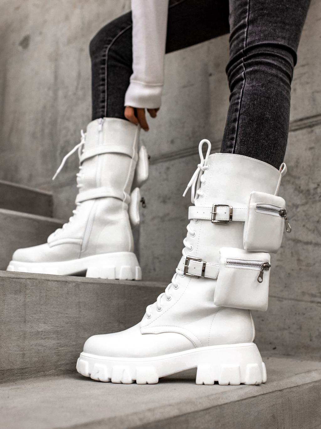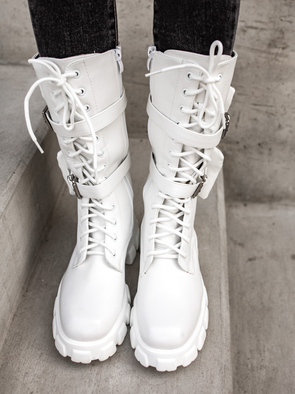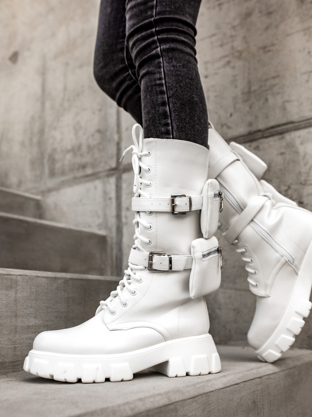 Bílé vysoké boty LIBRAS s kapsičkou