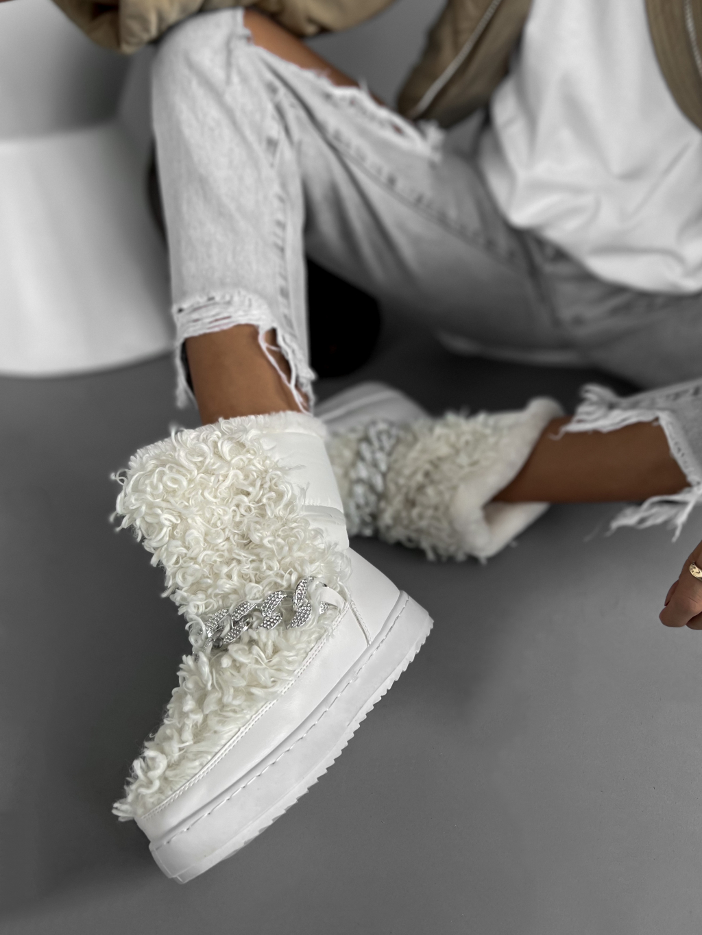 Bílé zimní kotníkové boty TWYLA s kožíškem
