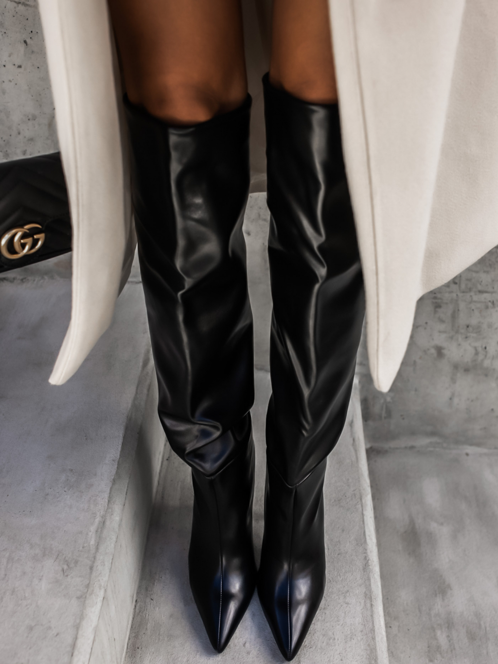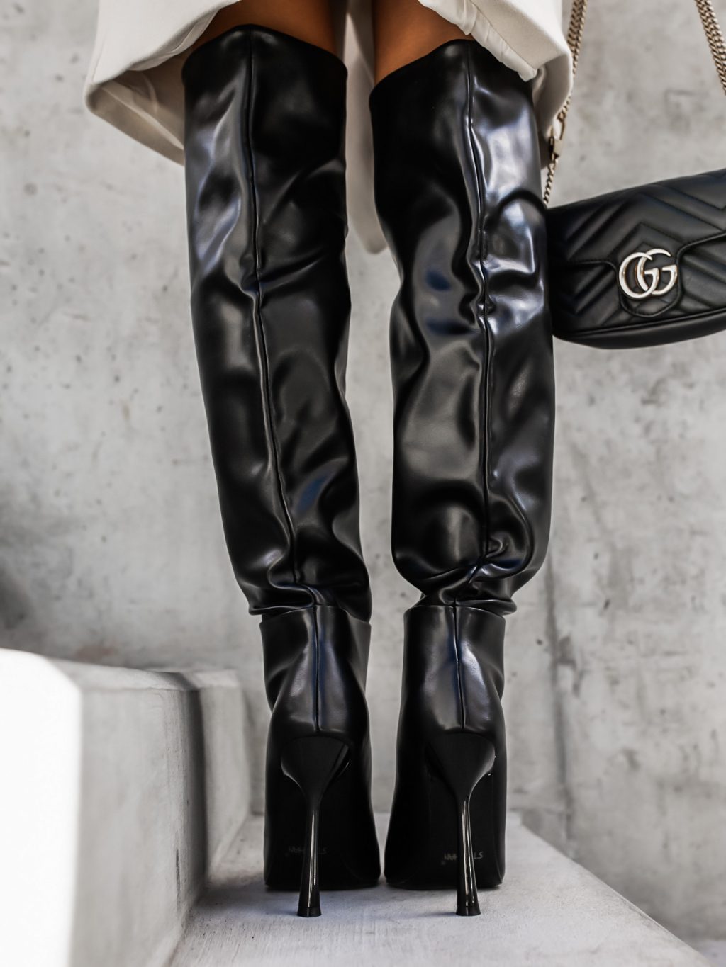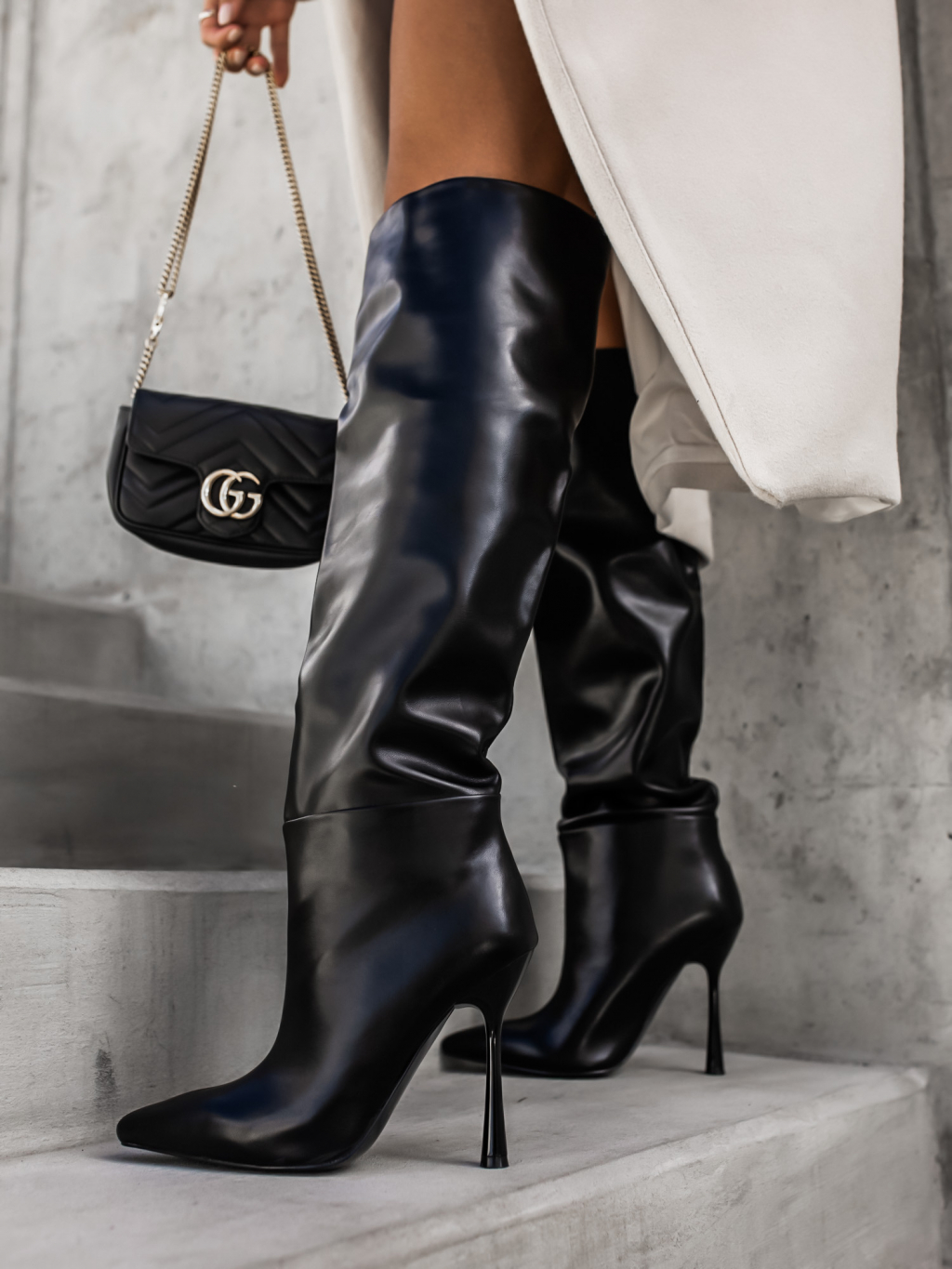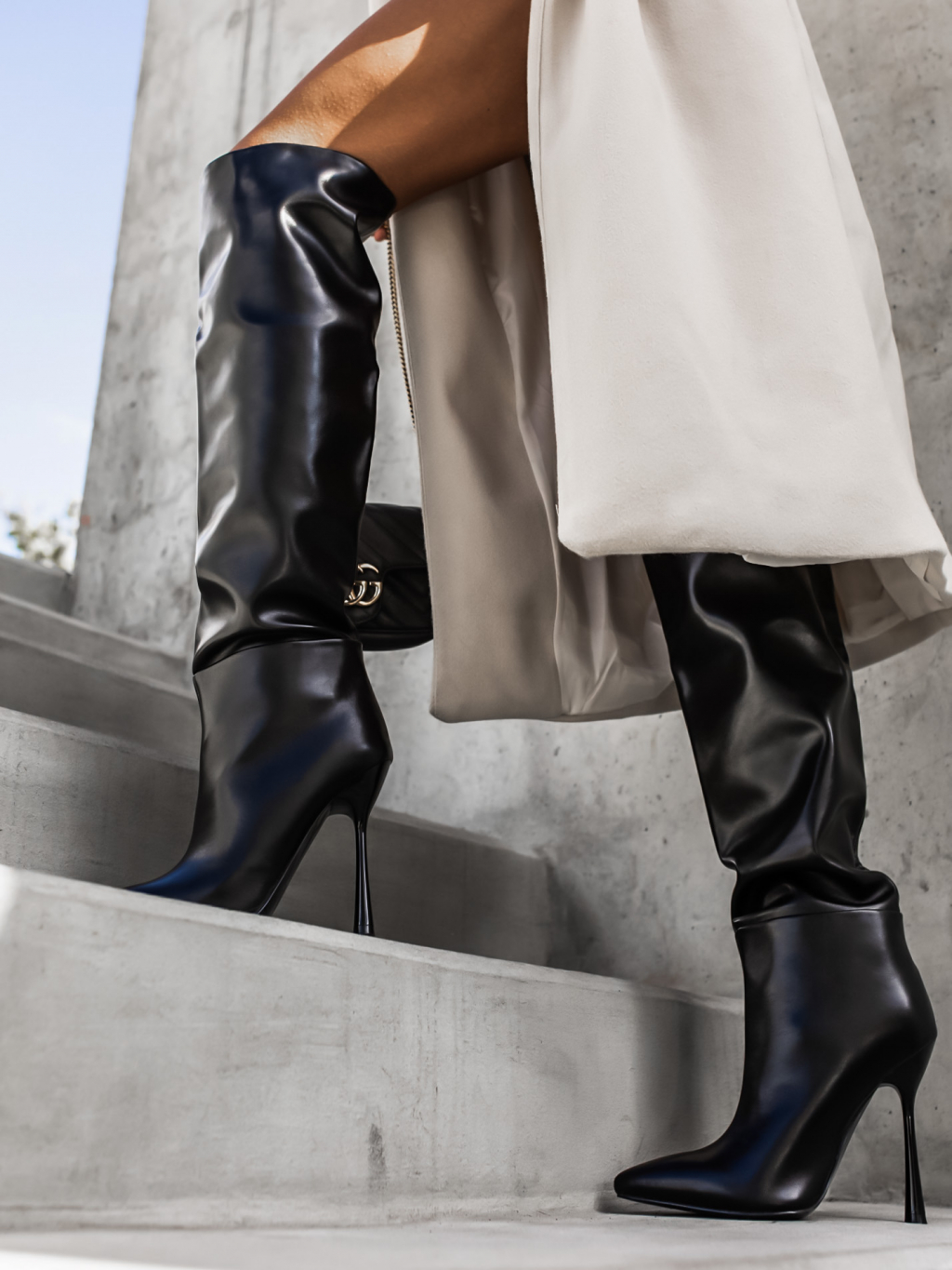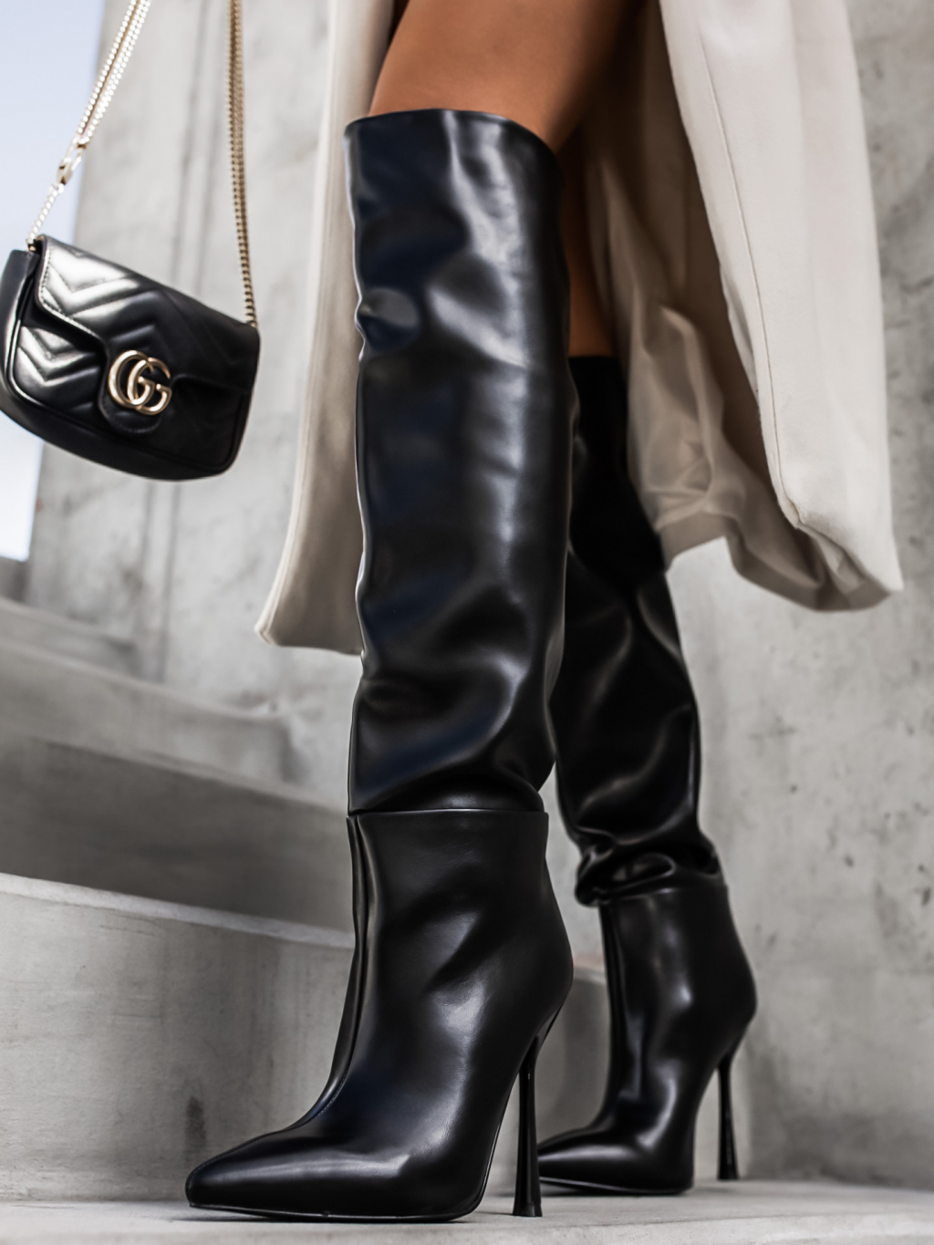 Černé elegantní kozačky COULLY na vysokém podpatku