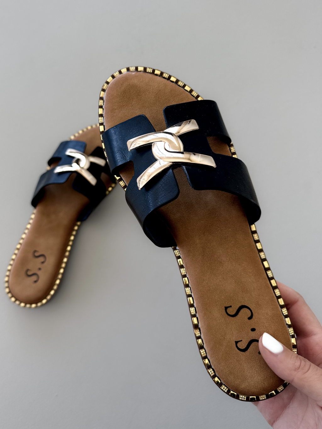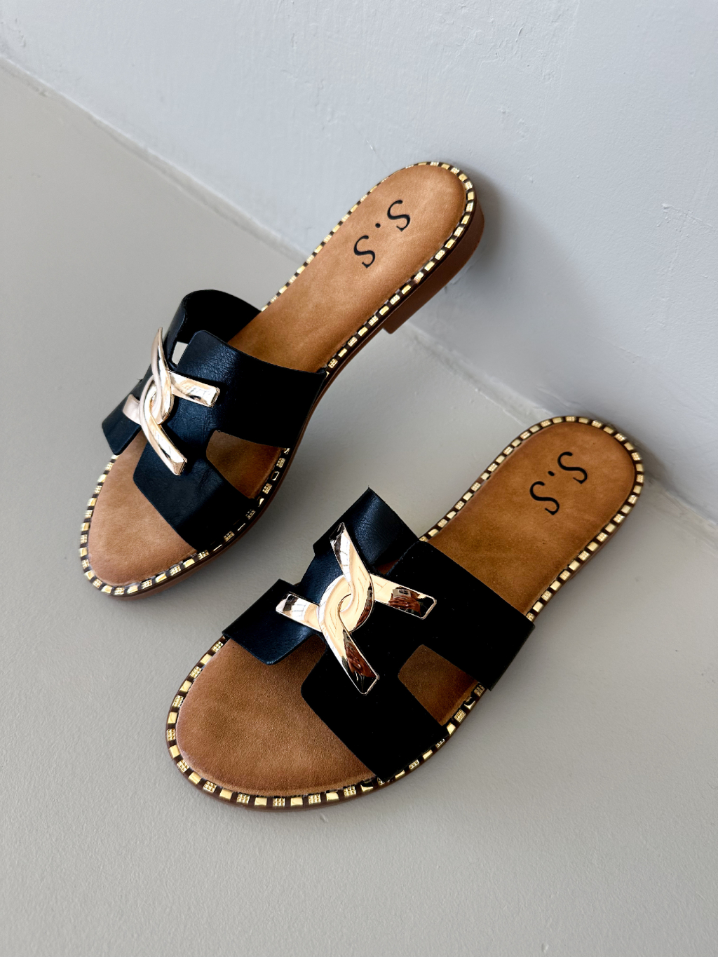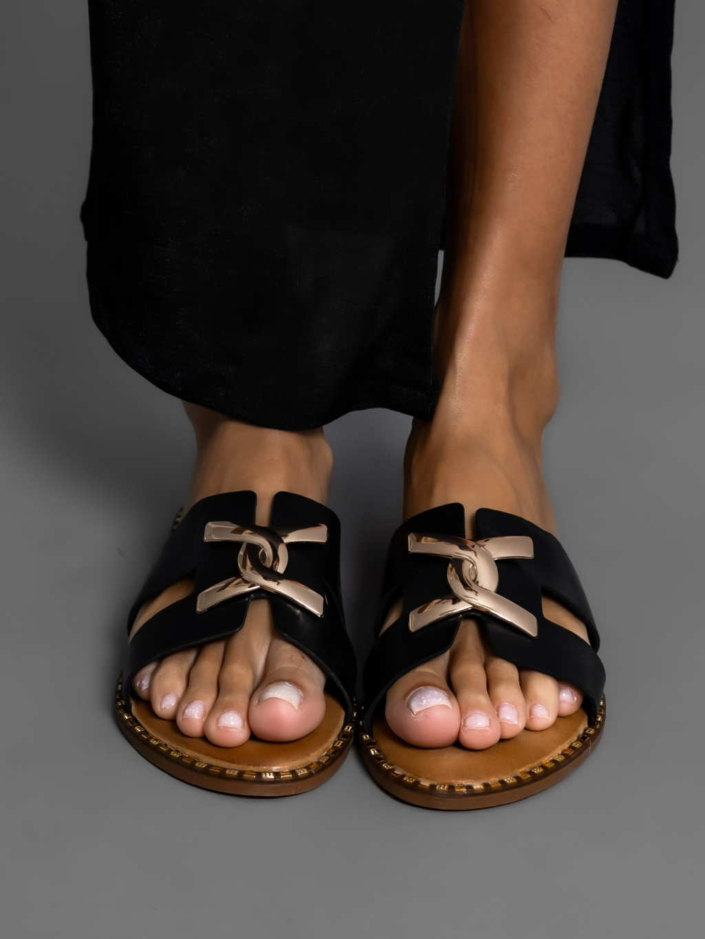 Černé elegantní pantofle CARMIN se zlatou sponou