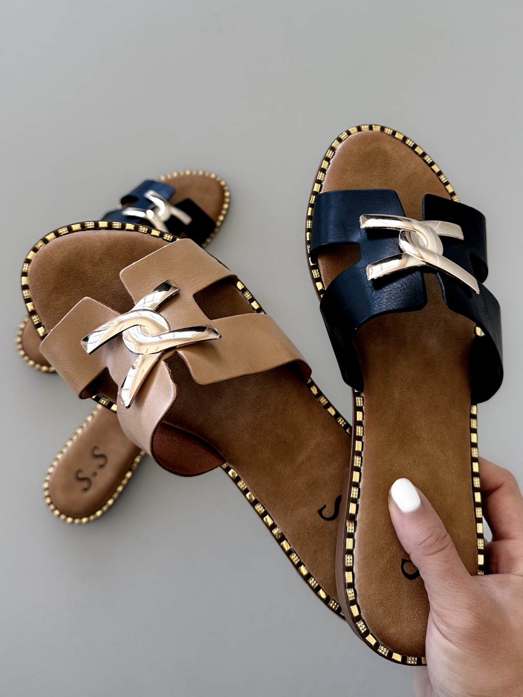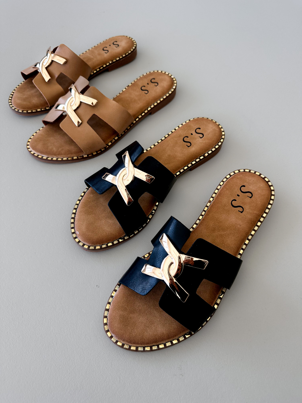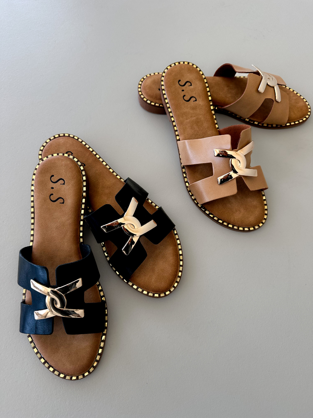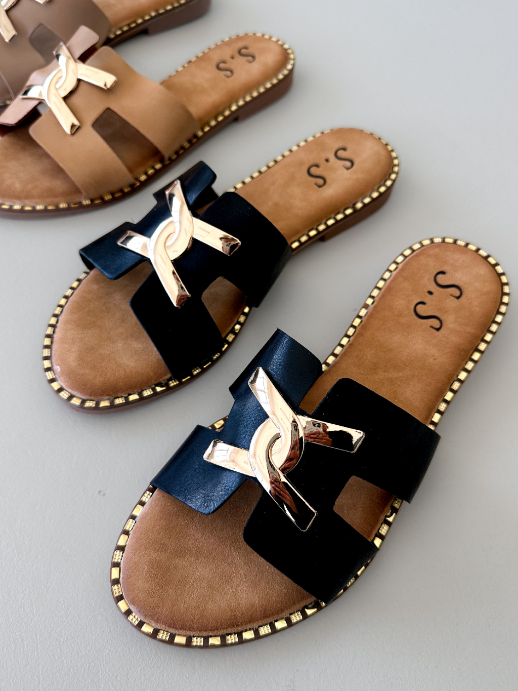 Černé elegantní pantofle CARMIN se zlatou sponou