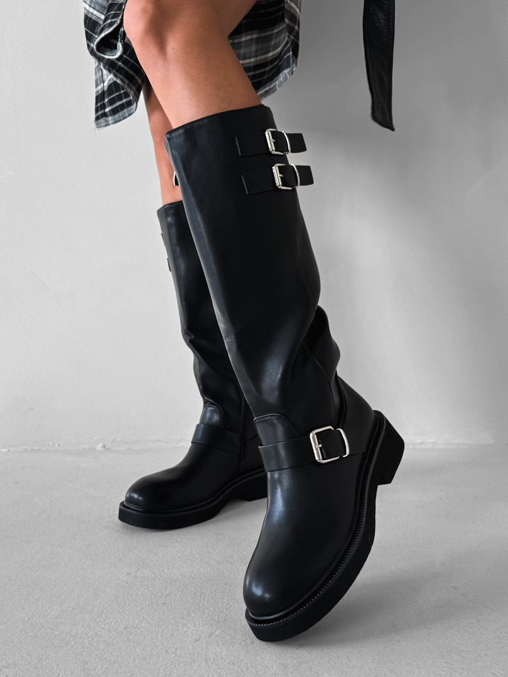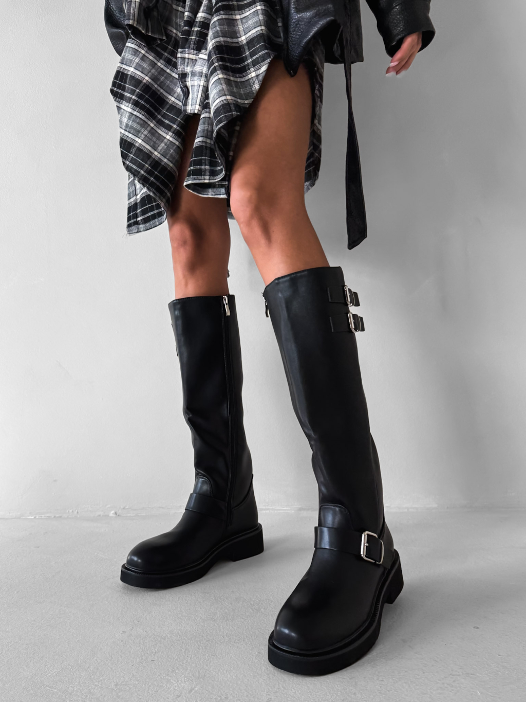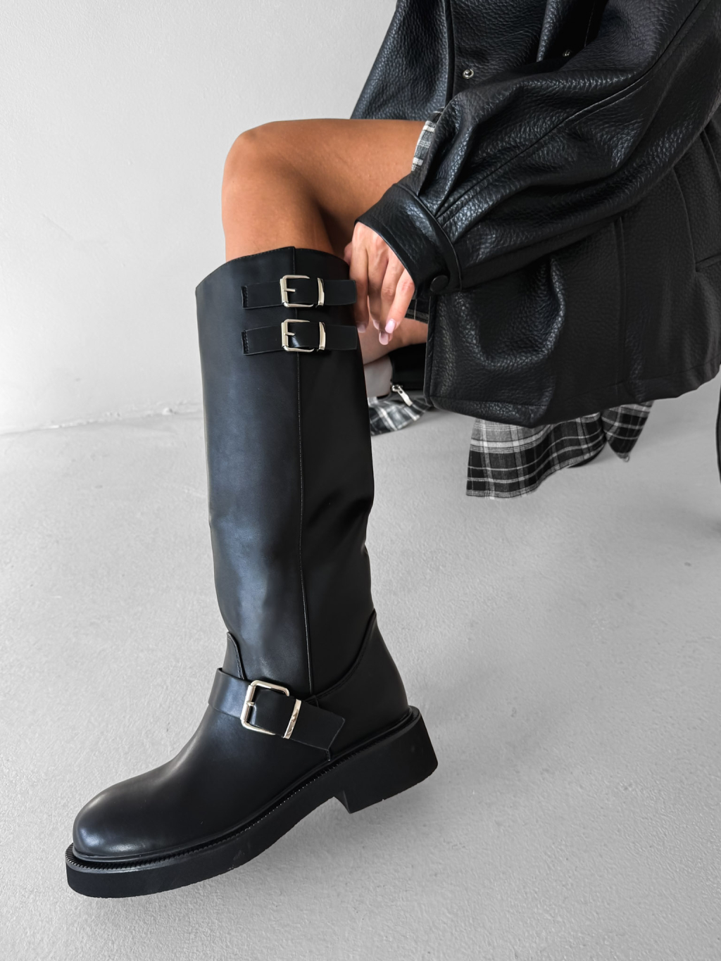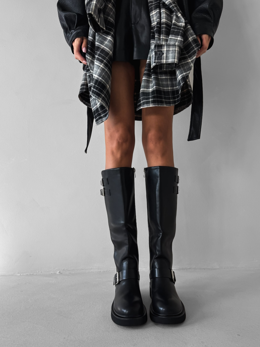 Černé koženkové kozačky MYRANY