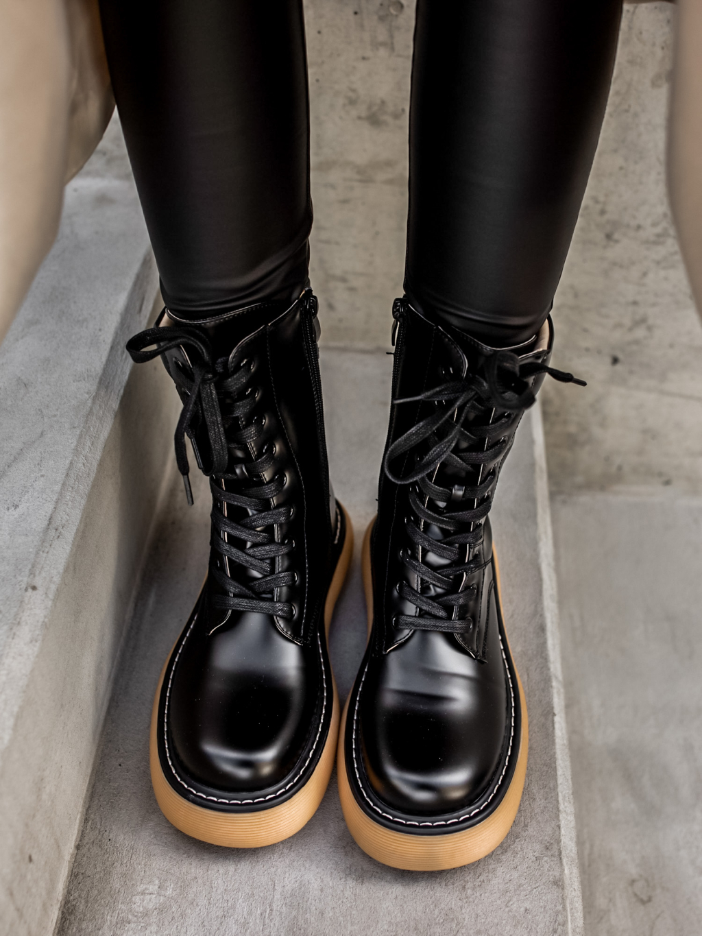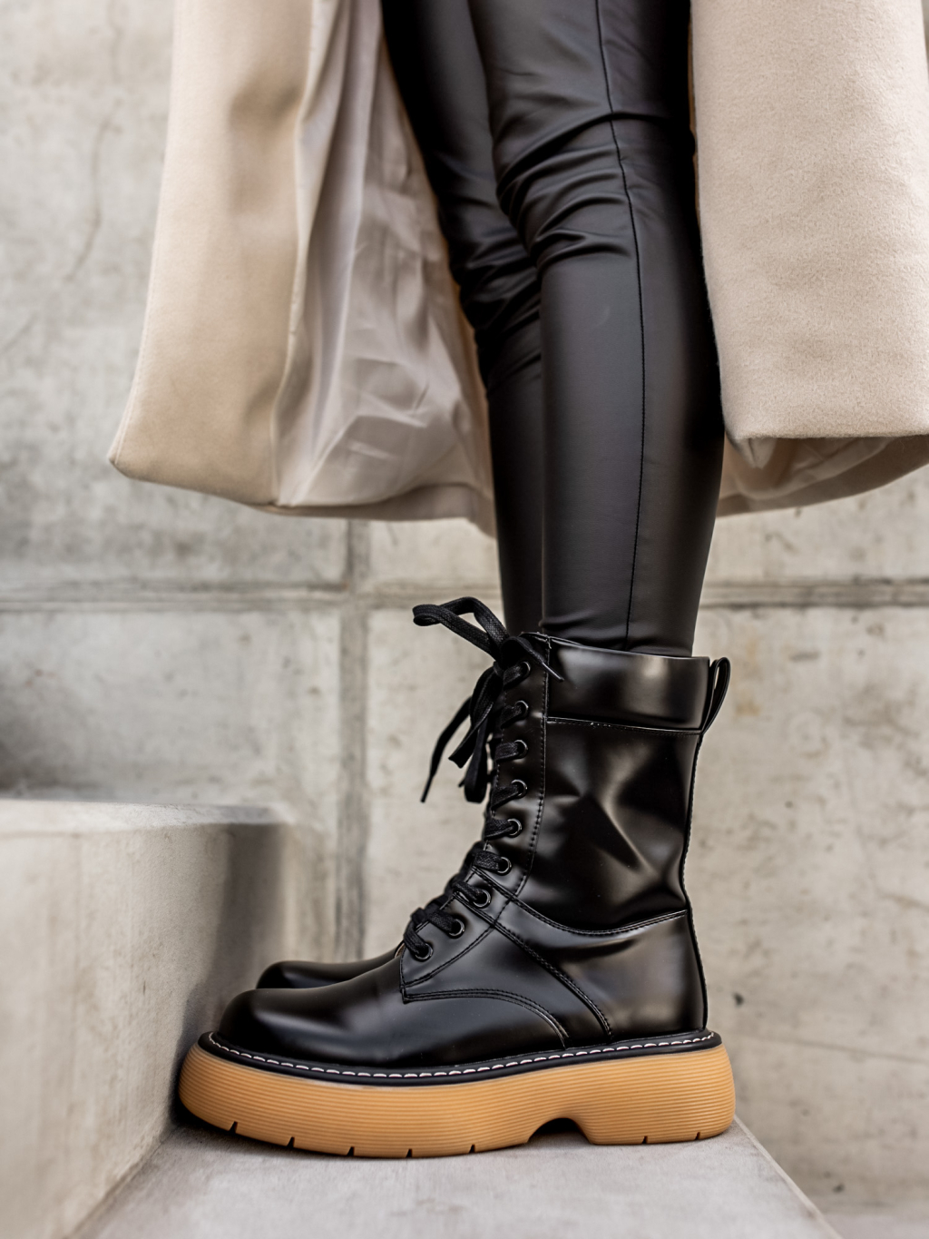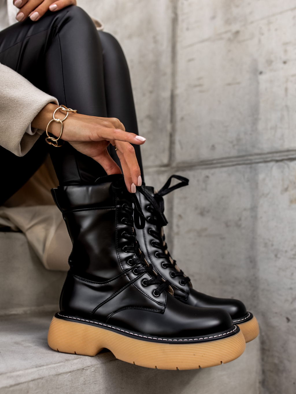Černé šněrovací kratší kozačky POLYE