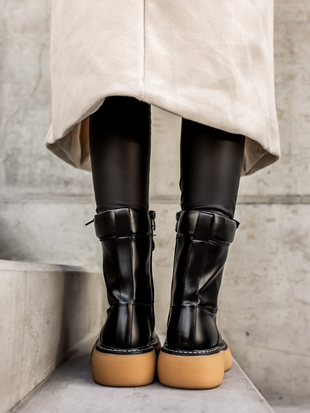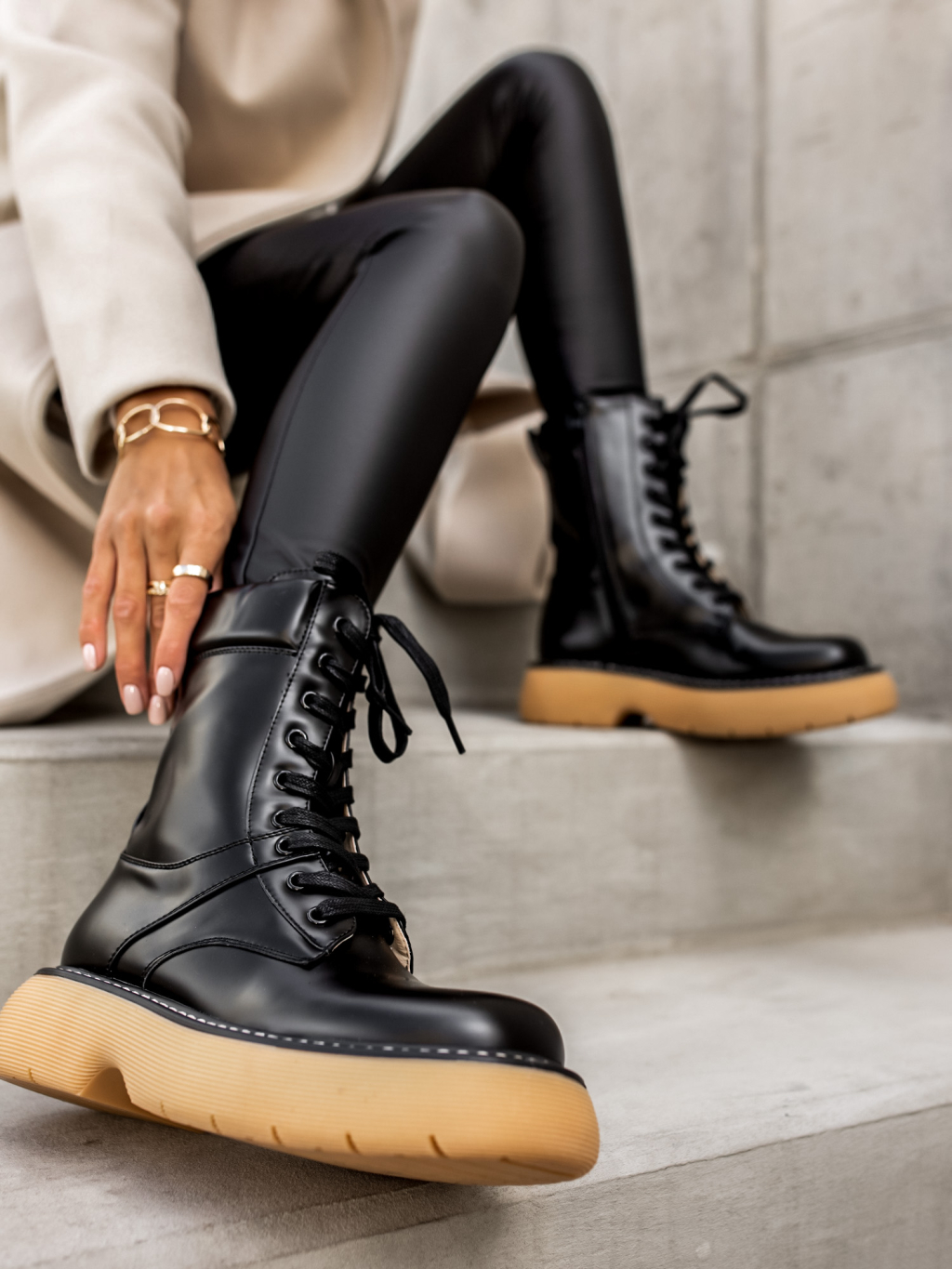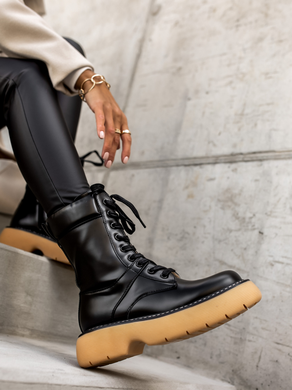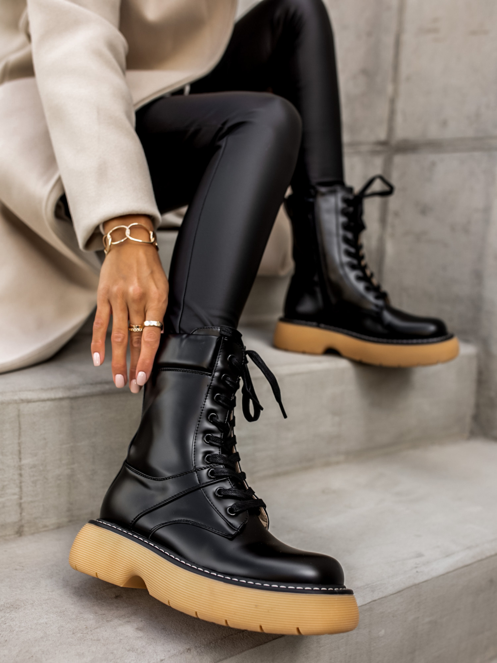 Černé šněrovací kratší kozačky POLYE