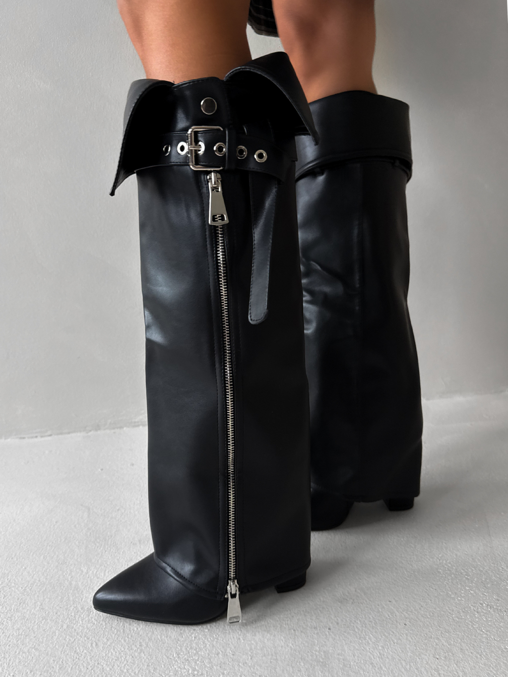 Černé vysoké koženkové kozačky VIDIA se zipem