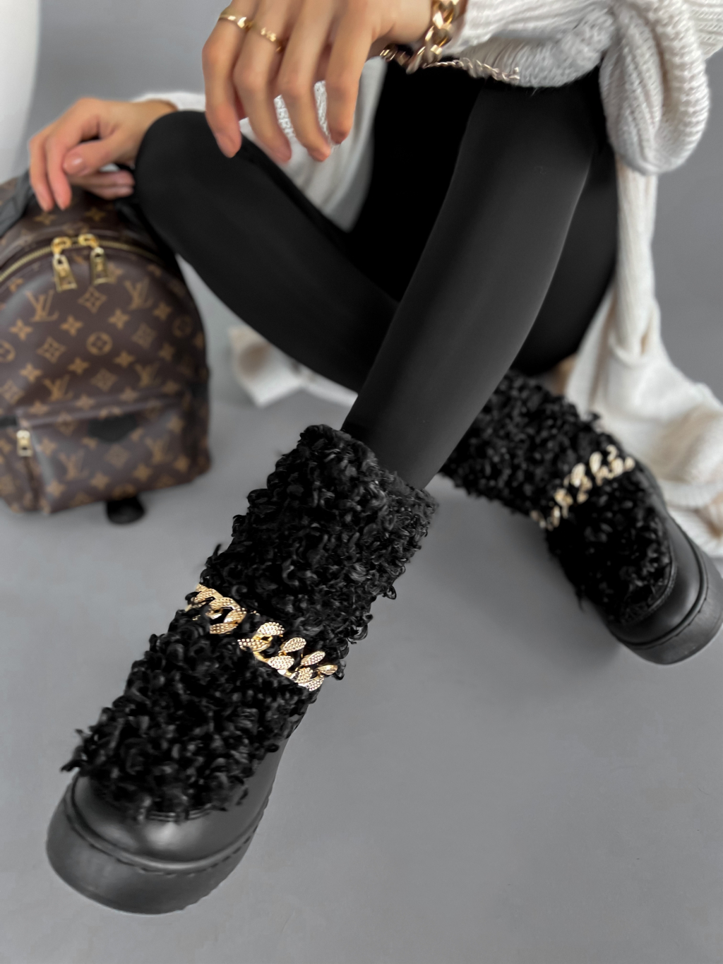 Černé zimní kotníkové boty TWYLA s kožíškem