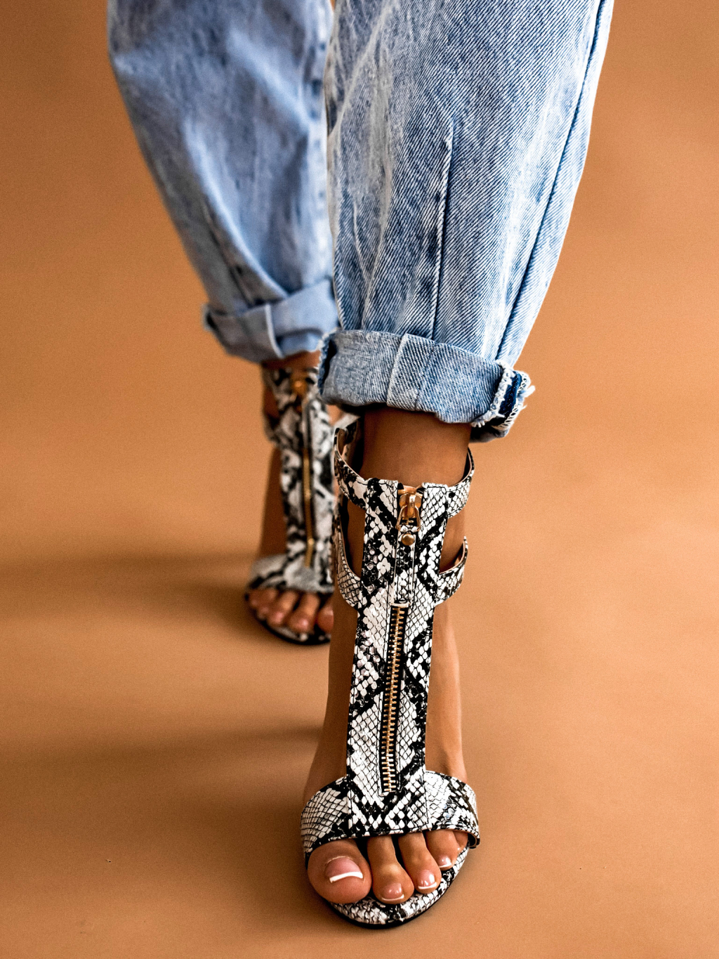 Černobílé boty na podpatku AXEL s imitací hadí kůže